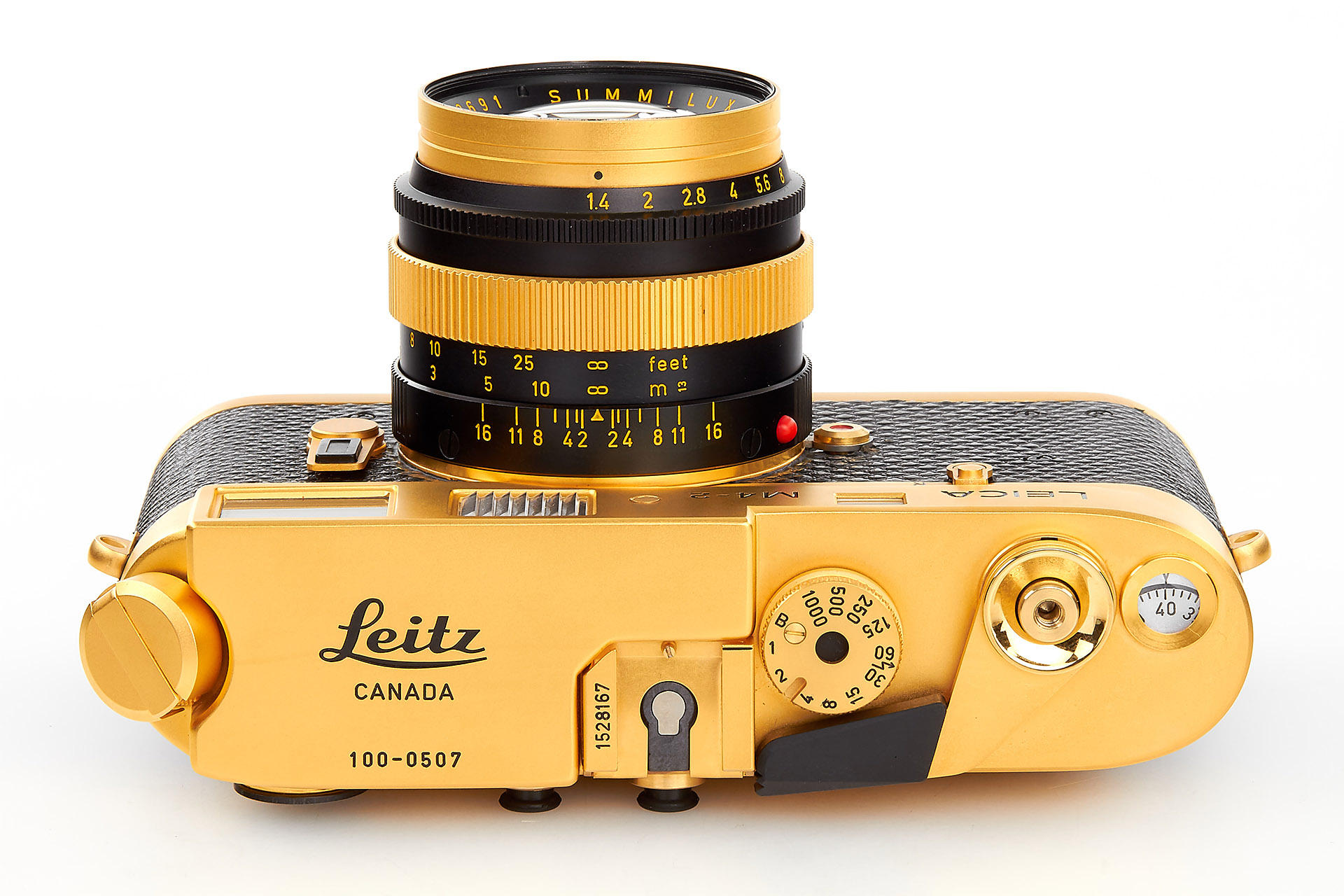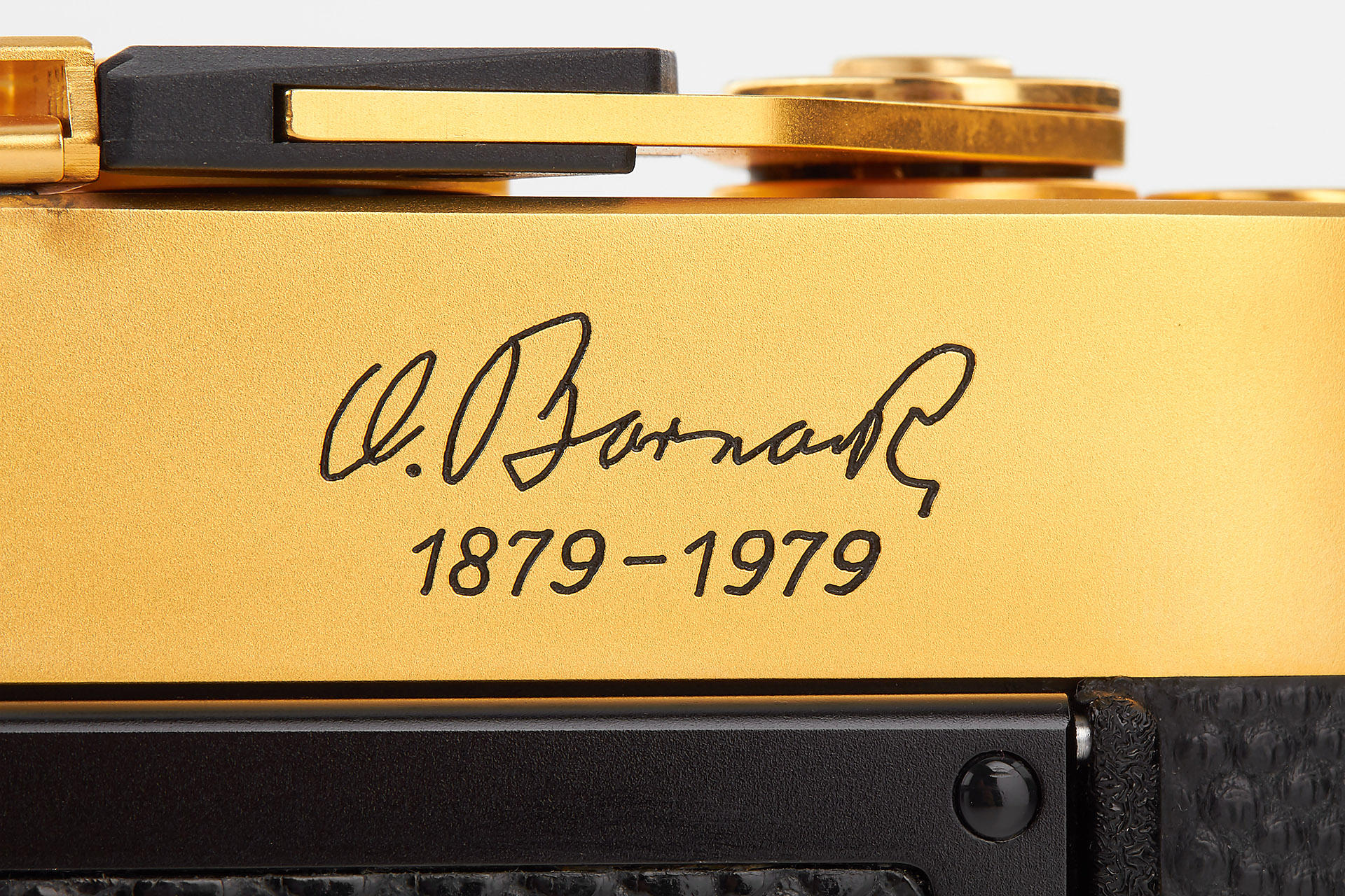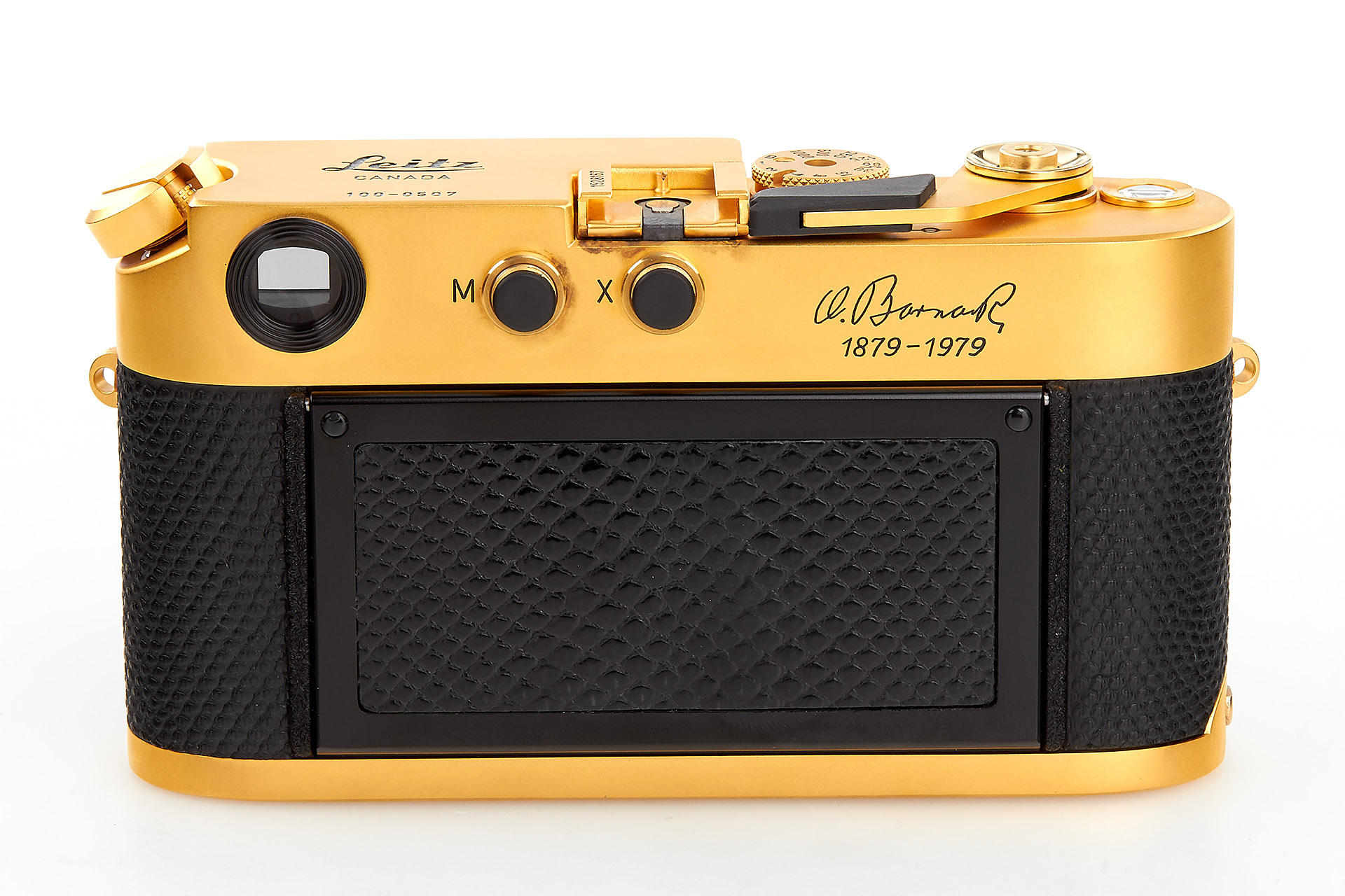 limited gold plated edition for the 100th anniversary of the birthday of Oscar Barnack, special edition number 100-0507, in near mint condition and perfect working order, with gold-plated Summilux 1.4/50mm no.2980691 and wooden presentation box