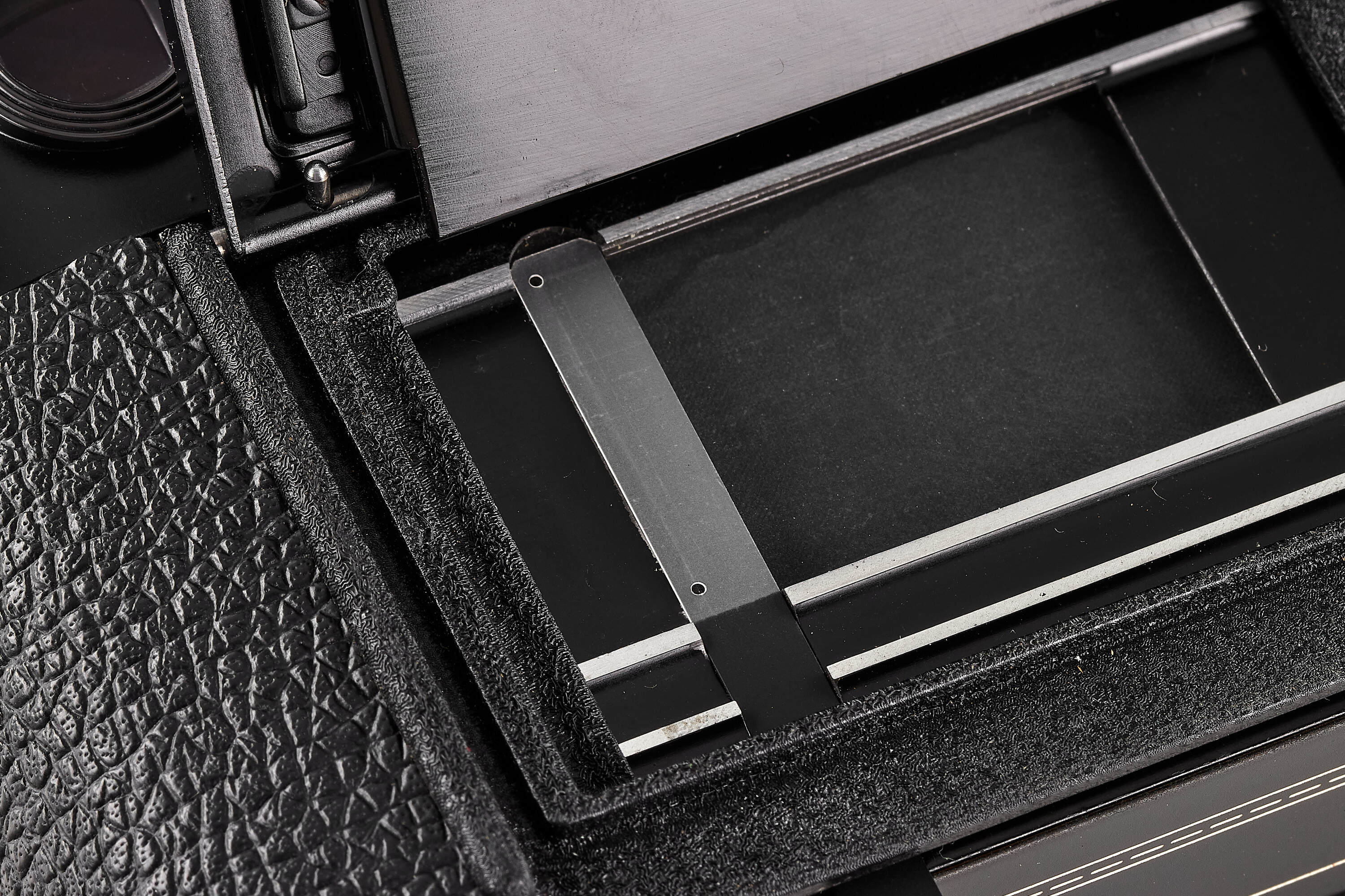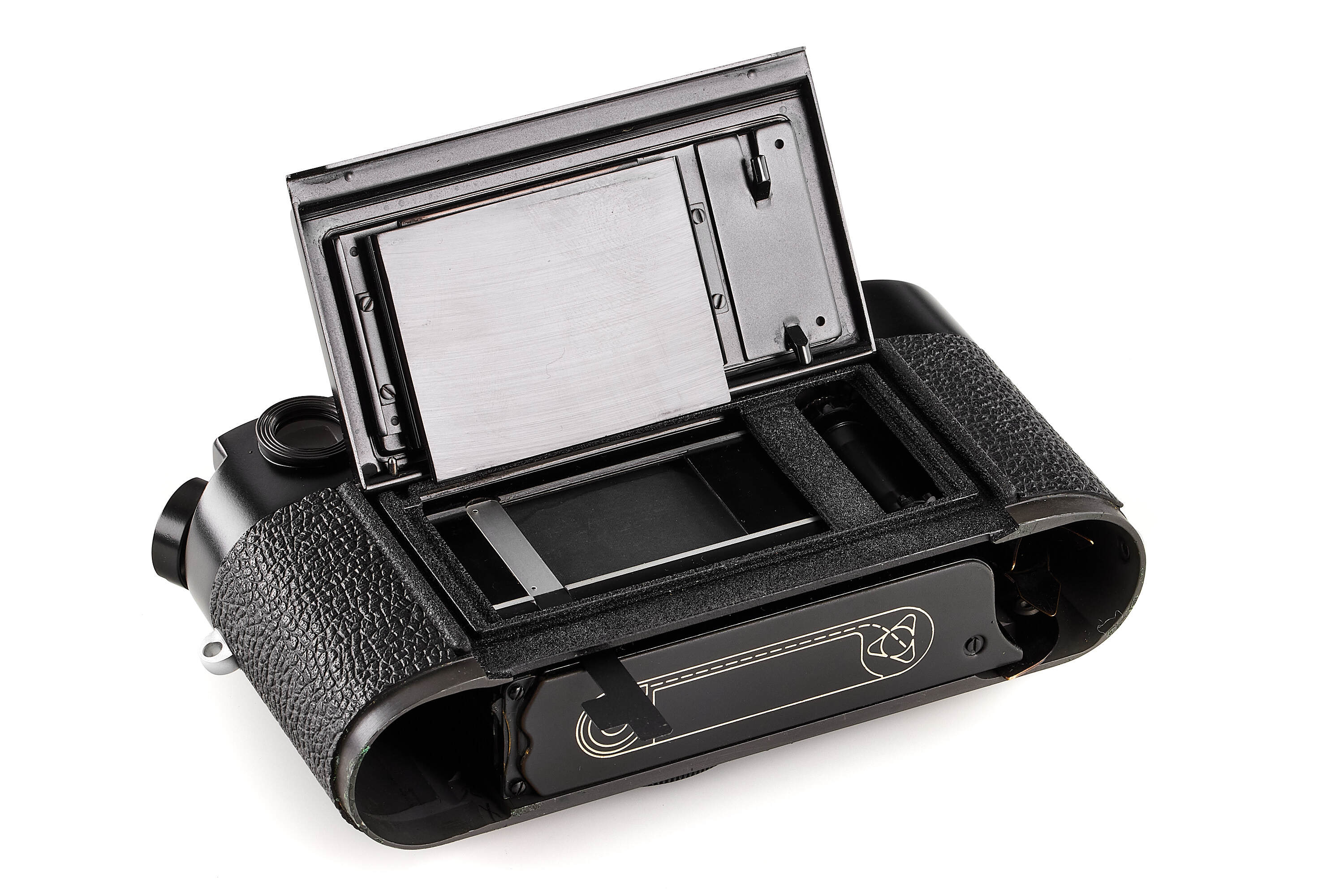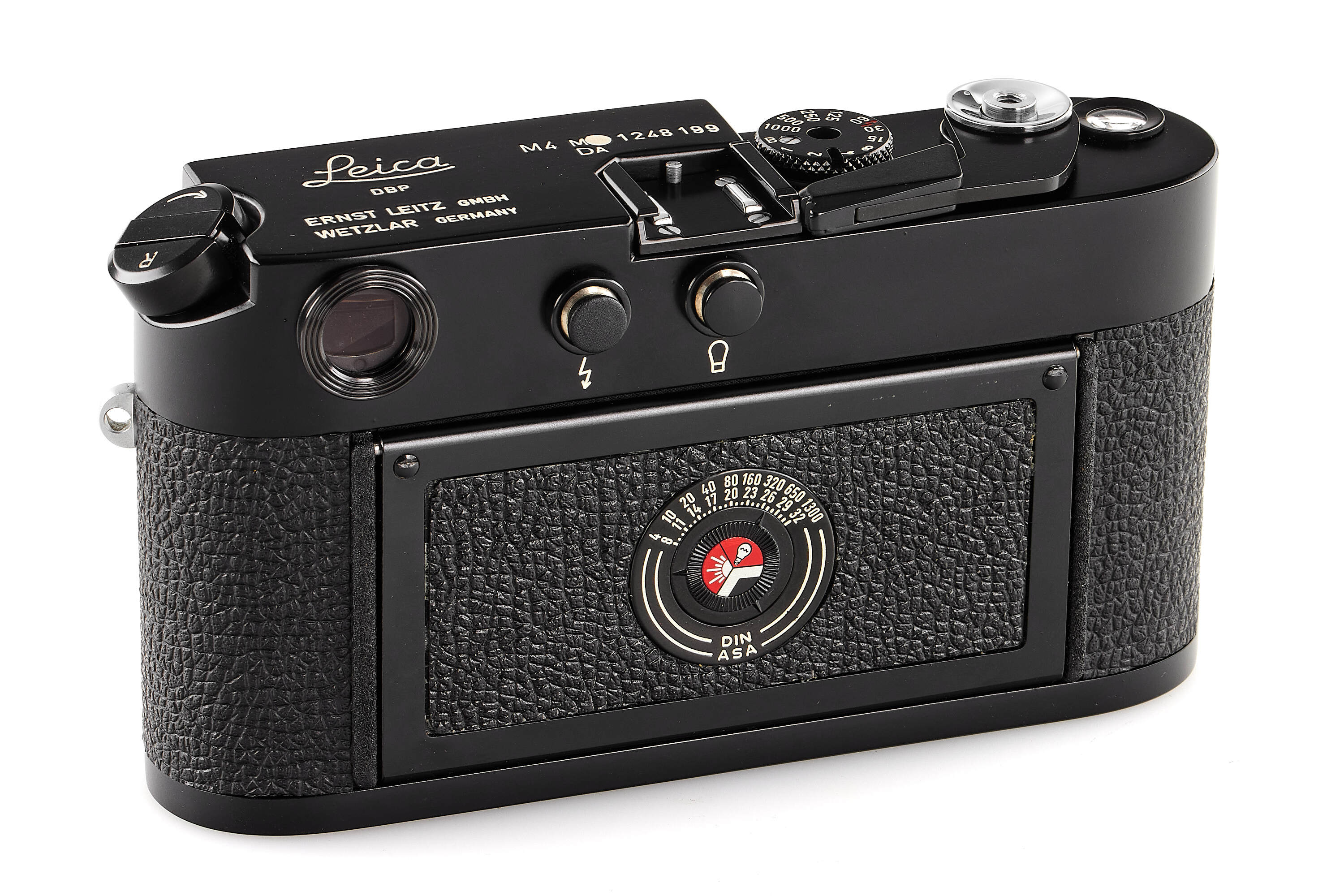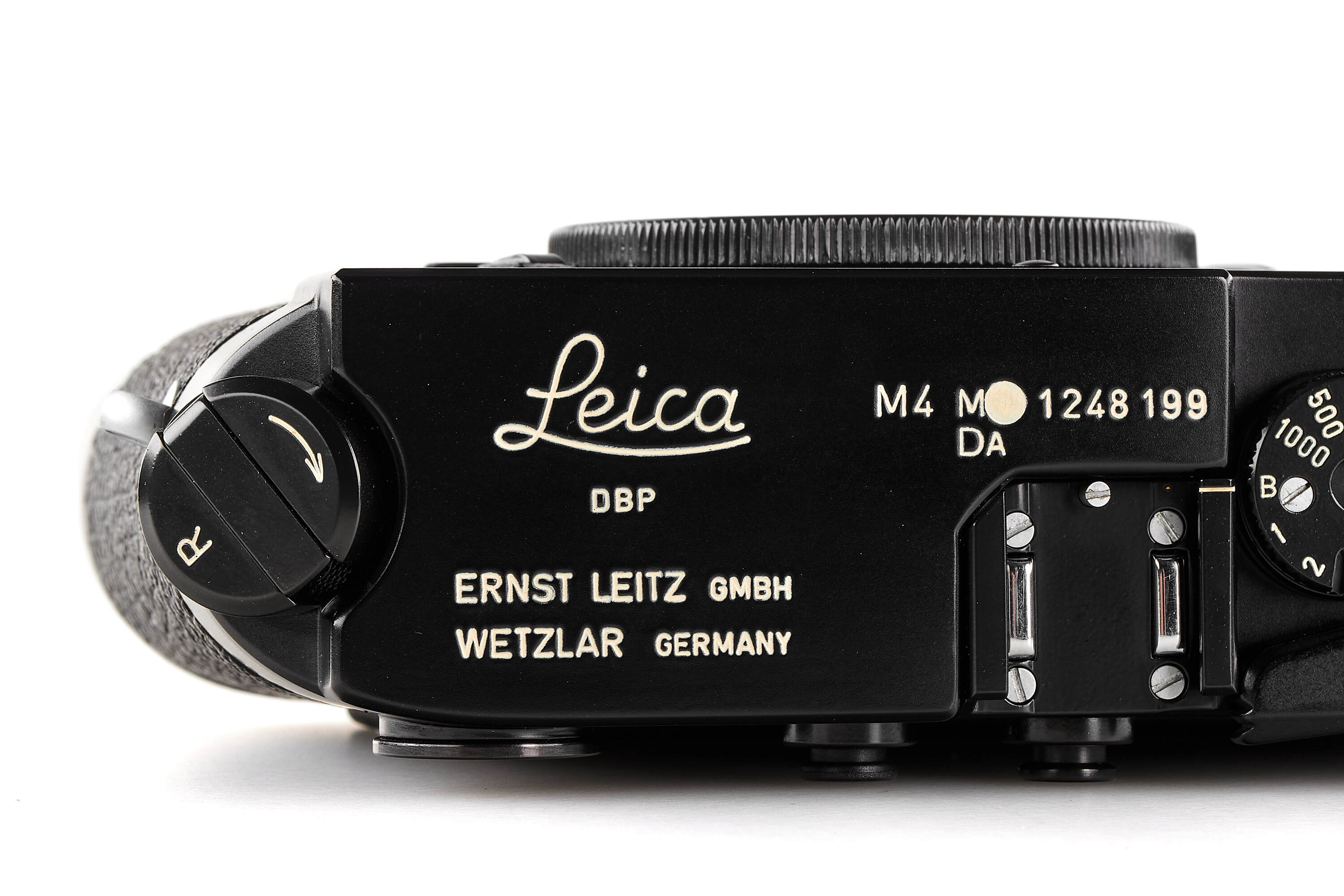 In the early 1970s E. Leitz Inc. New York manufactured a large number of MDa Mot cameras for use on Zeiss fundus cameras, an unexpected outcome of this cooperation was a number of M4-M and M4-MOT cameras being left without parts necessary for motor use. These Leicas were fitted with a grooved body casting for marker strips and sold as special black M4s. The offered example of this very rare camera is in beautiful, mint condition and good working order, together with an extra matching standard bottom plate, some marker strips and a body cap, a similar camera no.1248177 can be seen in James L. Lager An Illustrated History vol. 1 - Cameras, on page 235.