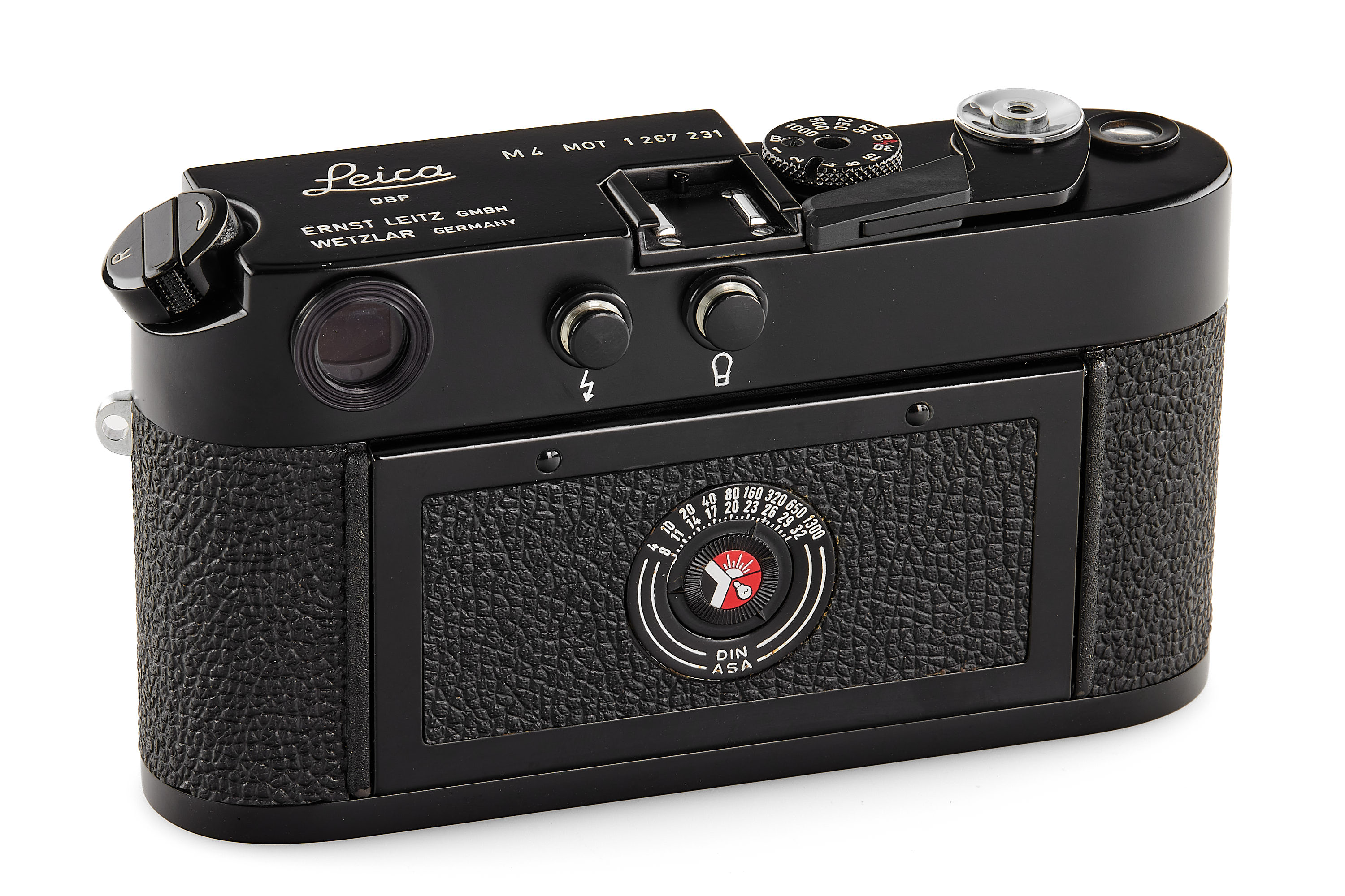 A rare Leica M4 MOT in black paint finish, in beautiful, mint condition and working order, from a batch issued in 1970 (nos.1206737-1206891), with body cap, a similar camera with the serial number no.1267219 is shown in James L. Lager 'An Illustrated History' vol.1 Cameras, on p. 234.