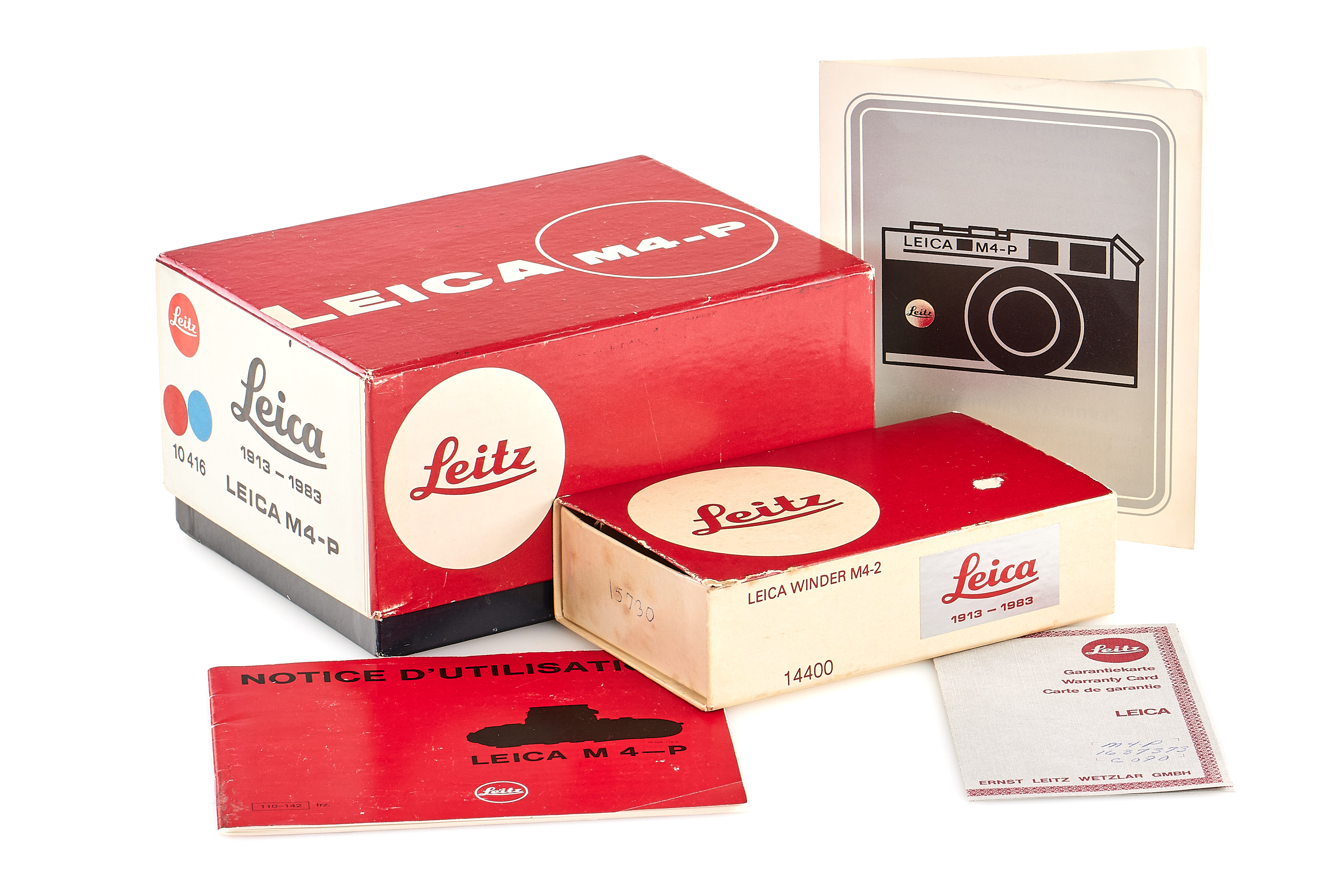 Beautiful special edition Leica M4-P issued to commemorate 70 years of the Leica camera, body number 1637373, in mint condition and working order (minor scratch on the top plate), with body cap, authenticity certificate, warranty card, French instructions and maker's box with matching serial number, with Winder M4-2 'Leica 1913-1983' edition no.15478 (maker's box).