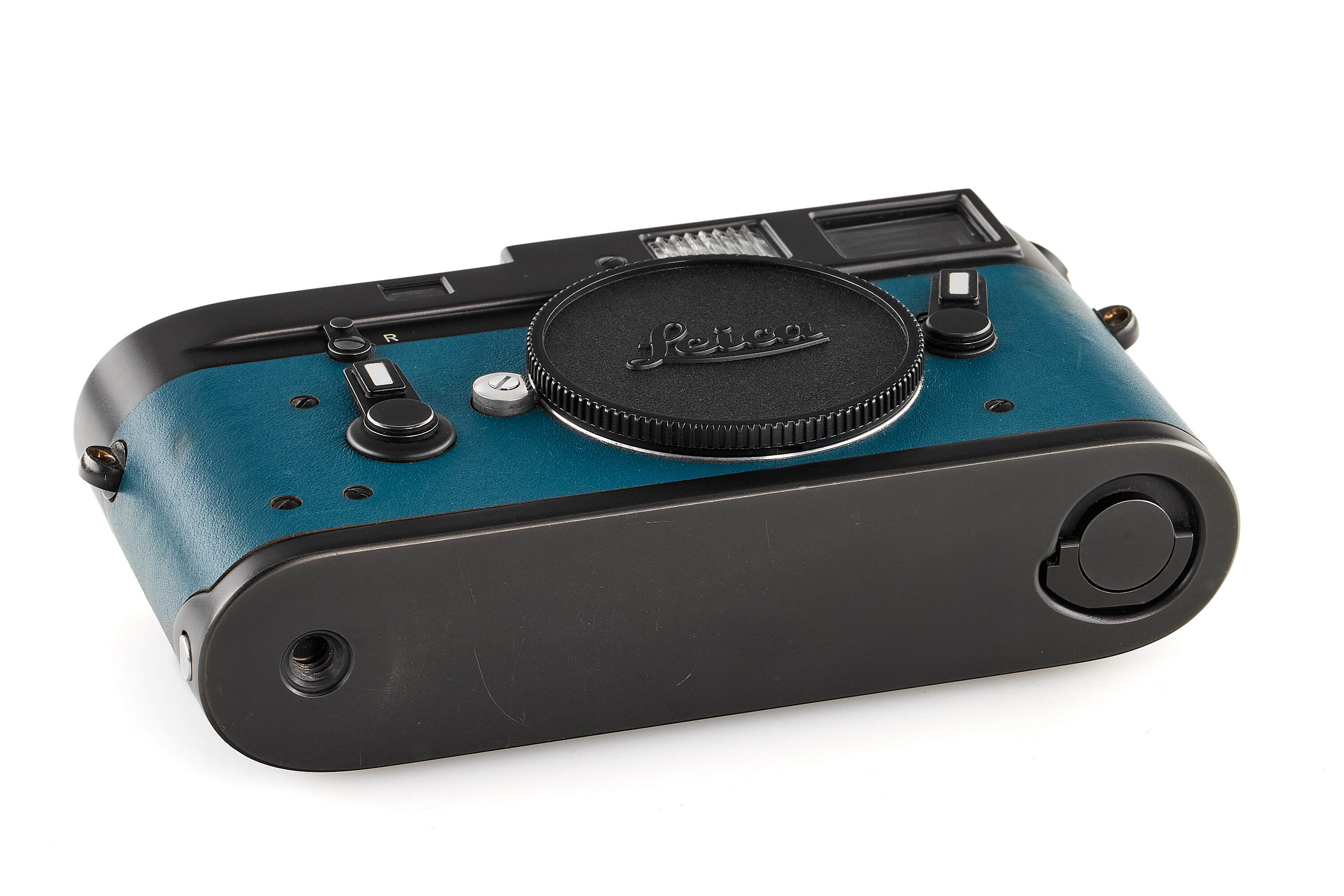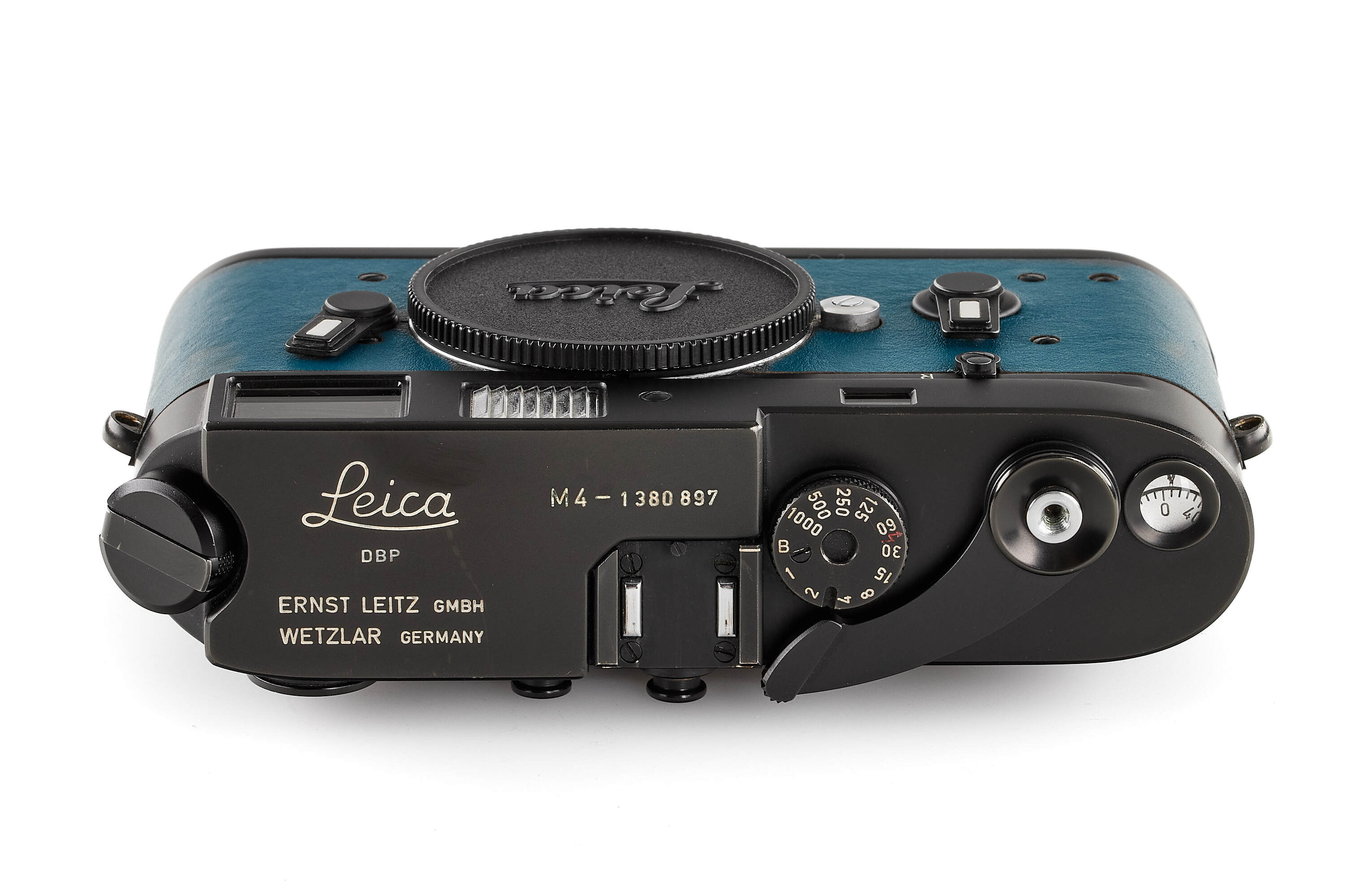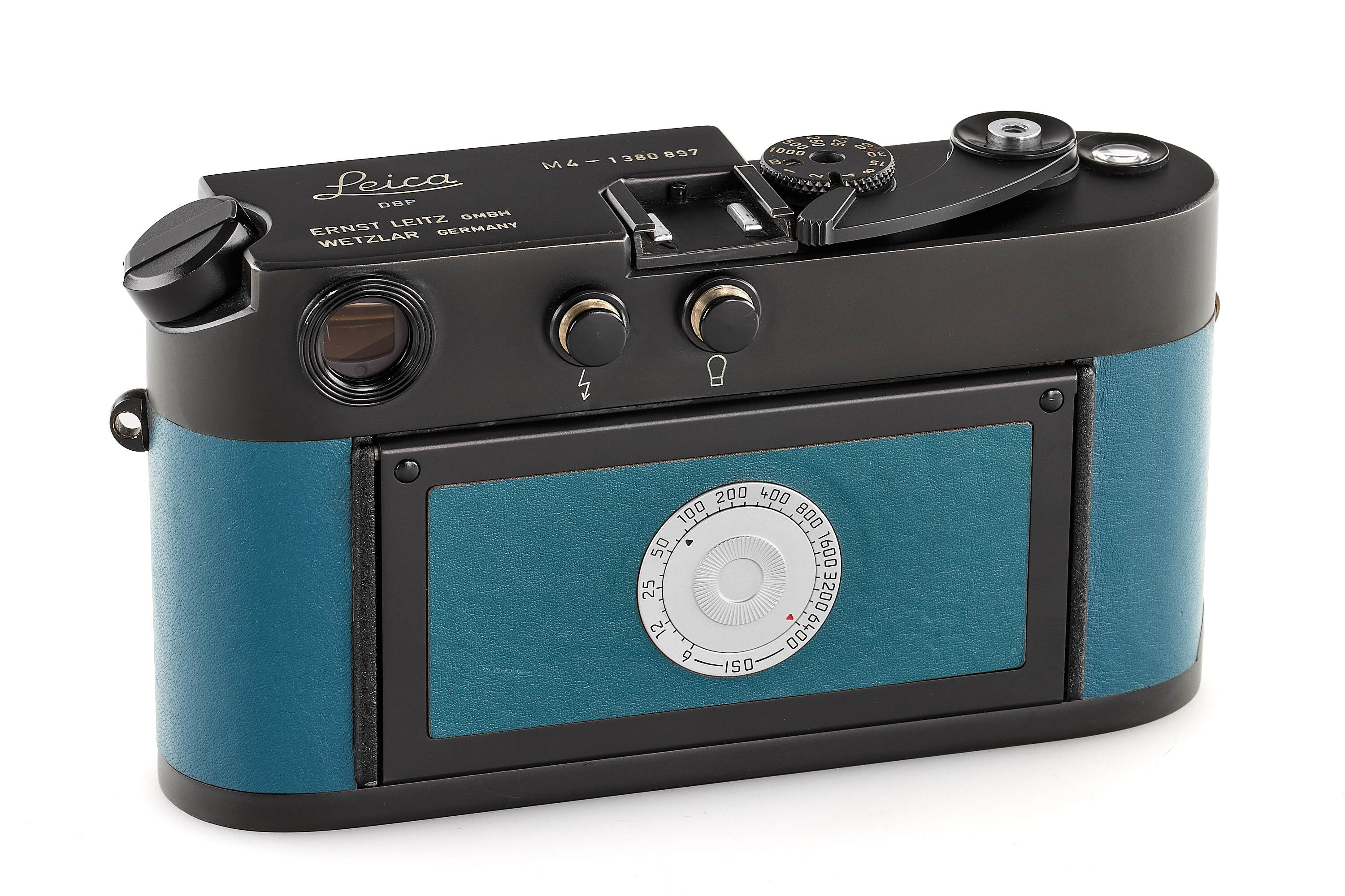 Interesting late M4 from the last 2 batches of production, modern petrol blue "octane" leather made after customer order, note the modern film speed index, in almost mint condition, with body cap.
