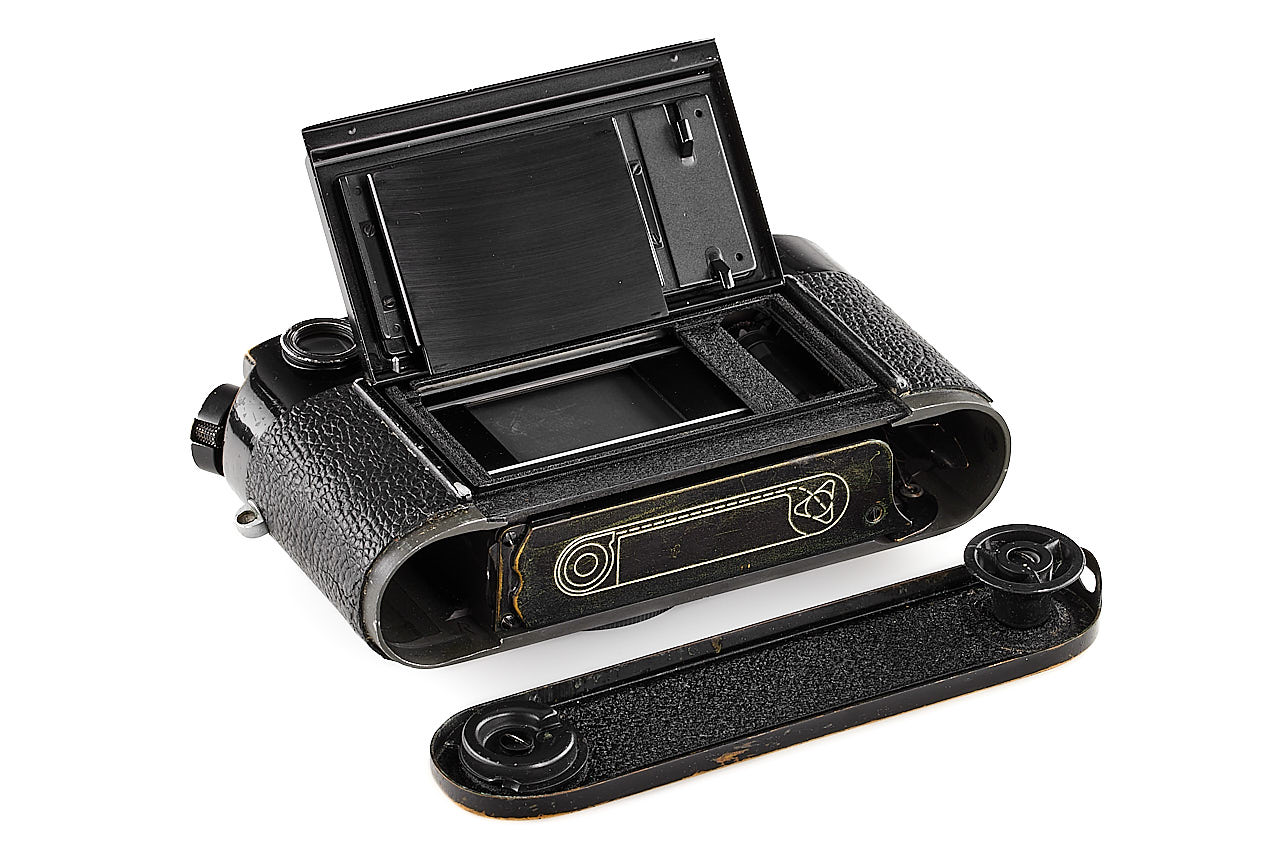 Original black painted M4, in good condition with a very attractive patina, visible repair in the vulcanite, in good working order, with matching body cap and maker's box (without serial number).