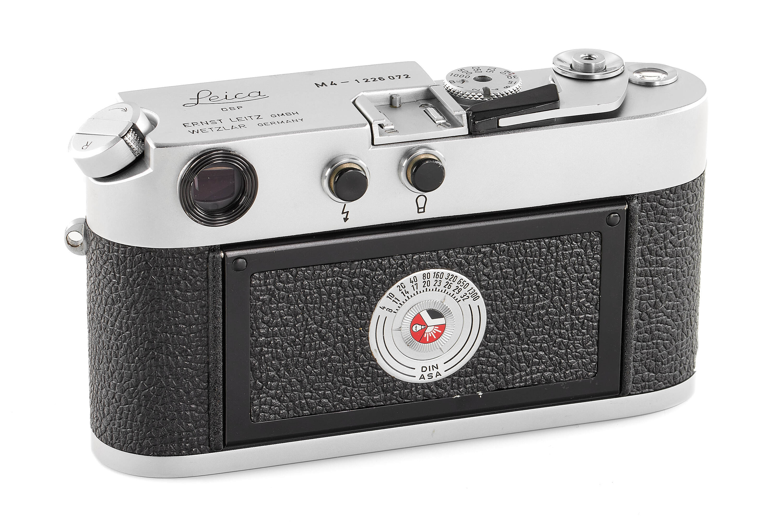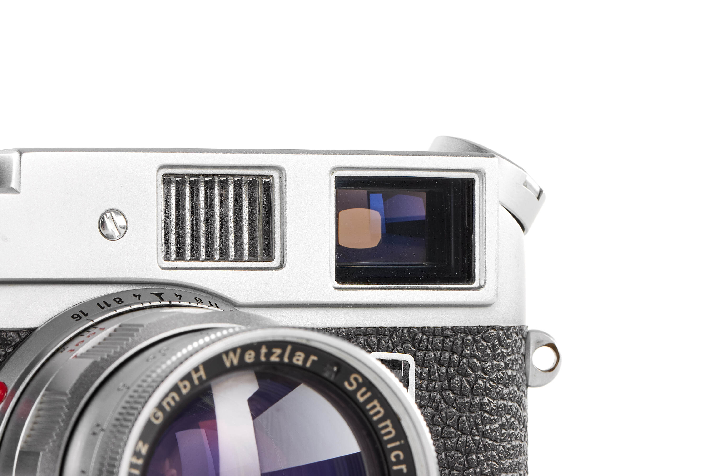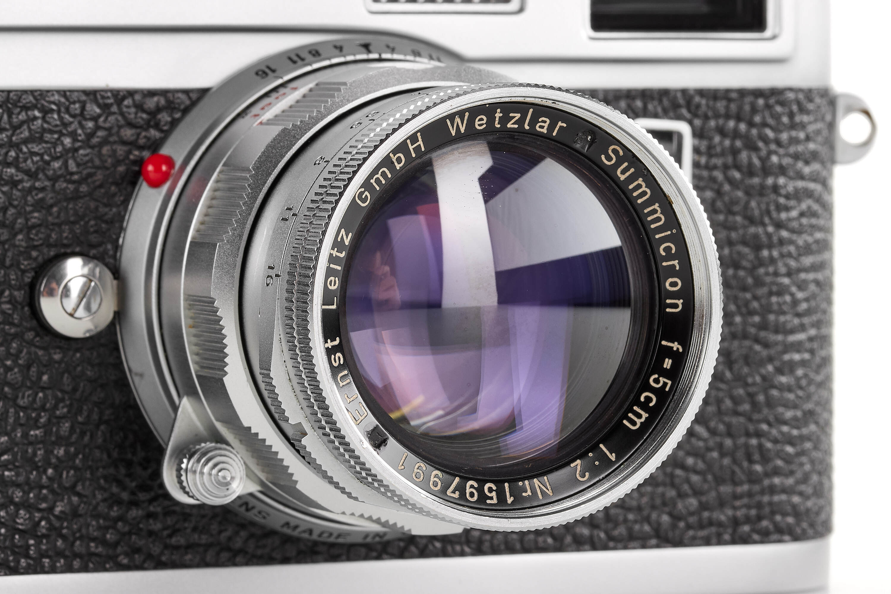 A classic, chrome Leica M4 in beautiful condition and working order, with rigid Summicron 2/5cm no.1597991, good optics.