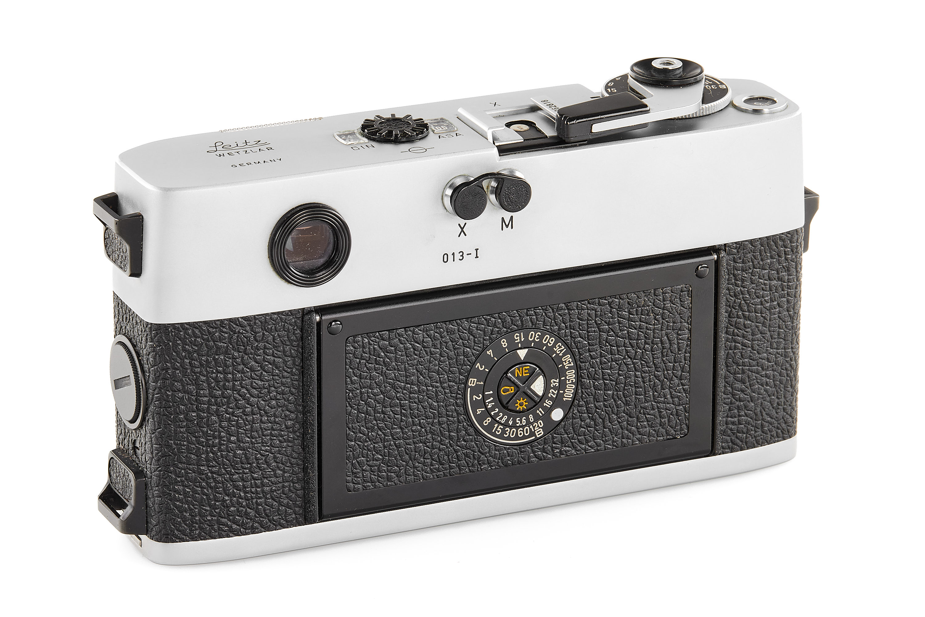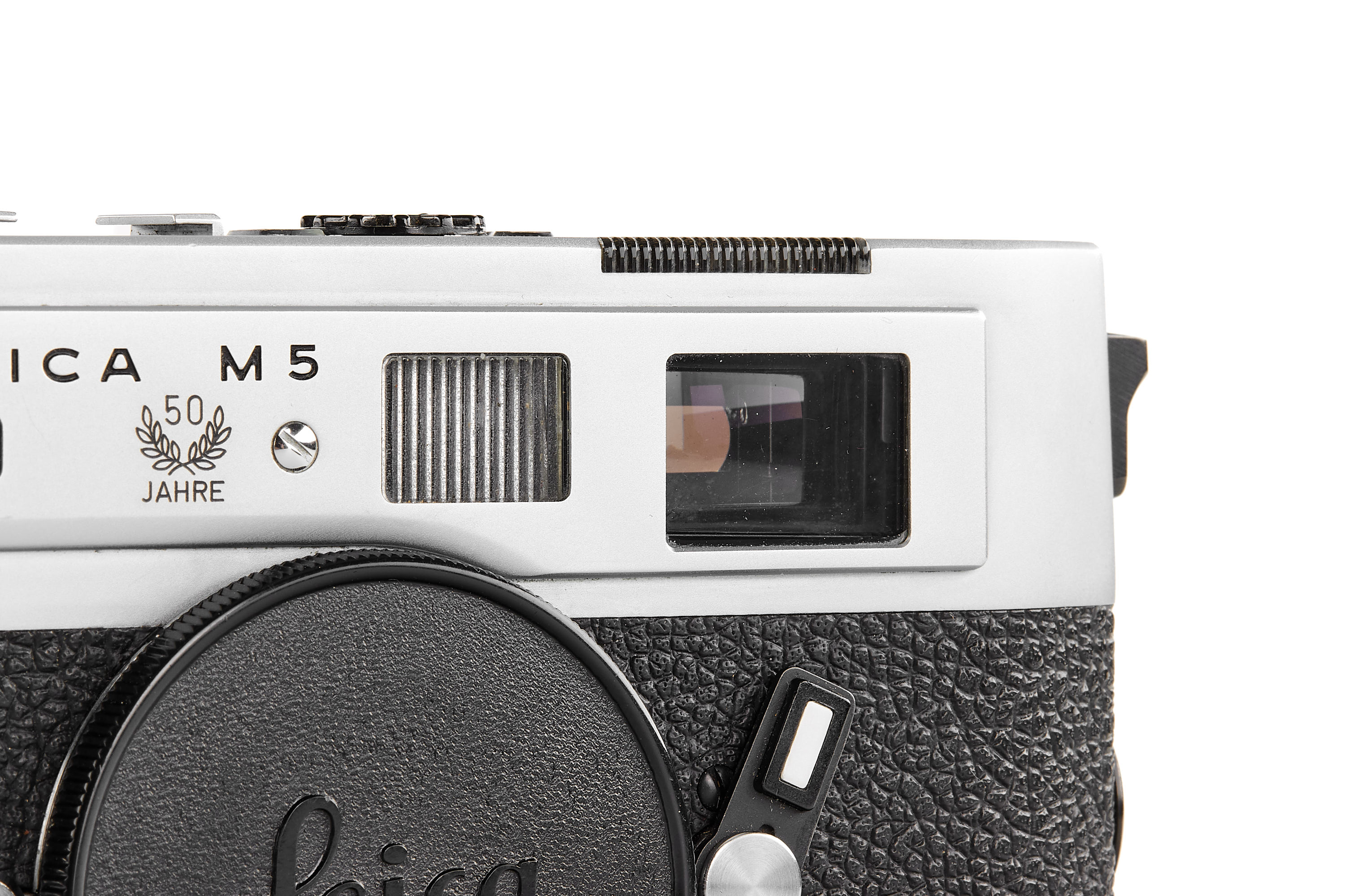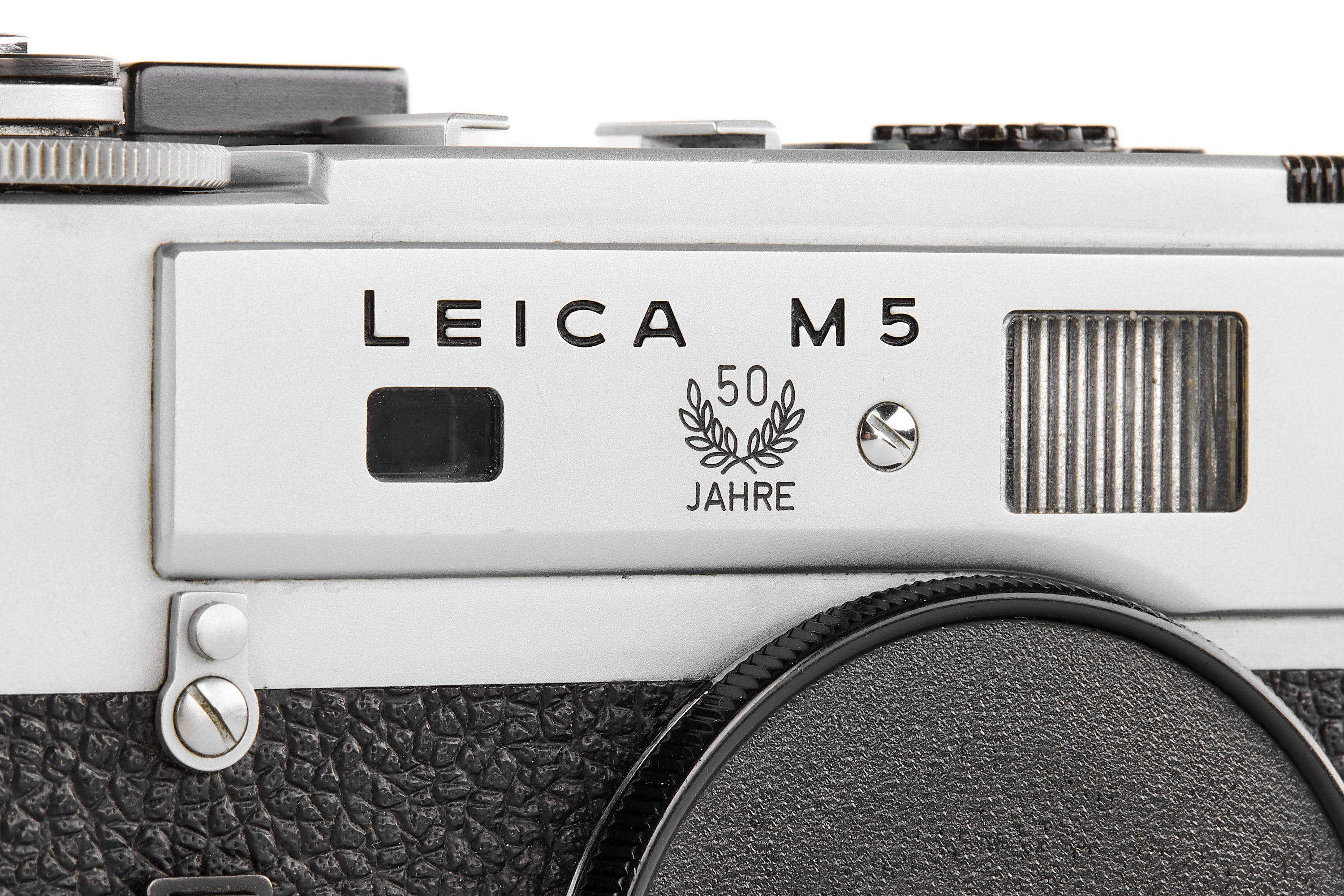 Unusual chrome version of the rare special edition celebrating the 50th Anniversary of the first production Leica, only 1750 units produced, with special number '013-I' and '50 Jahre' engravings, serial number no.1362818, 3 strap lugs, in near-mint condition and working order, with body cap and maker's box (with another serial number).