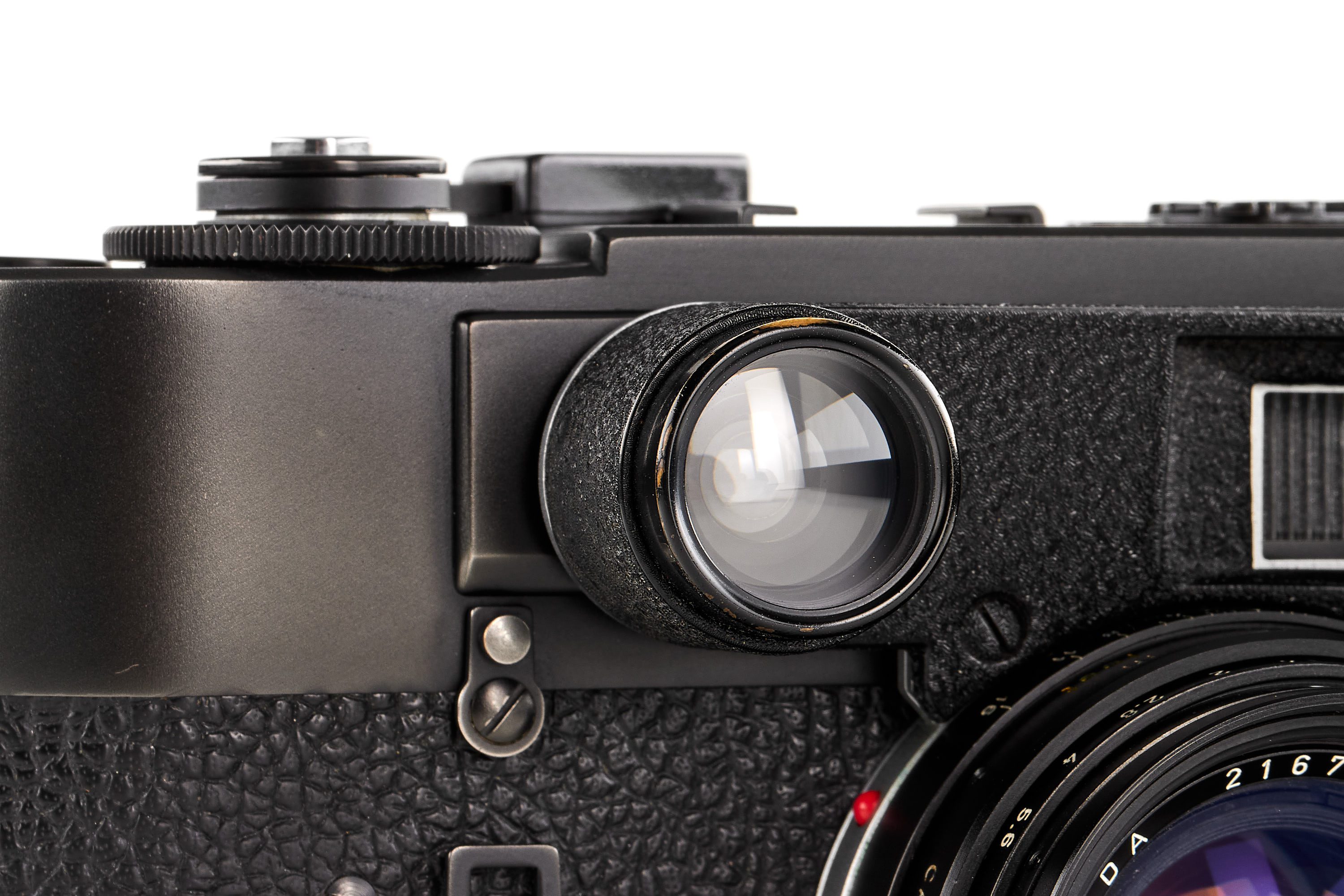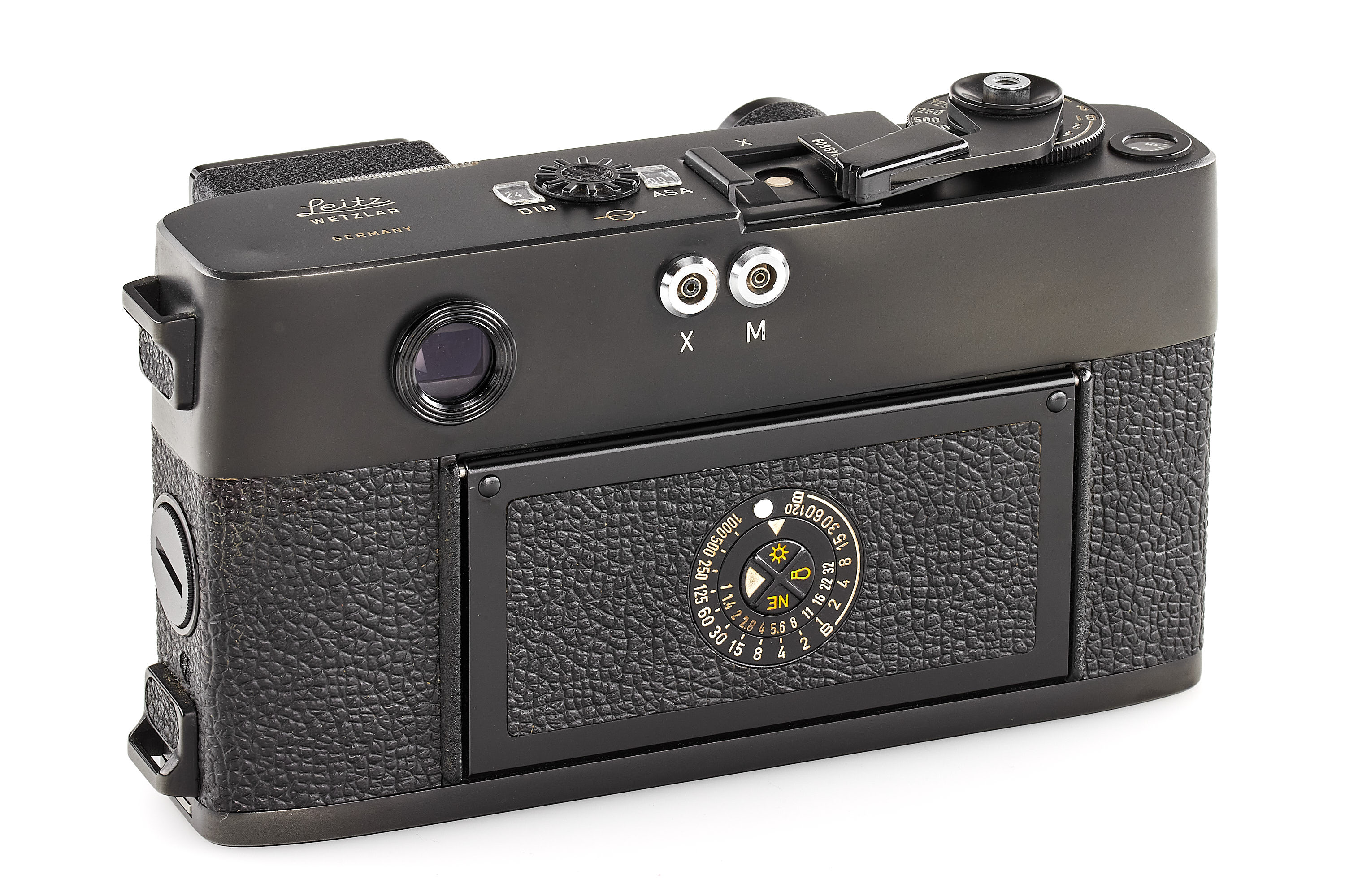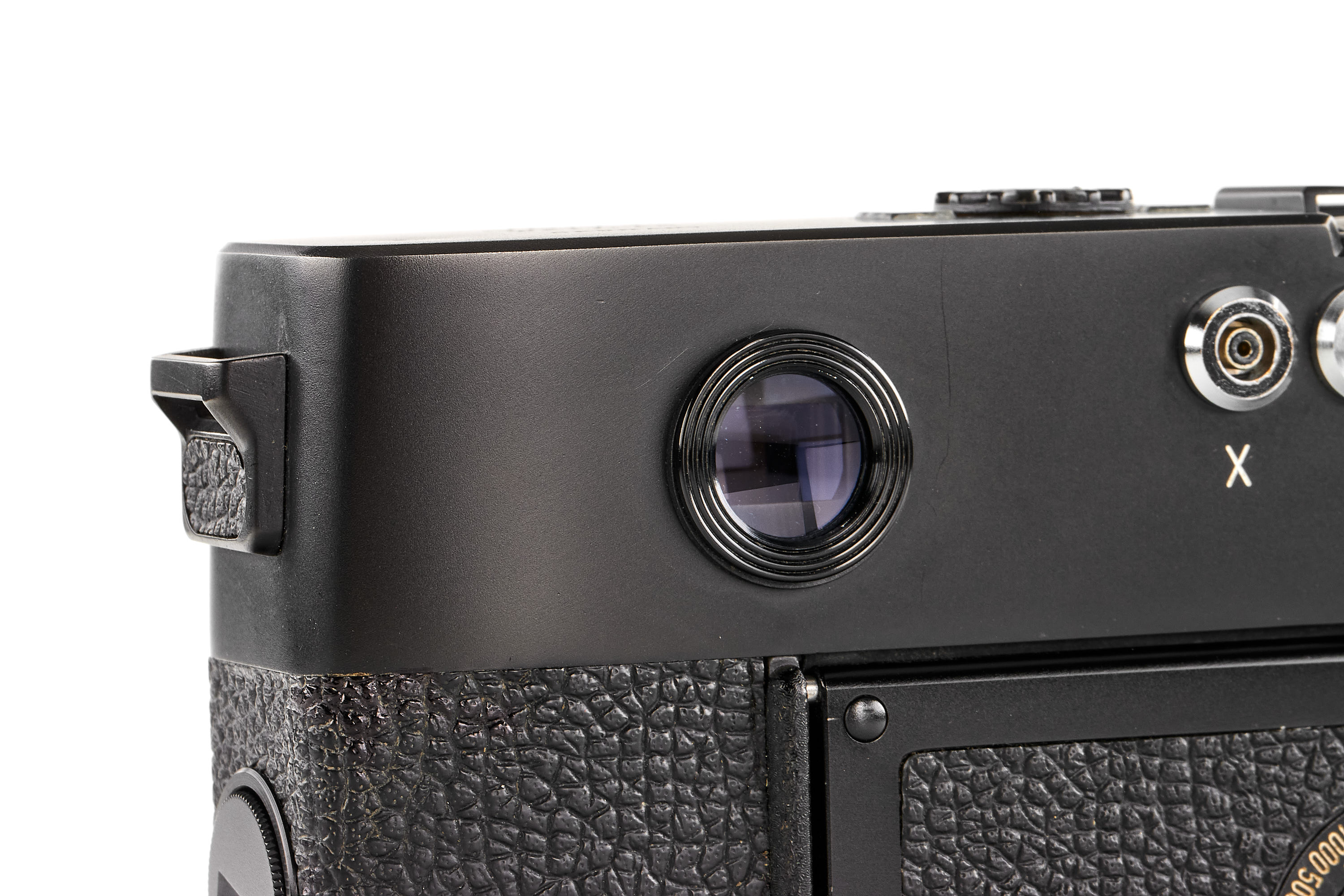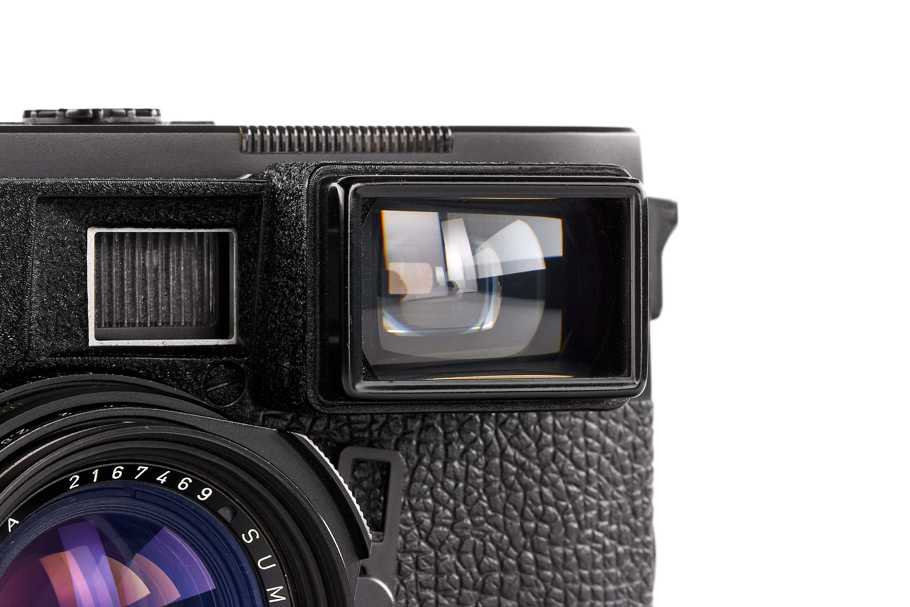 Nice Leica M5 black, 2-lug version in very good condition and working order, interesting combination with rare Summilux 1.4/35mm 11872 with black painted goggles and infinity lock, only showing a light dent on the front (not affecting the operation), clean and clear optics, with leather pouch and strap.