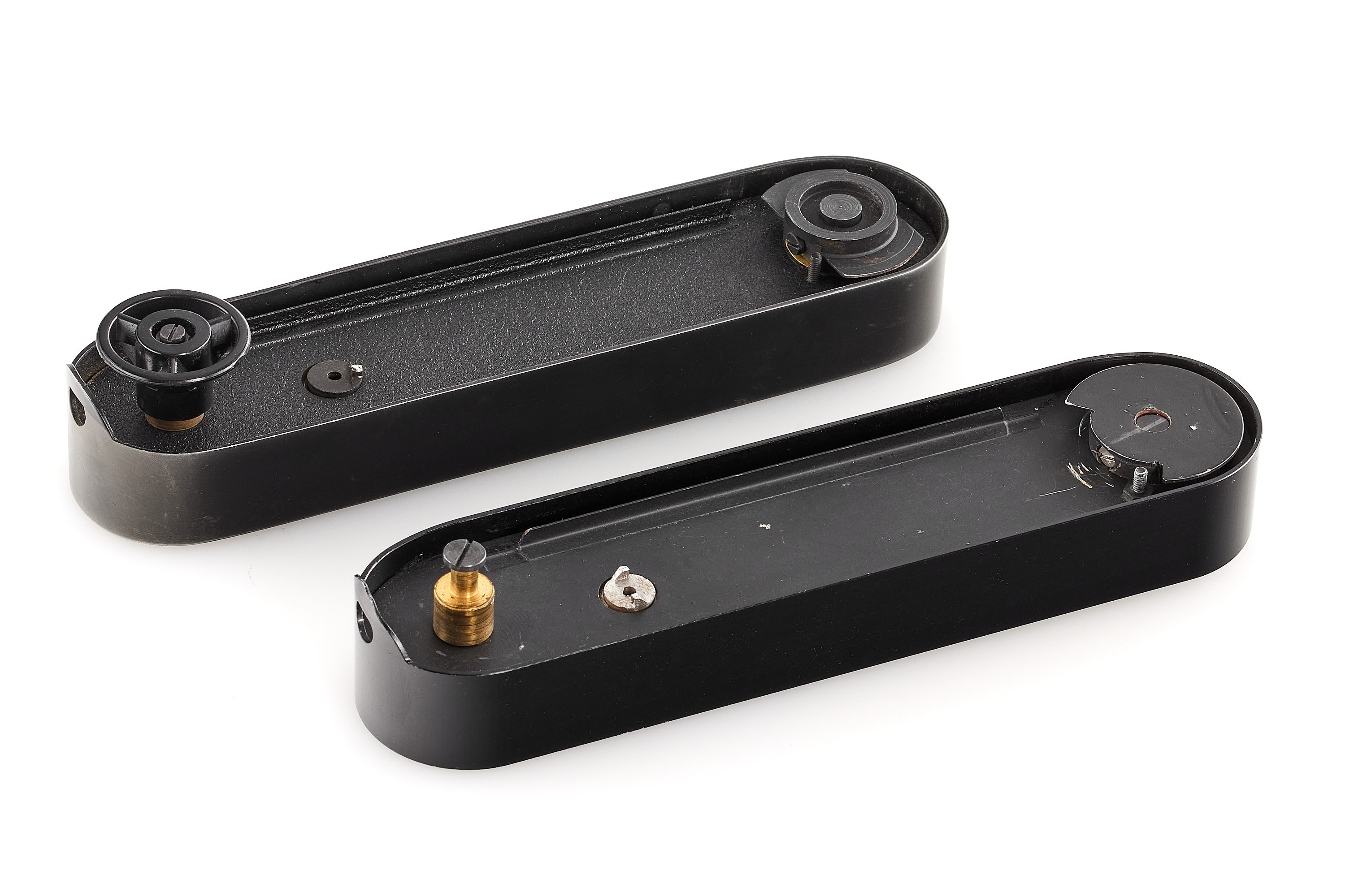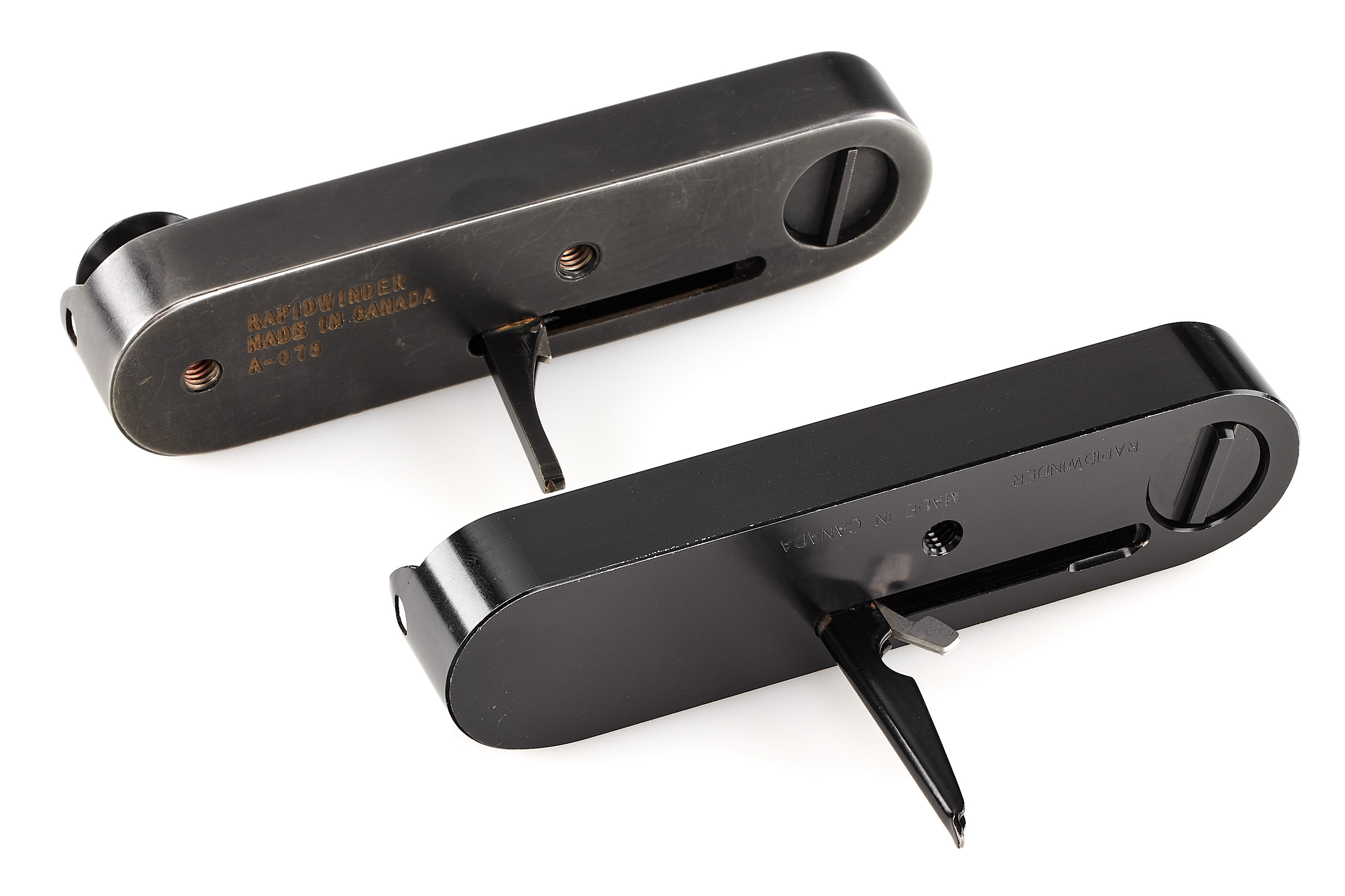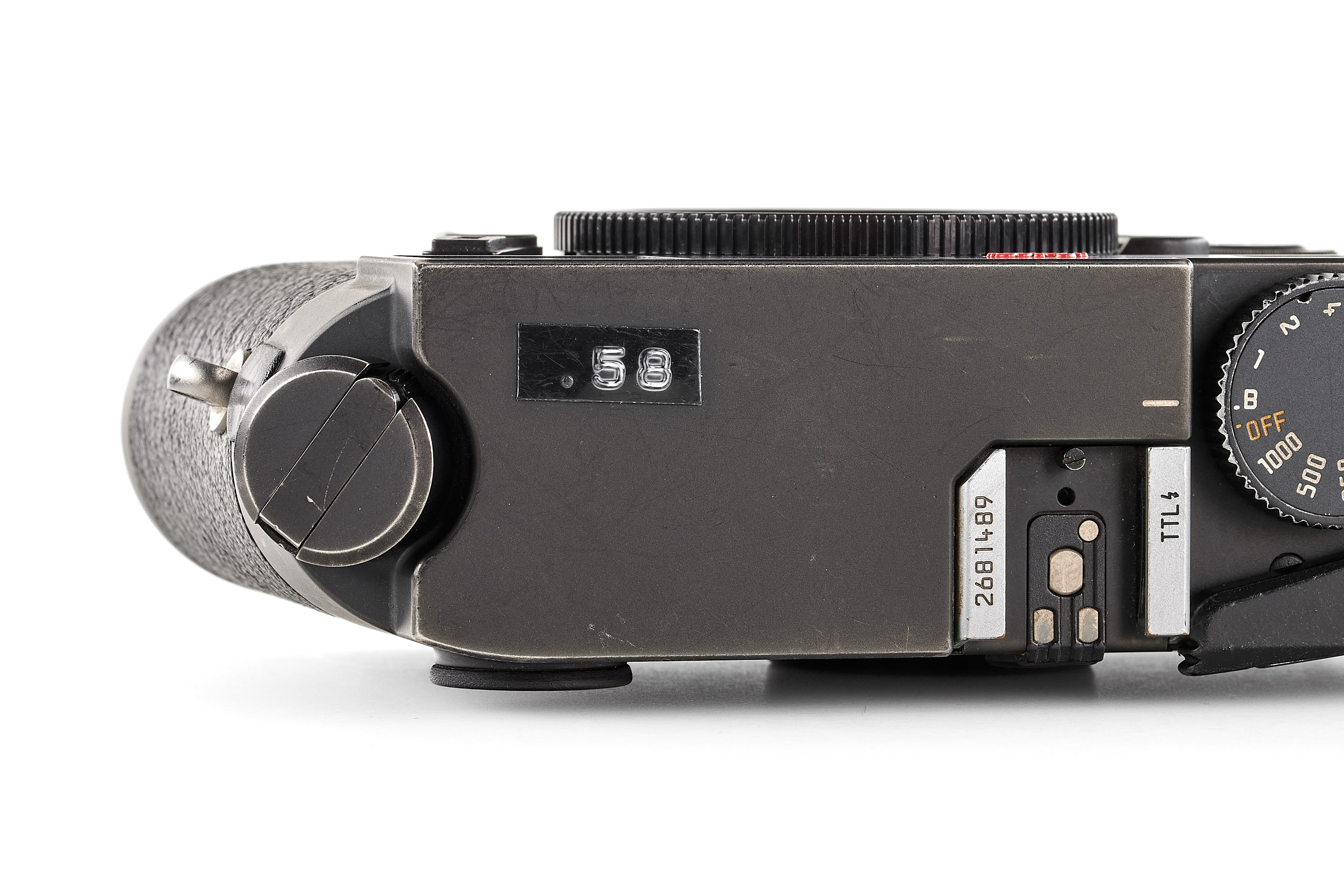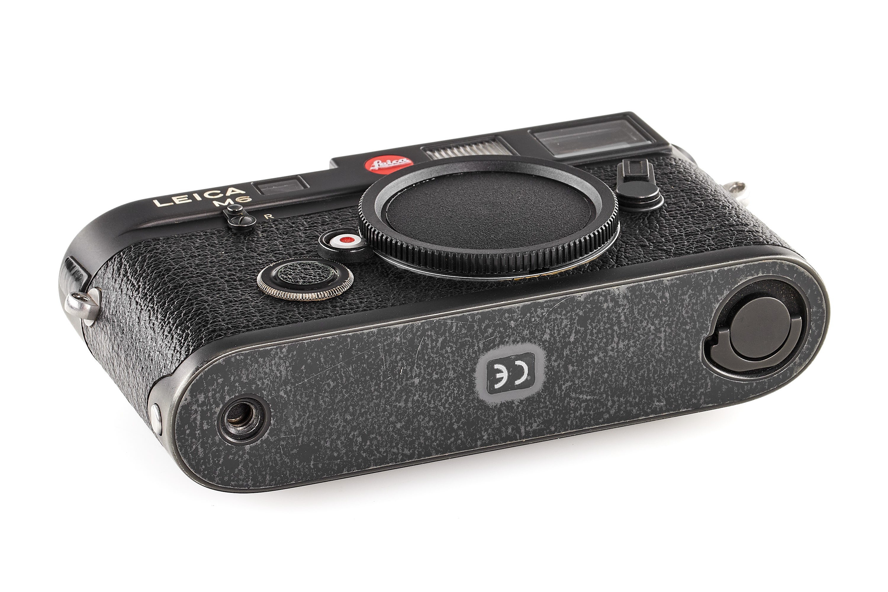 A set of three Leica M cameras, owned and used by the famous Magnum photographer Ian Berry. The set includes a Leica M6 TTL no.2681489 with 0.58 finder, Leica M6 no.1917541 with 0.72 finder, and Leica M6 no.2423151 with 0.85 finder. All cameras show visible signs of professional use. Each bears a distinctive sticker with the photographer's name on the back of the top plate. The set also includes two Rapidwinders, owned and used by the photographer. Three letters of provenance (one for each camera), and an example of the photographer's newest book 'Water'.