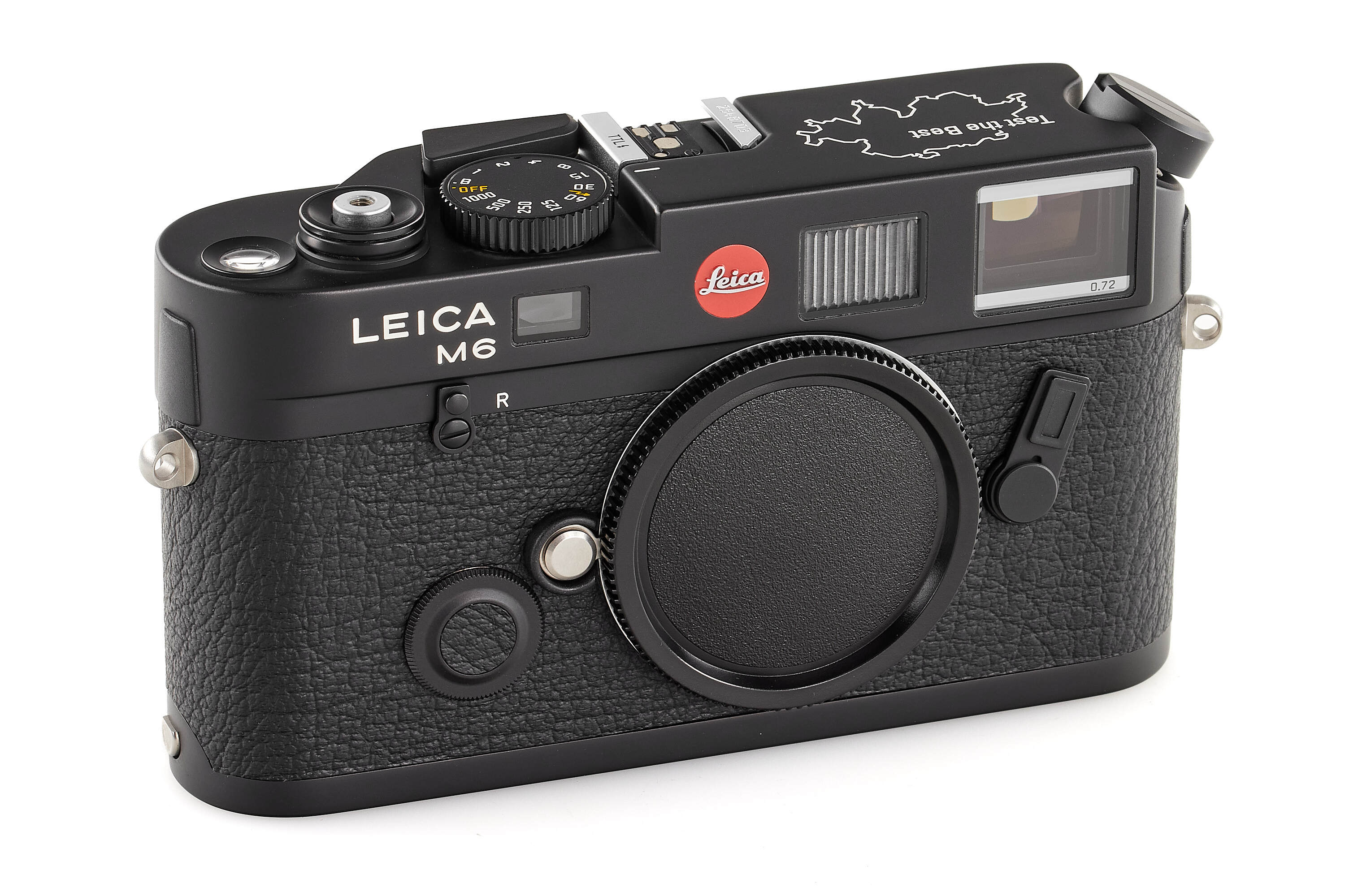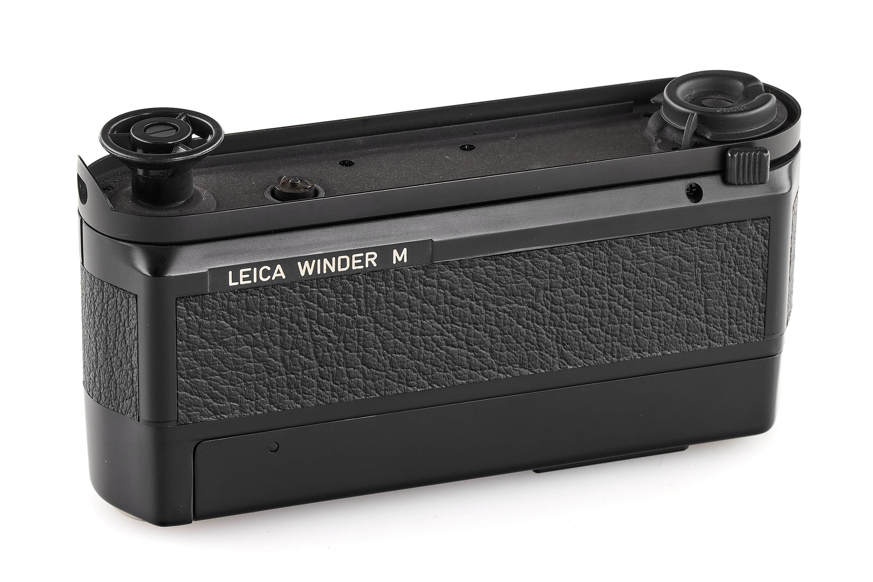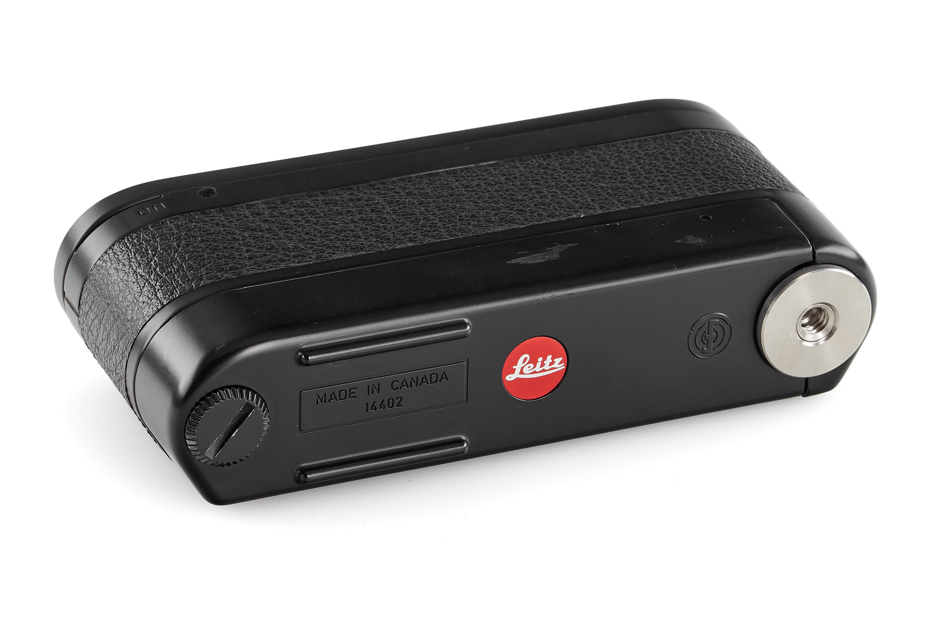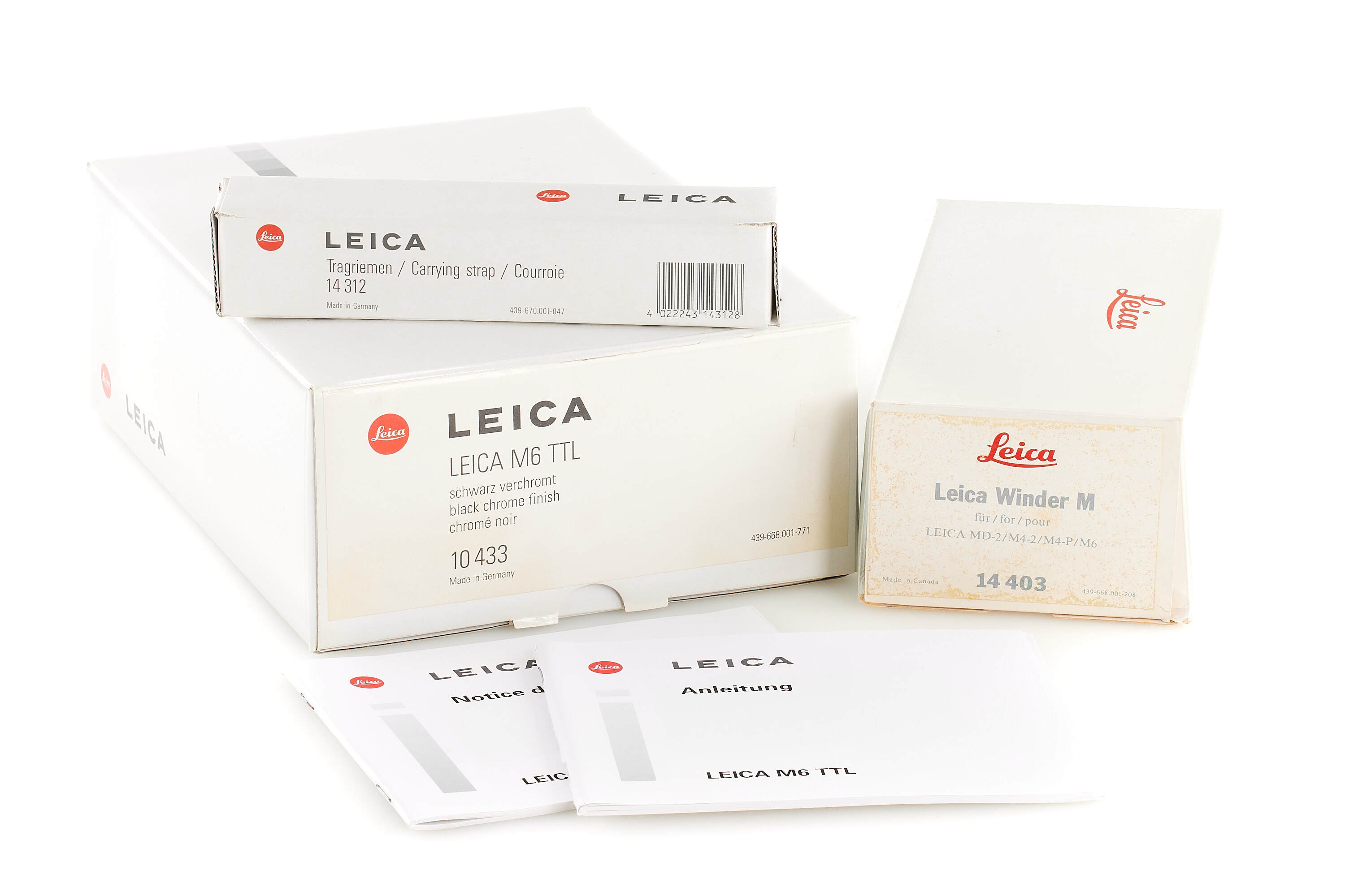 Very rare demonstration camera with 0.72 finder, only 40 units released on the Swiss market, black version with 'Test the Best' and an outline map of Switzerland engraved on the top plate, here in mint condition, with French and German instructions, body cap, strap, Leica Winder M no.20992 (maker's box), presentation and maker's boxes.