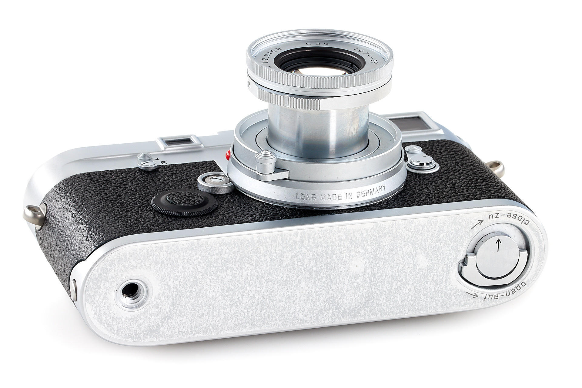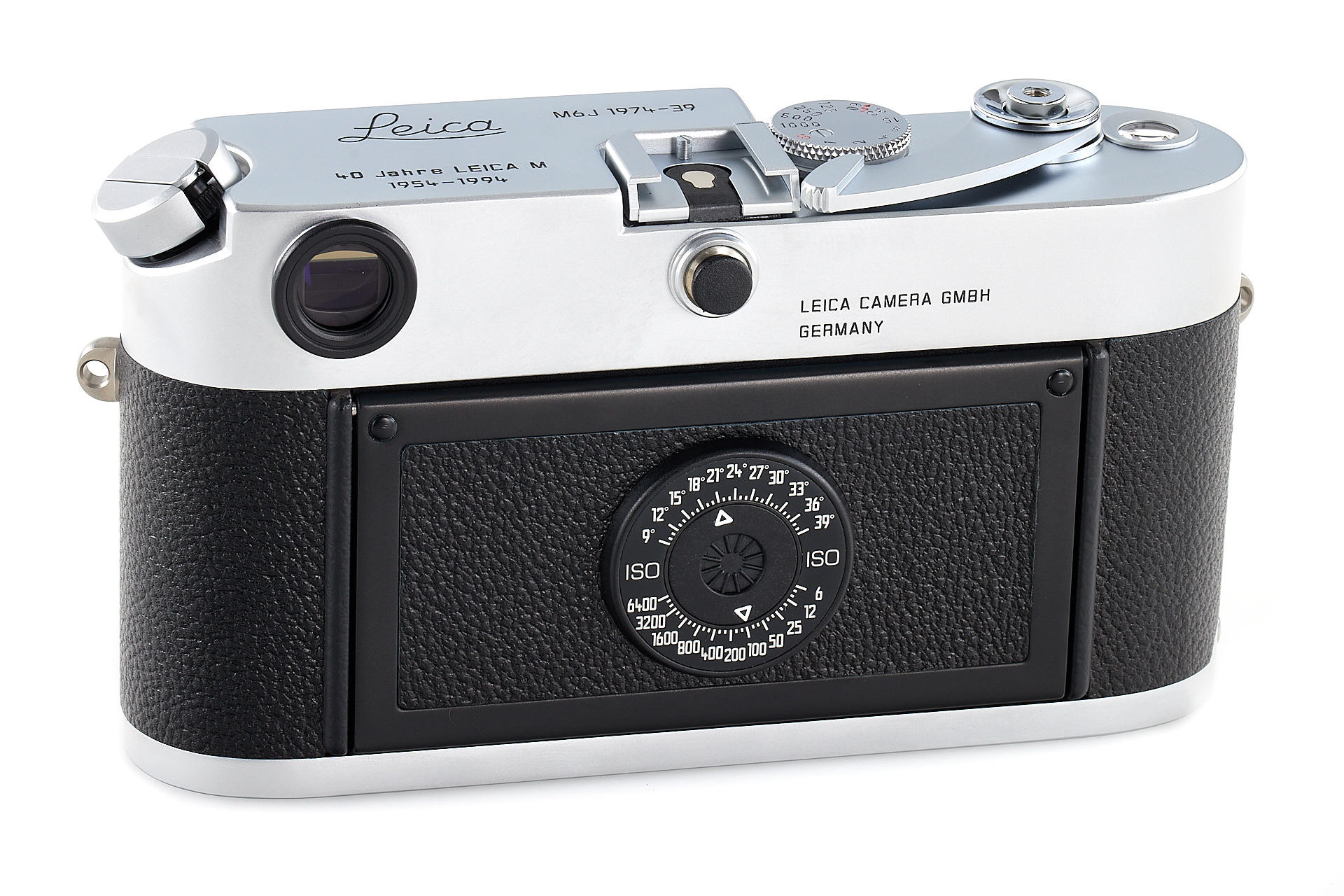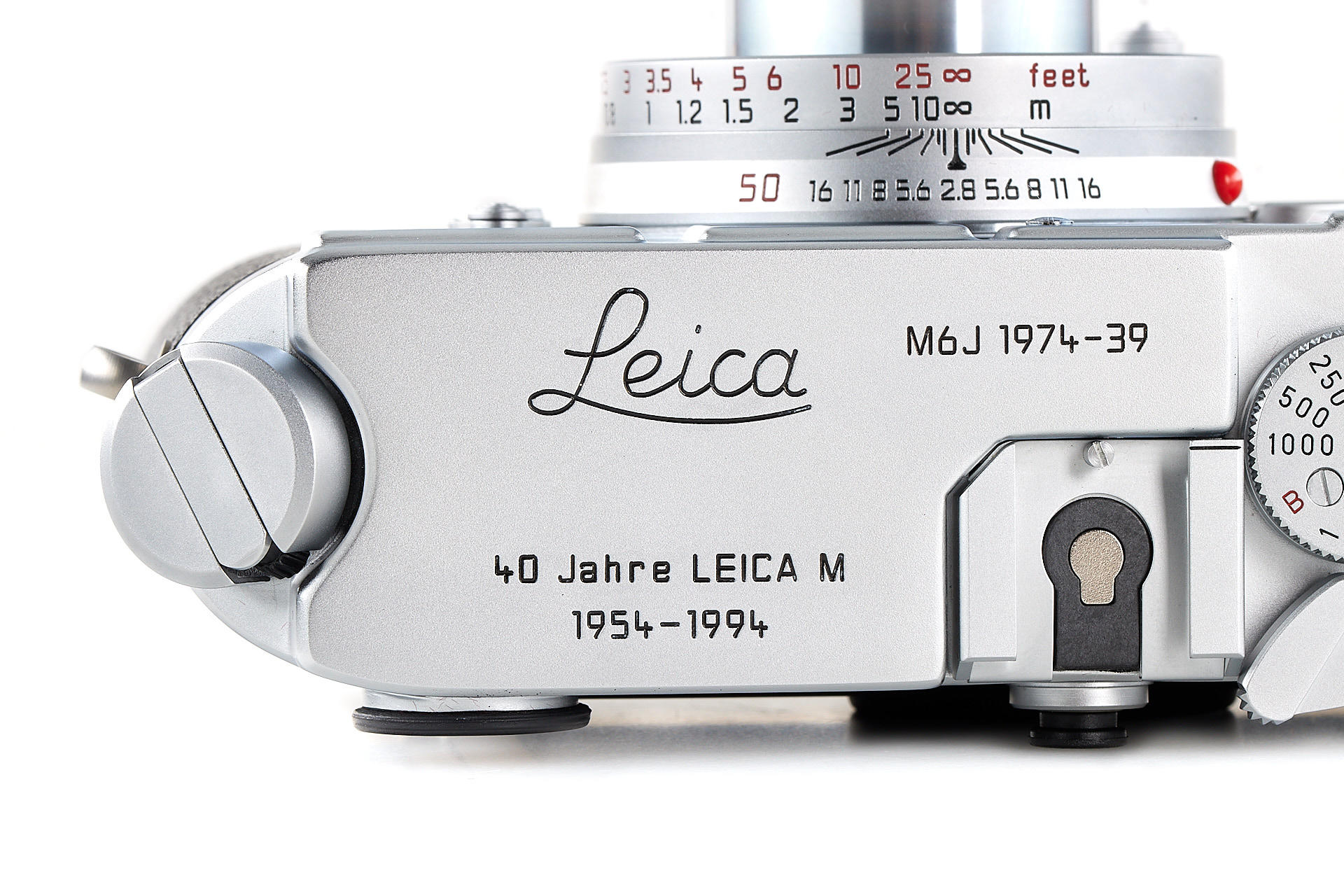 one of 1640 cameras made to celebrate 40th anniversary of Leica M (40 pieces for each production year), the camera combines features of the M3 and M6 cameras, complete matching set with body, collapsible Elmar 2.8/50mm, all in unused condition, with caps, hood, leather case, papers, certificate, wooden presentation box (with a crack) and maker's box