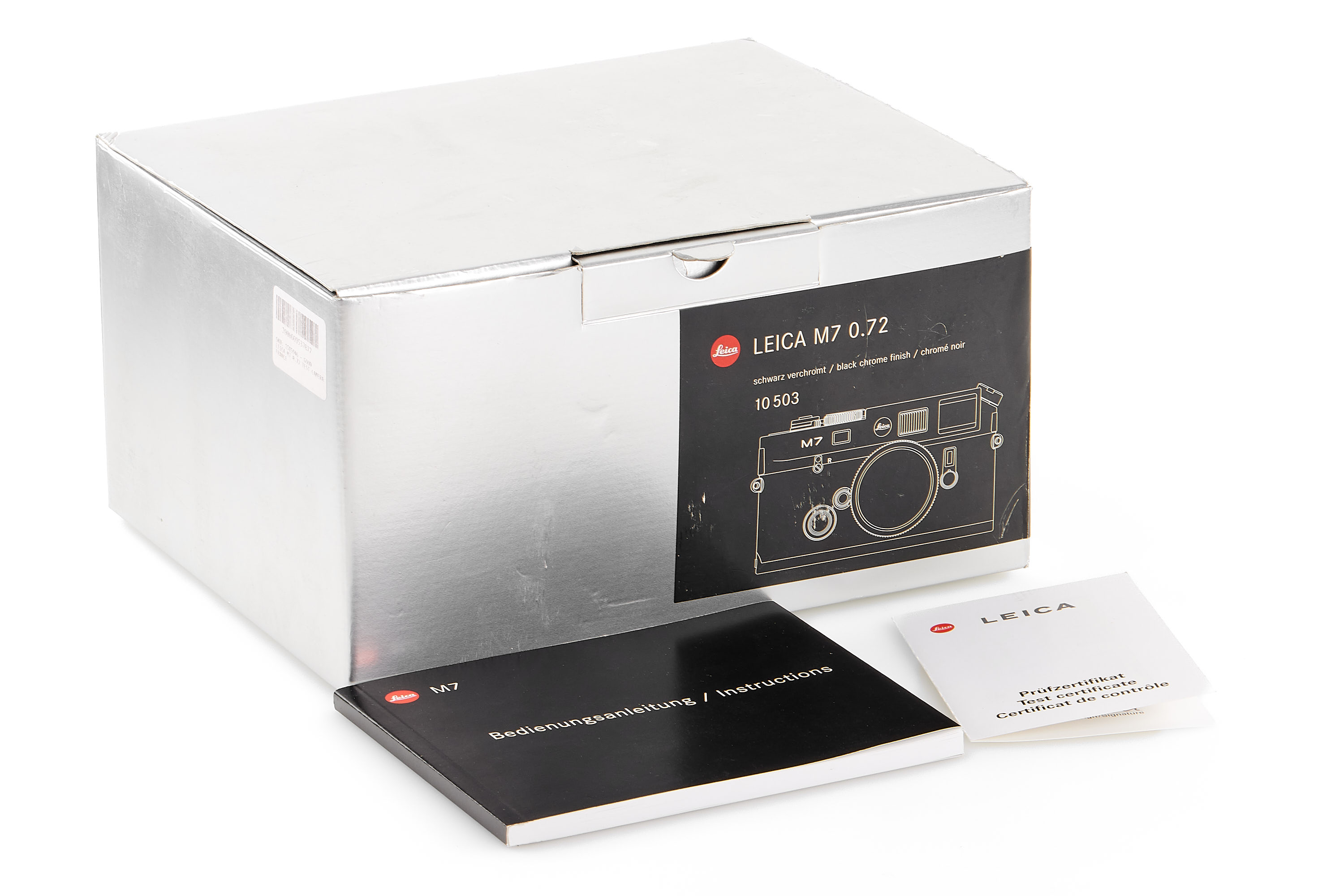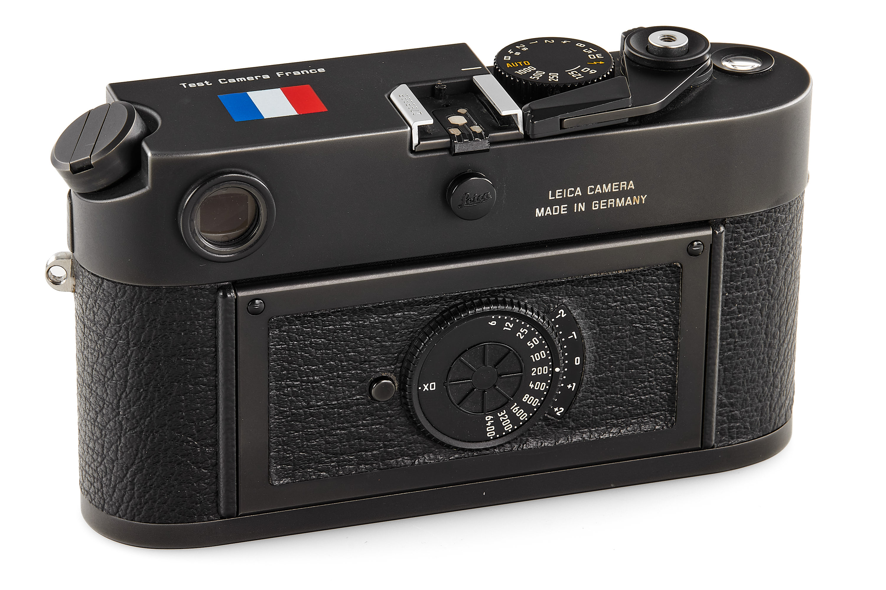 One of only 579 'Flag M7' cameras, a special demonstration series for each of the Leica agencies throughout the world, here 'Test Camera France' in almost mint condition and working condition, only showing some light signs of use, with body cap, instructions, paper, presentation box and maker's box.