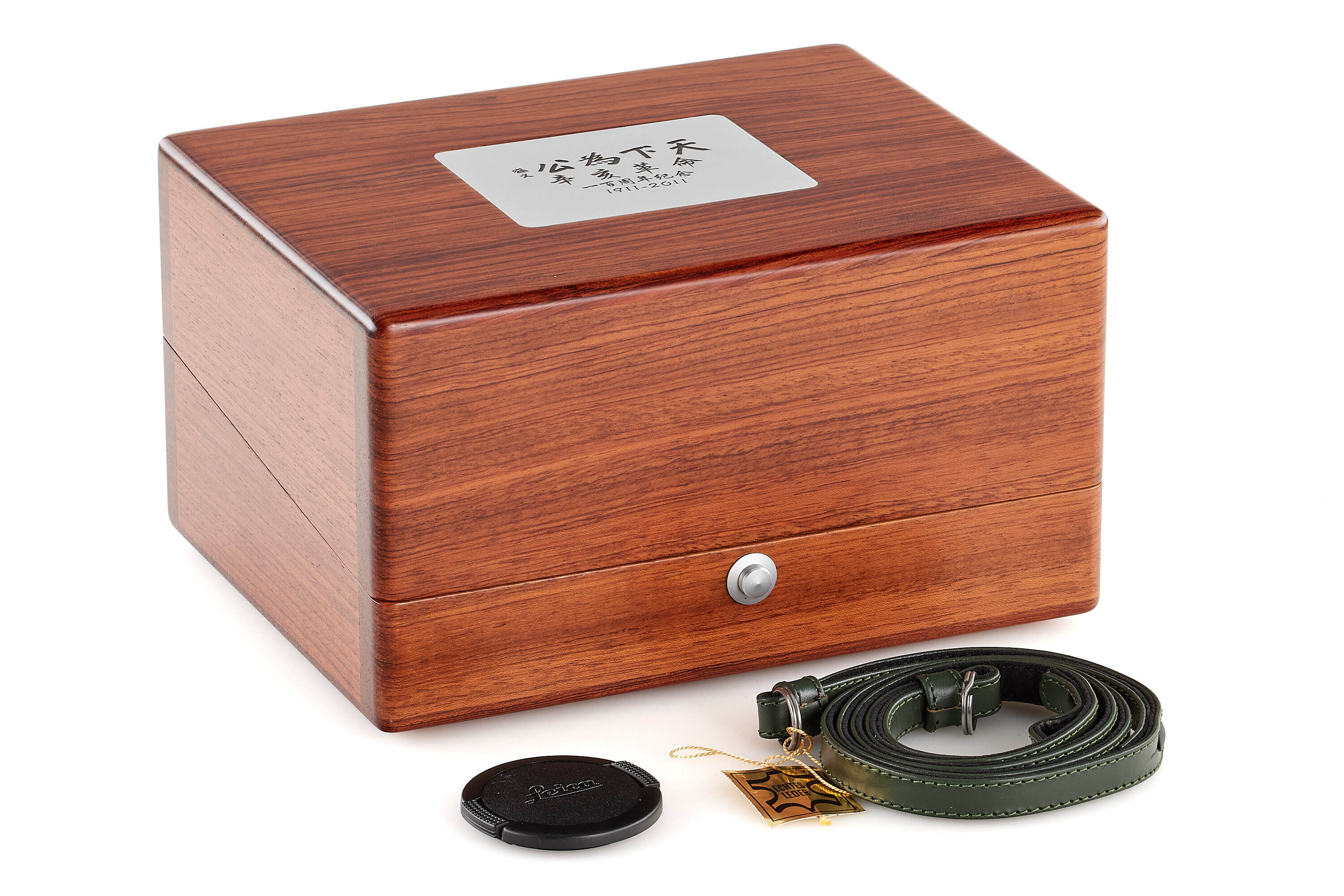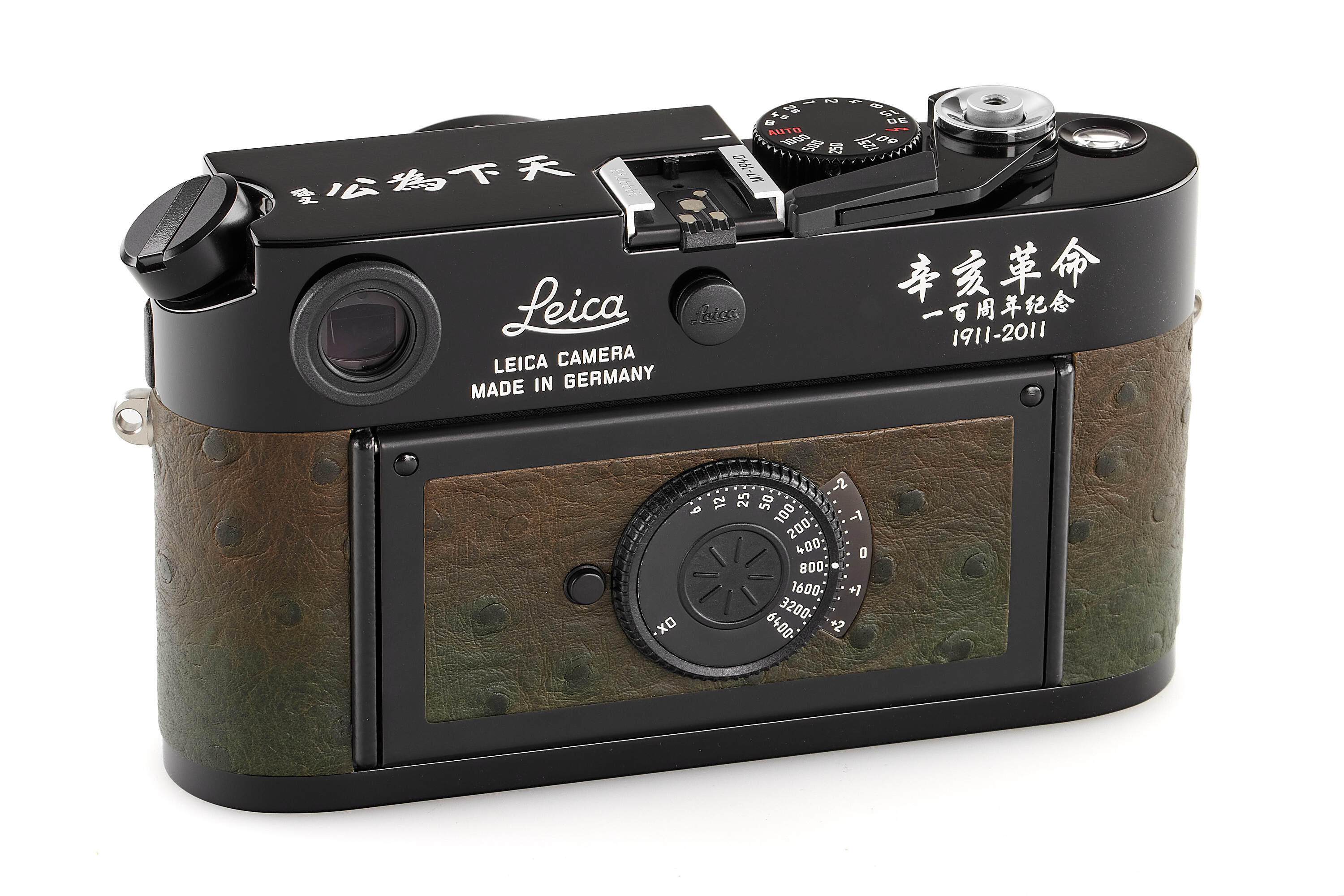 Leica M7 'China's 1911 Revolution' limited edition set, released in 2011 to commemorate the 100th anniversary of the Xinhai Revolution. The camera is finished in black paint with green leather covering, engraved on the top plate with the Sun Yat-sen quote “The world is for the public, Sun Wen” and on the back with “Centenary of the Xinhai Revolution 1911–2011.”