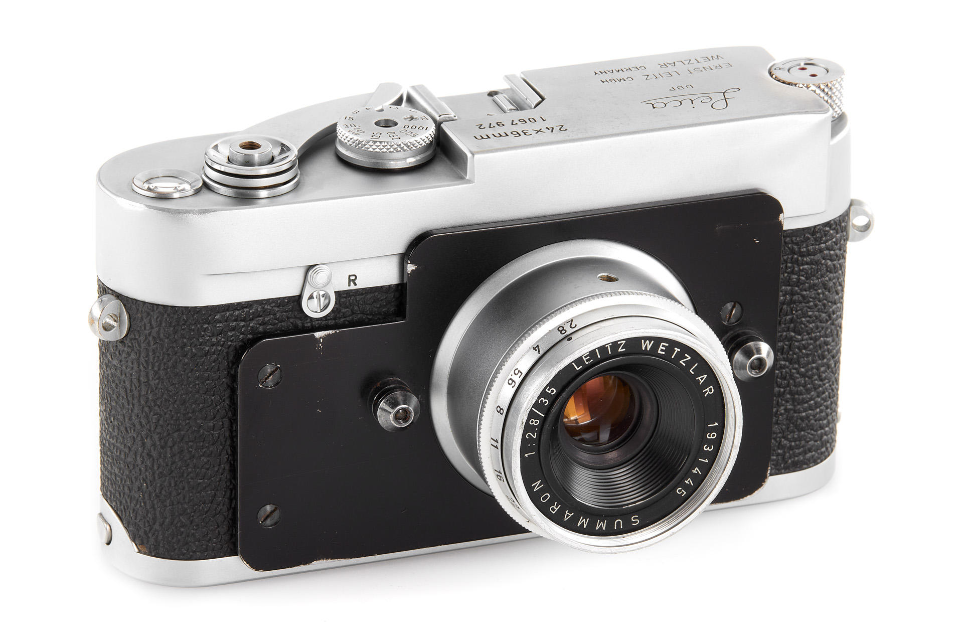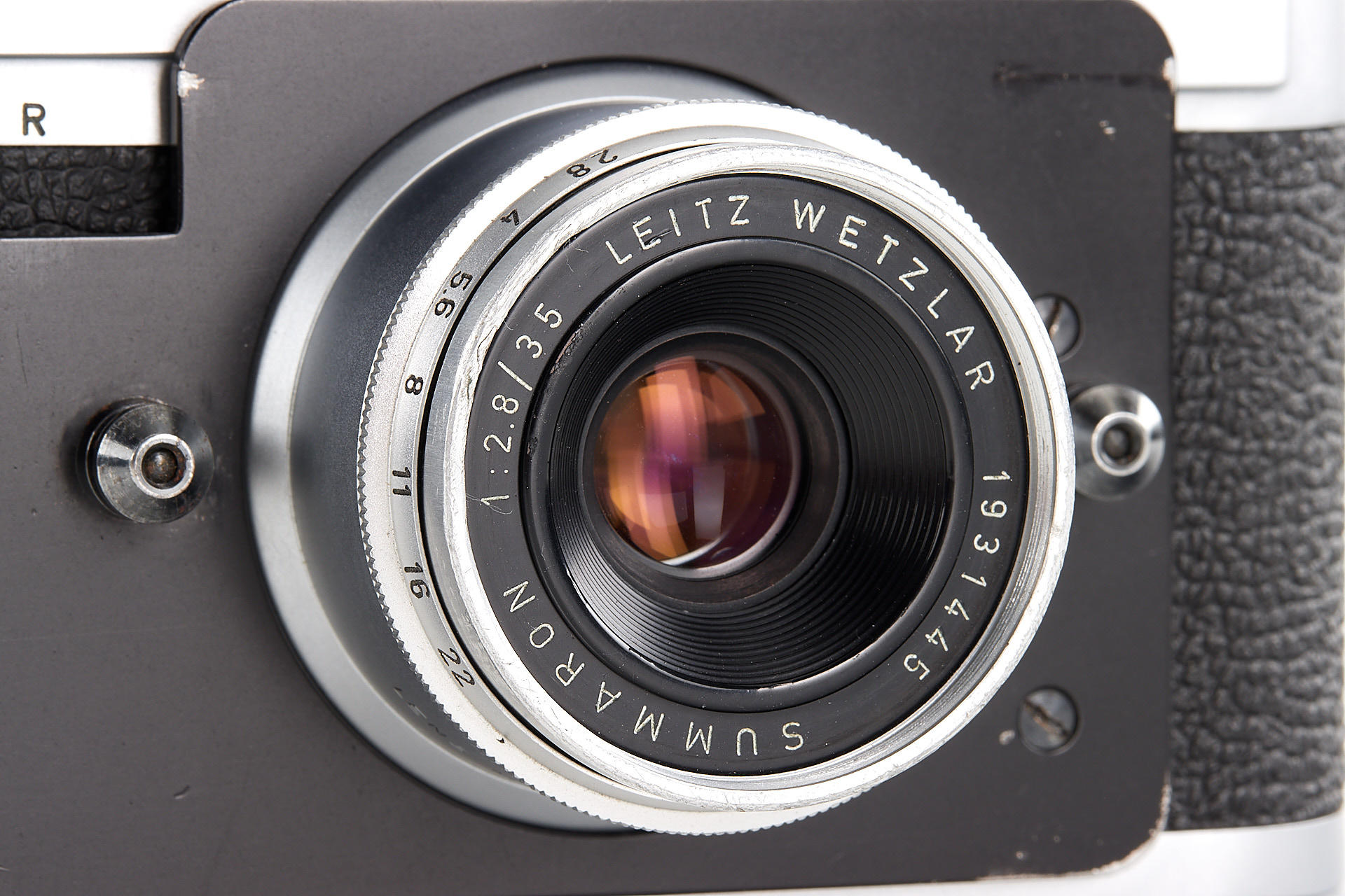 rare MD post camera in fine condition, some small dents on the top plate, with fixed focus Summaron 2.8/35mm no.1931445, post MD and MDa cameras were supplied to German Post Office and other telephone authorities for recording telephone meters