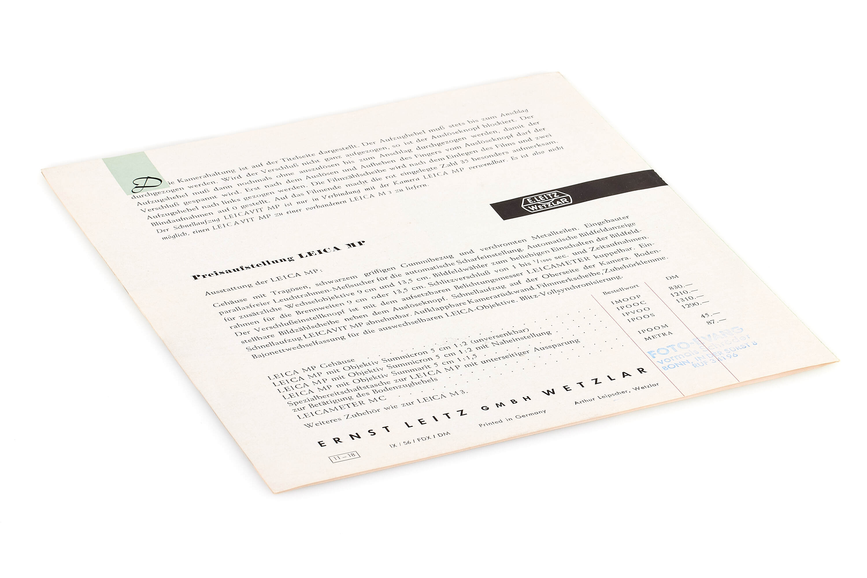 Rare Leica MP brochure, German version in absolutely mint condition, no perforations.