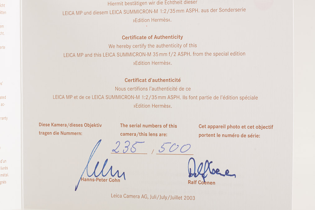 limited edition of 500 pieces (special no.235/500) in new condition complete with Summicron-M 2/35mm Asph. no.235/500, all papers, maker's boxes