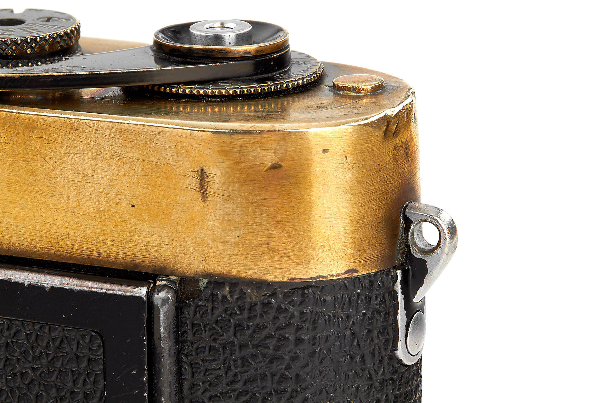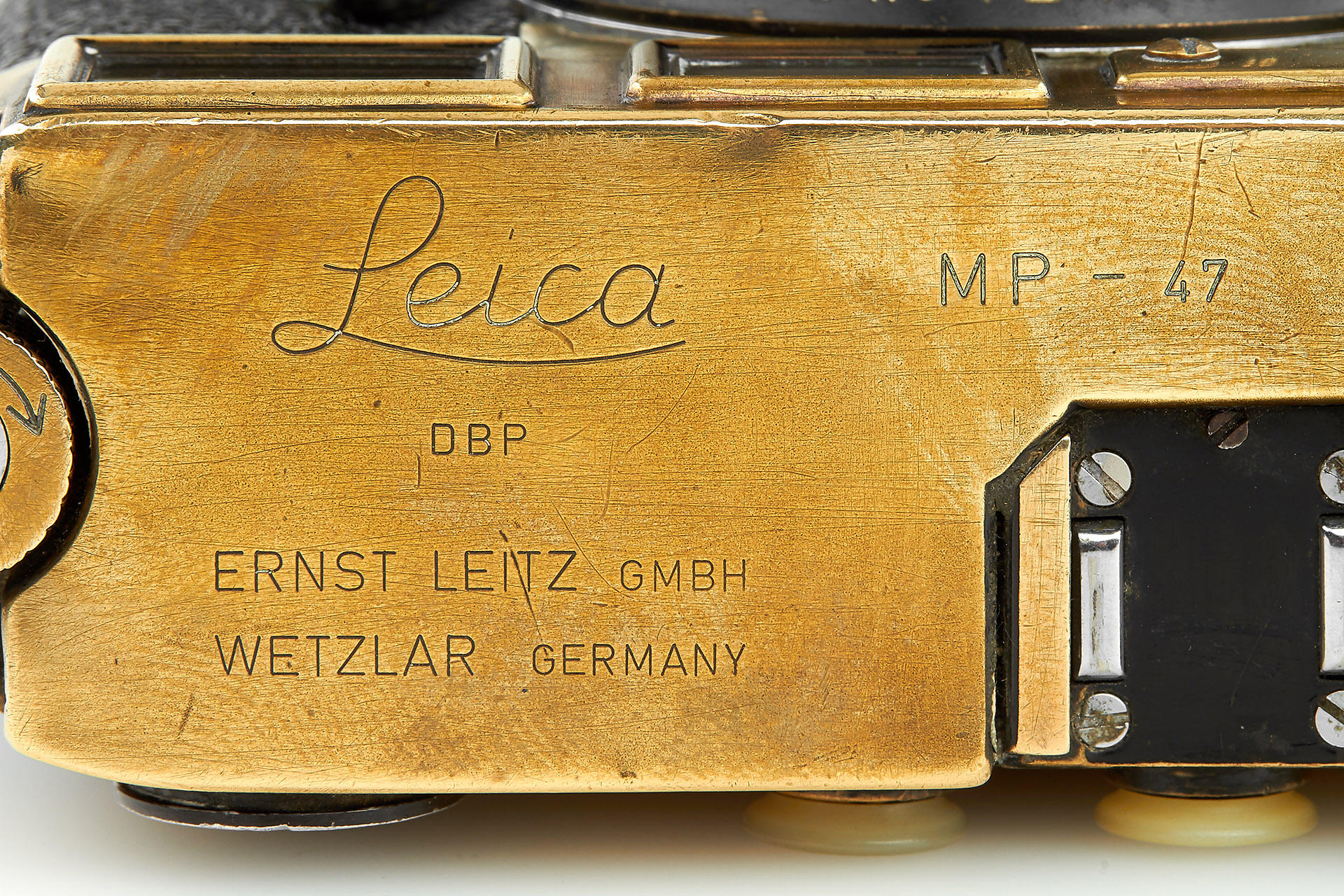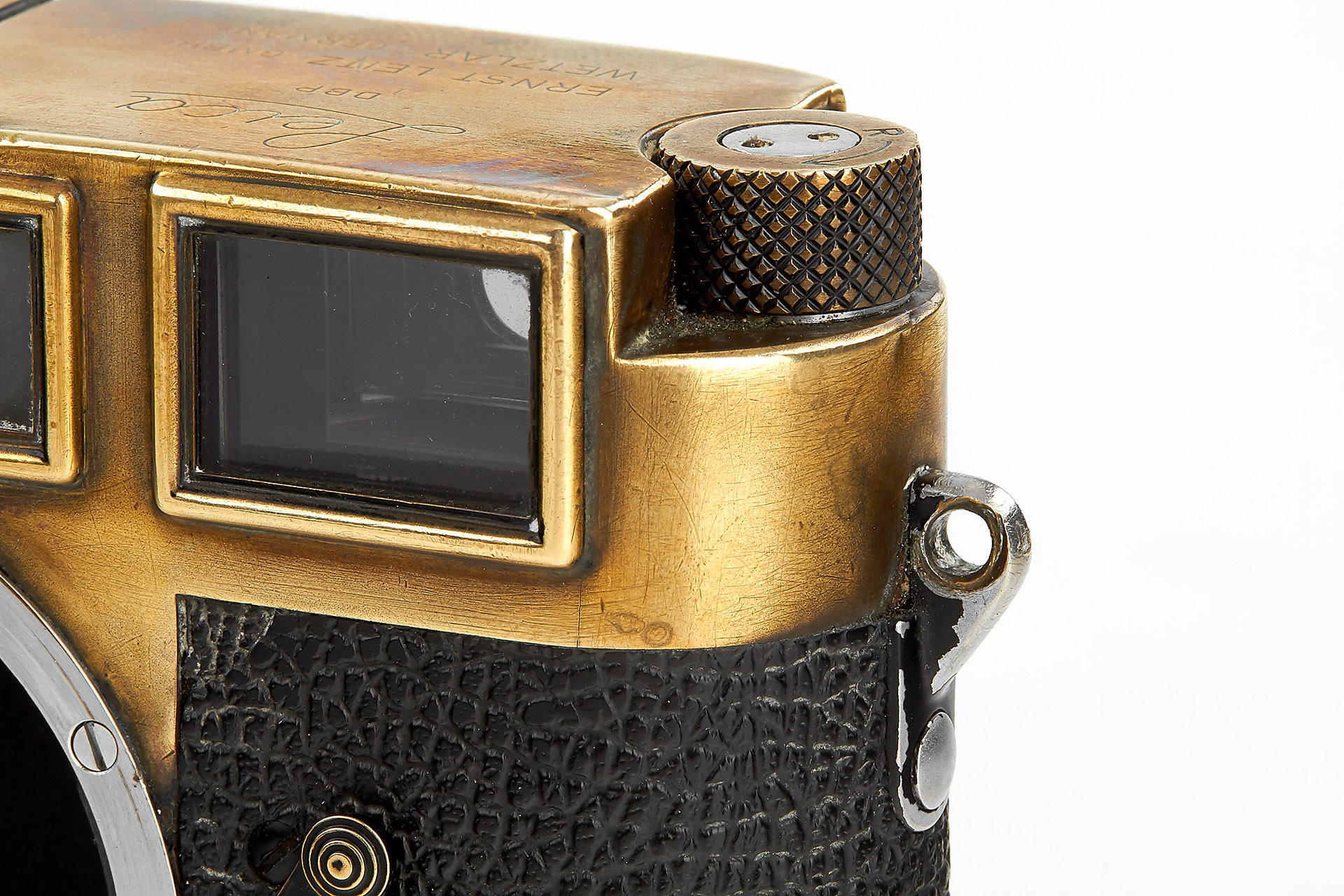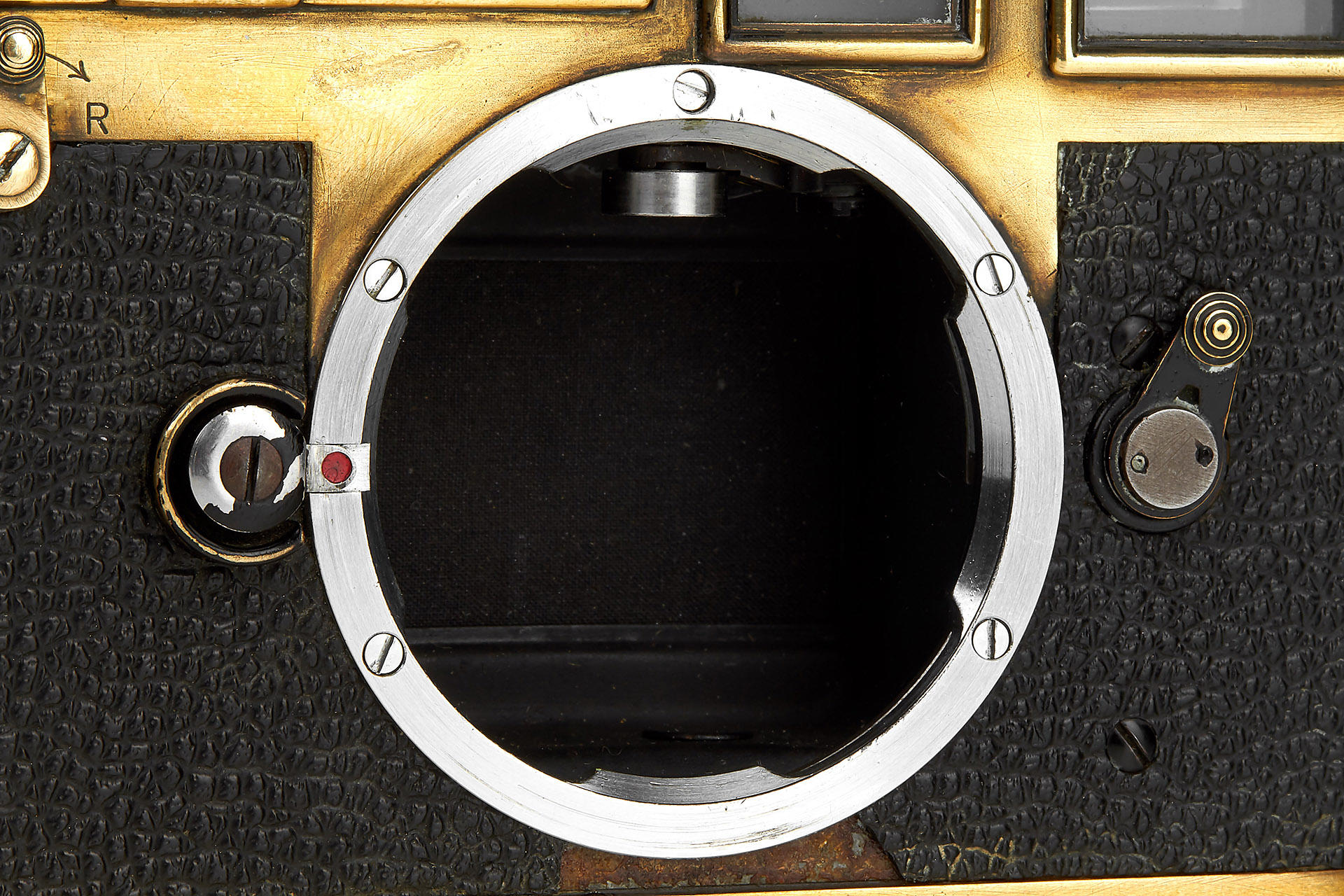 original black paint MP delivered to New York in 1957 (codename IMOOP - Leica MP with Leicavit base), owned and used by French Photographer Gérard Bois (Gérard-Aimé, 1943-2018), known for his press coverage of the volatile period of civil unrest in France 1968, the camera has been in the possession of the photographer over a period of 50 years, he also decided to remove the disappearing rests of black paint from the top plate and from the Leicavit, despite the enormous wear the camera is still in perfect working condition, upgraded to single stroke. Included is a rare black paint, brass mount Summicron 2/5cm no.1468967 (fine original condition, good optics). Only 141 black paint MP cameras have been made, most of them have been sold to professional photographers - it is one of the most iconic Leica cameras.