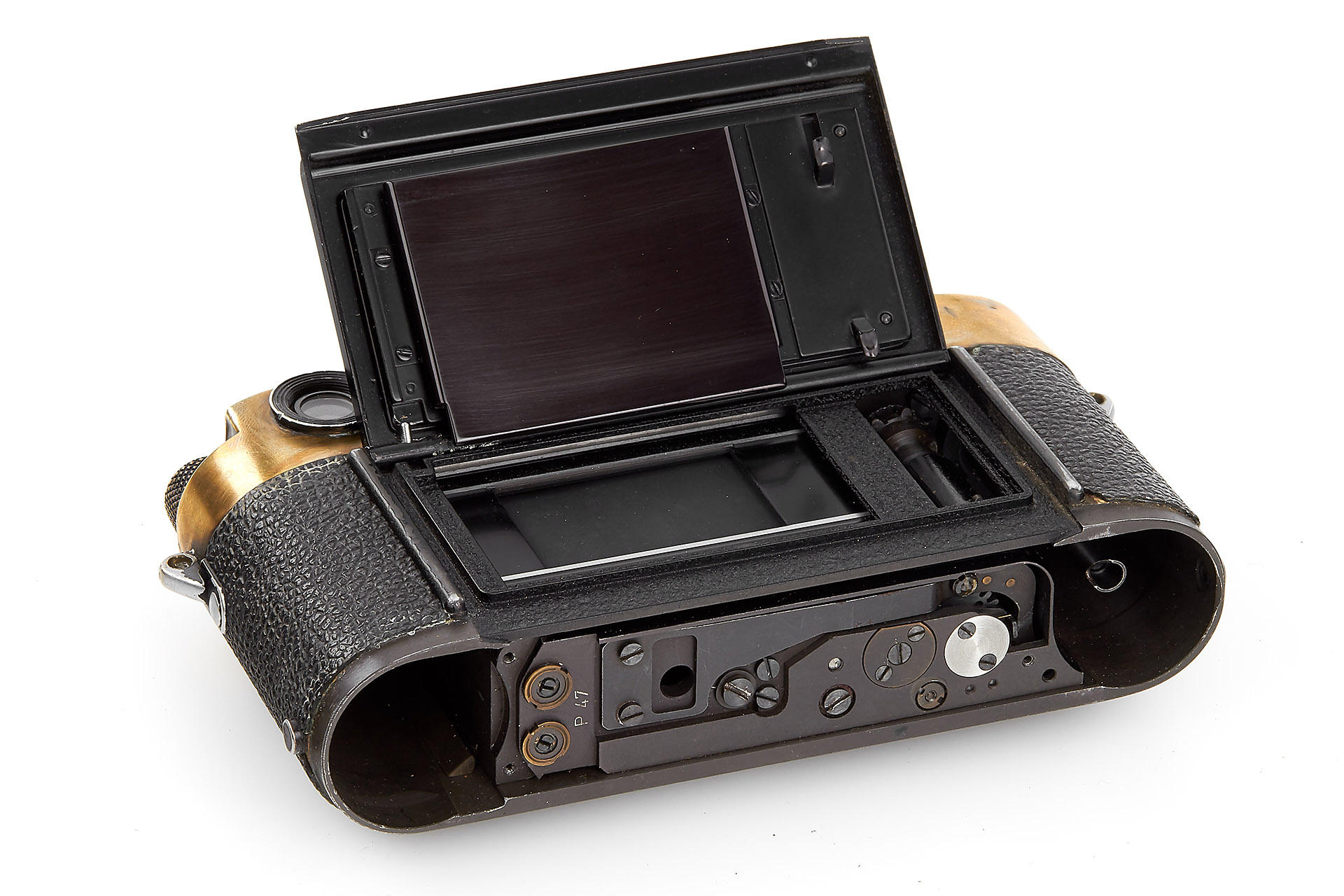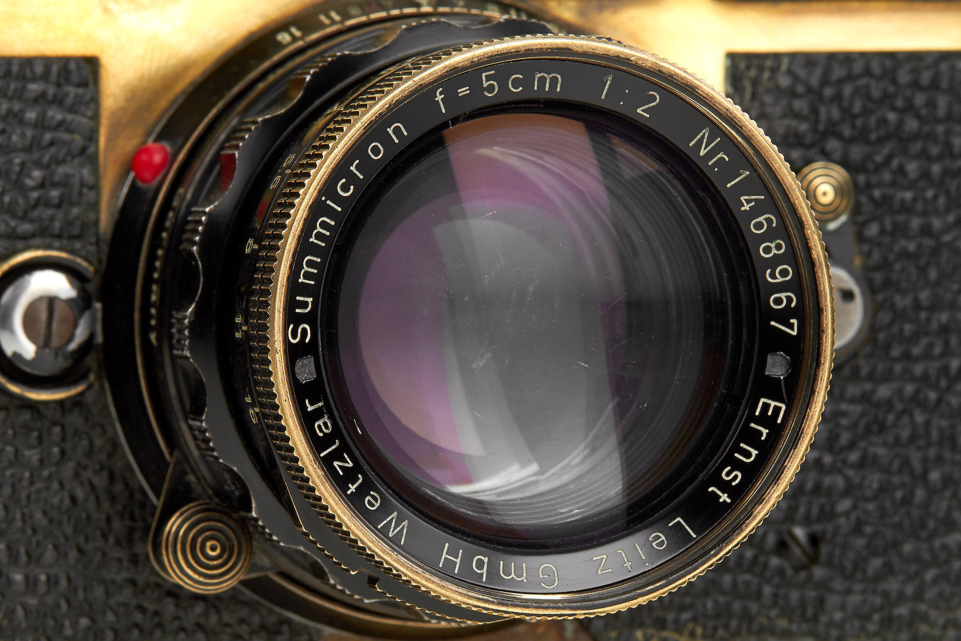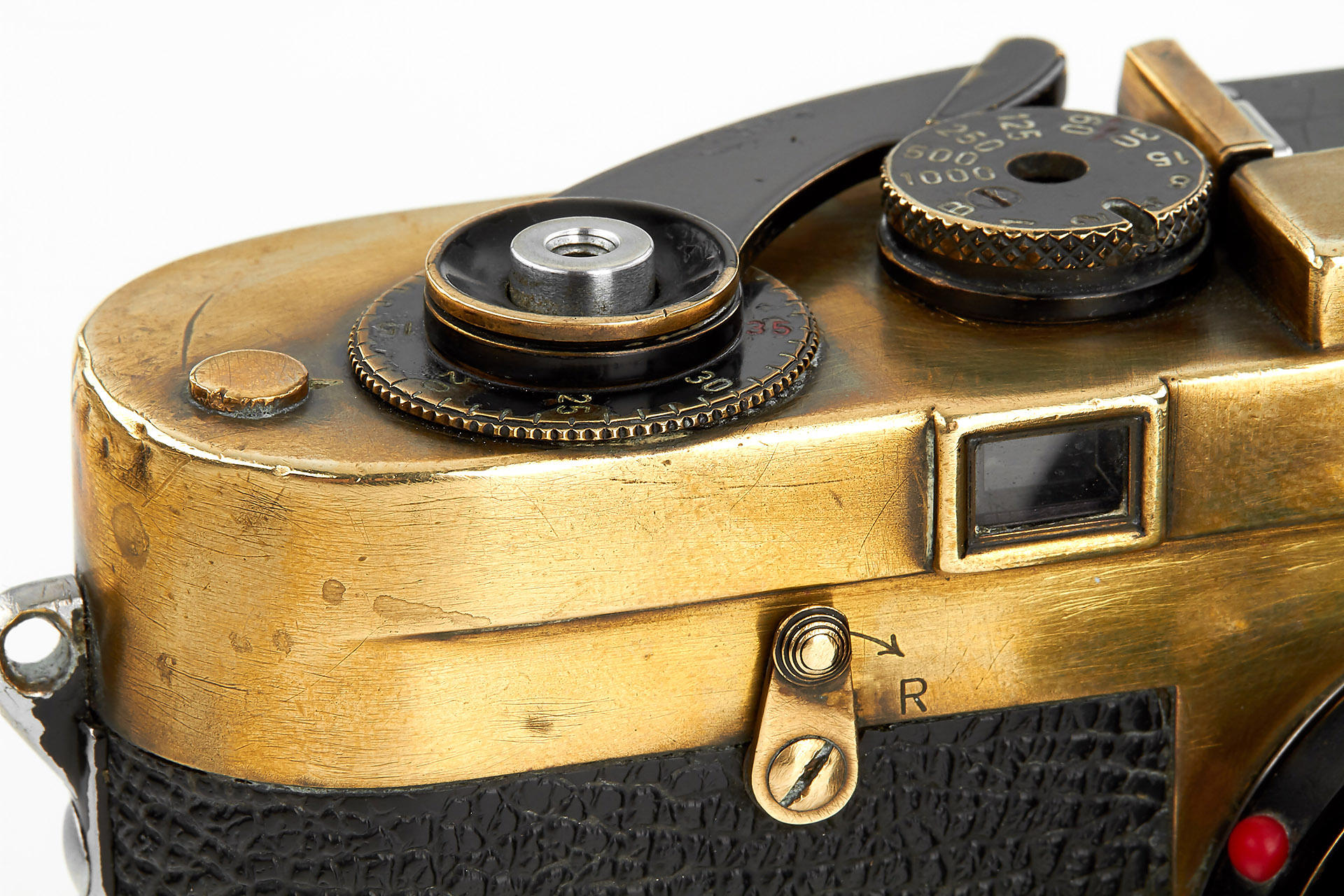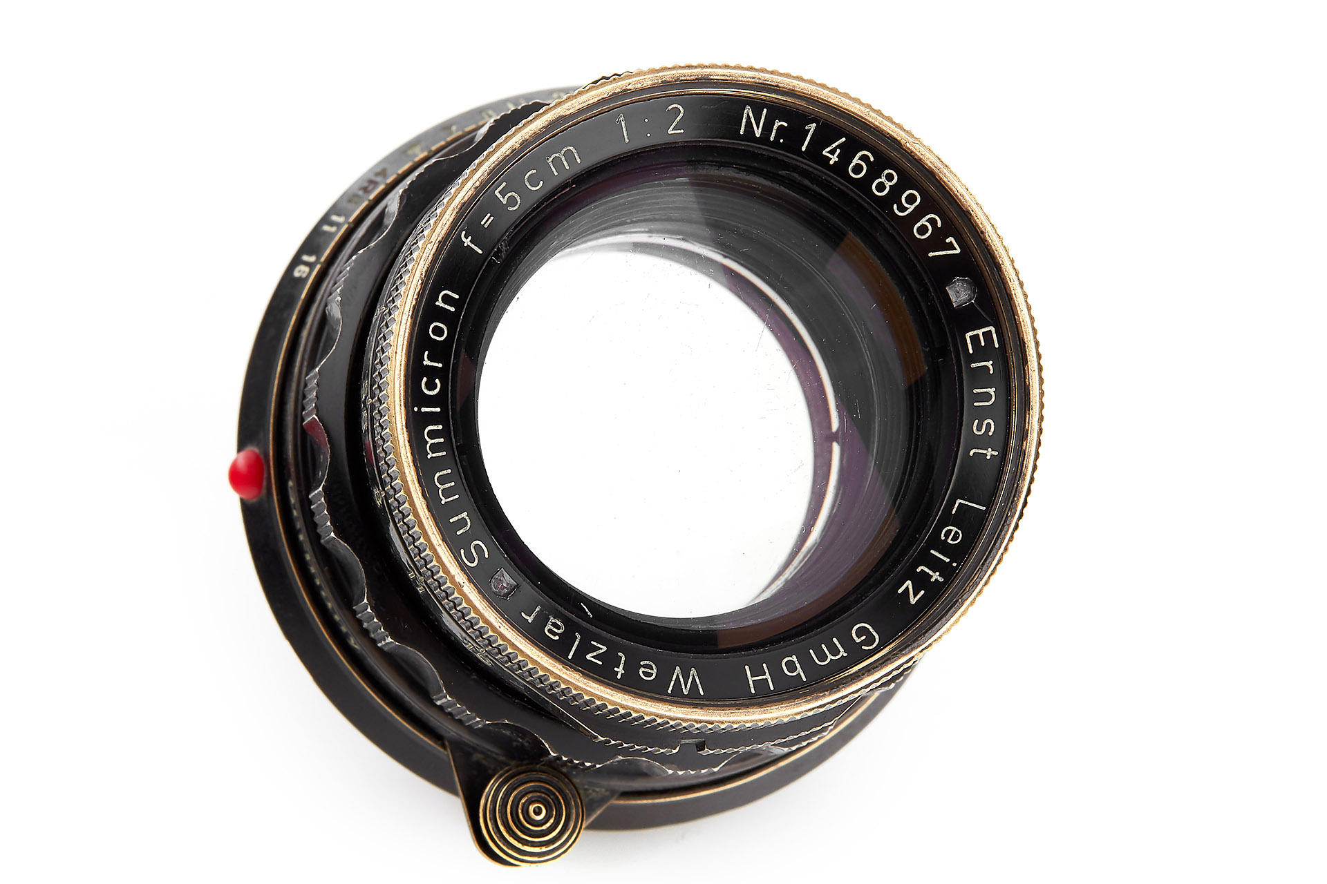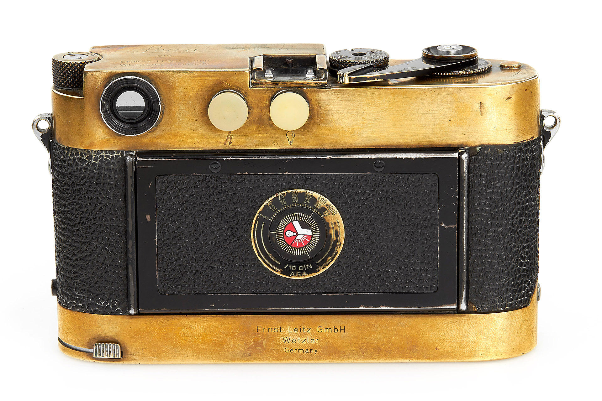 original black paint MP delivered to New York in 1957 (codename IMOOP - Leica MP with Leicavit base), owned and used by French Photographer Gérard Bois (Gérard-Aimé, 1943-2018), known for his press coverage of the volatile period of civil unrest in France 1968, the camera has been in the possession of the photographer over a period of 50 years, he also decided to remove the disappearing rests of black paint from the top plate and from the Leicavit, despite the enormous wear the camera is still in perfect working condition, upgraded to single stroke. Included is a rare black paint, brass mount Summicron 2/5cm no.1468967 (fine original condition, good optics). Only 141 black paint MP cameras have been made, most of them have been sold to professional photographers - it is one of the most iconic Leica cameras.