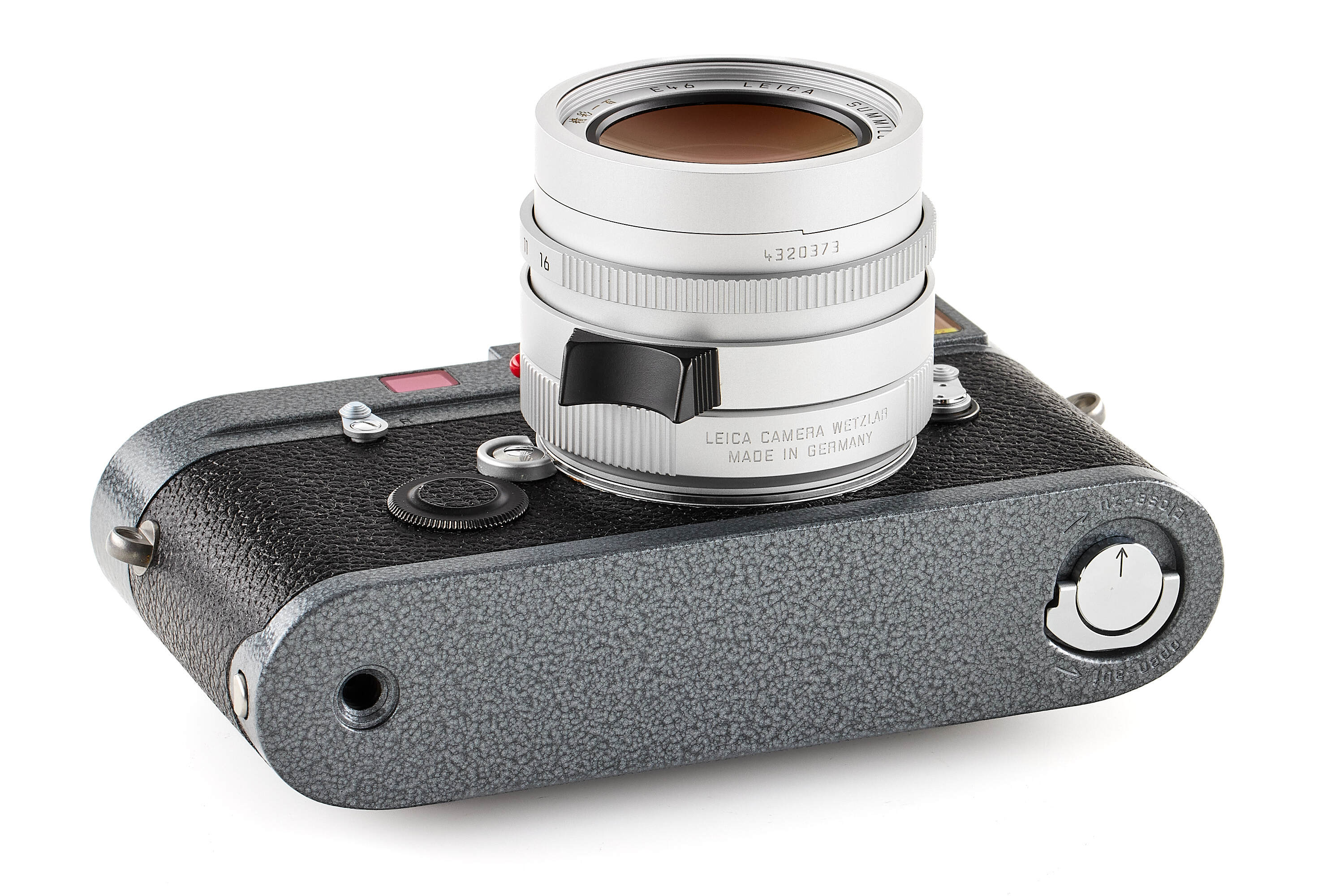 Before finalizing the production version, Leica considered a different finish: grey hammertone paint. The offered prototype represents this early design direction and is the only known example of its kind. It is presented here in mint, unused condition and includes the camera body no. P001, paired with a matching Summilux-M 1:1.4/35mm ASPH. lens no. 4320373 — both bearing the prototype designation N01/N01.