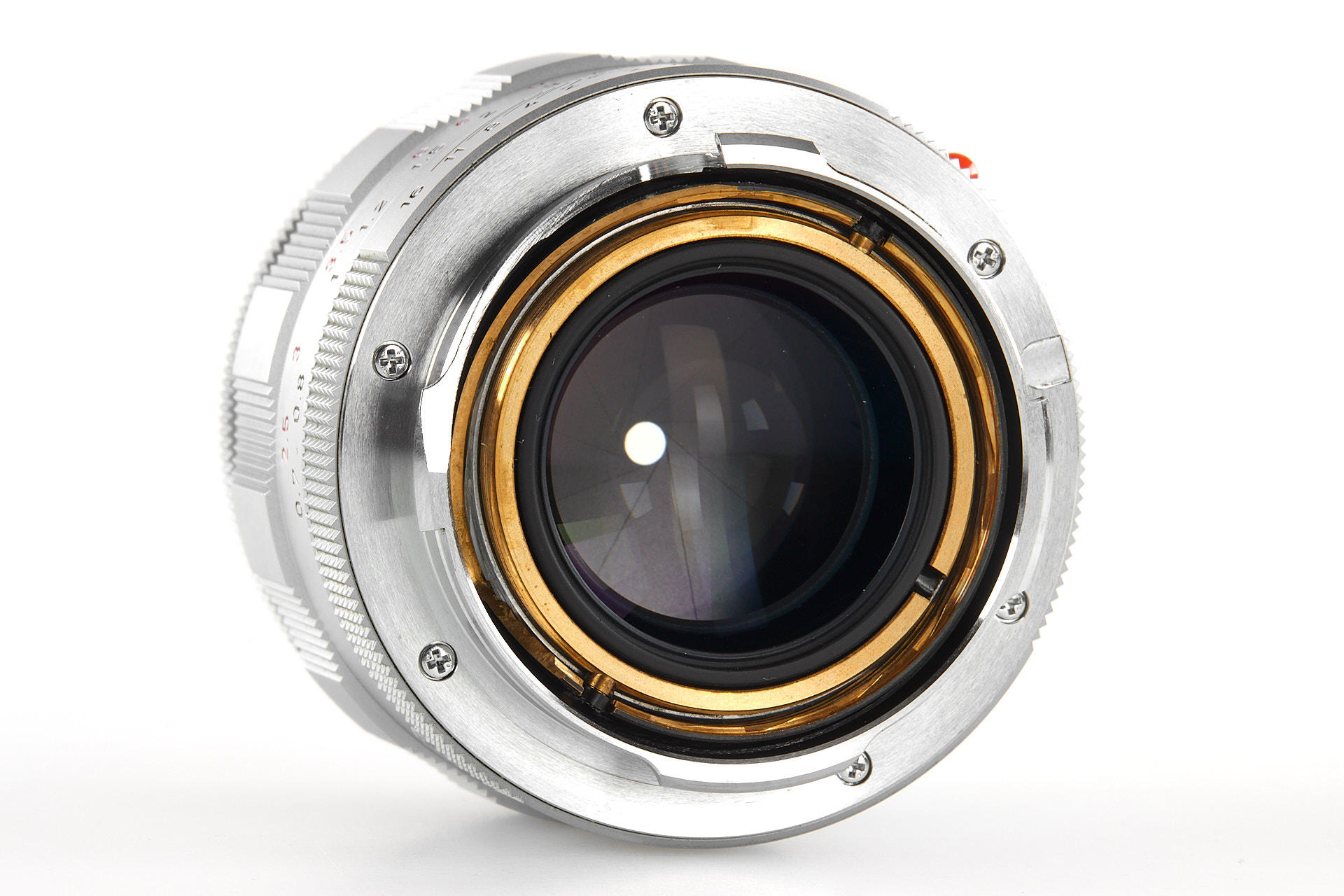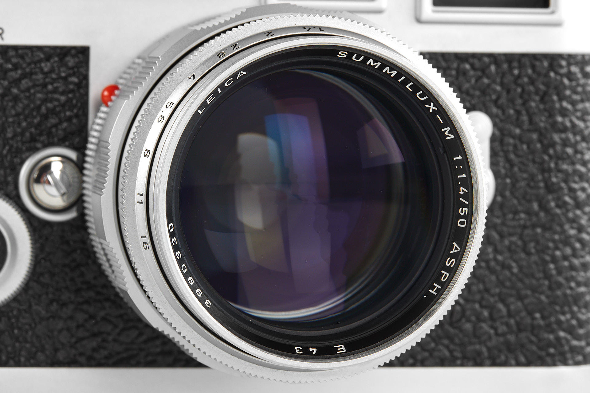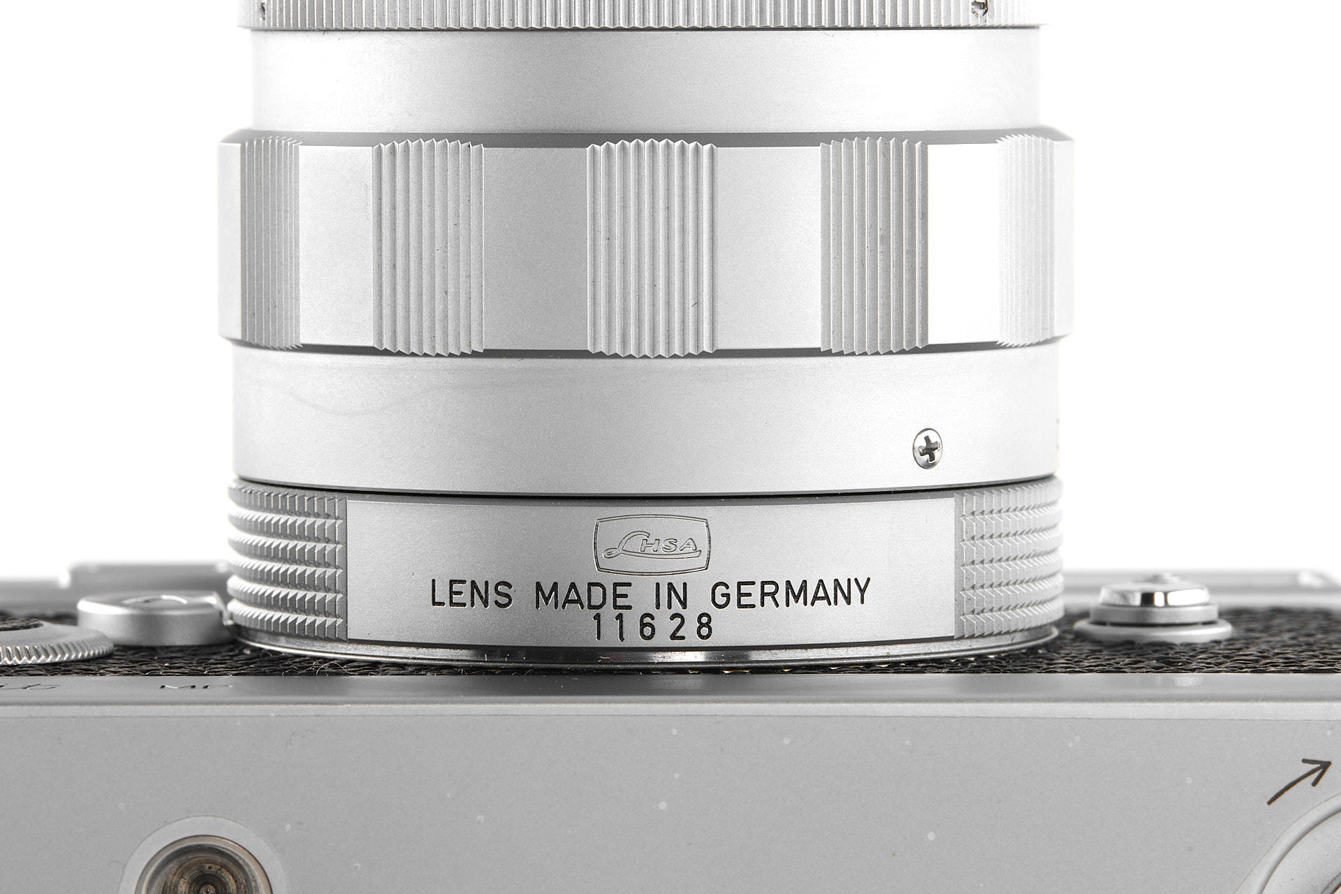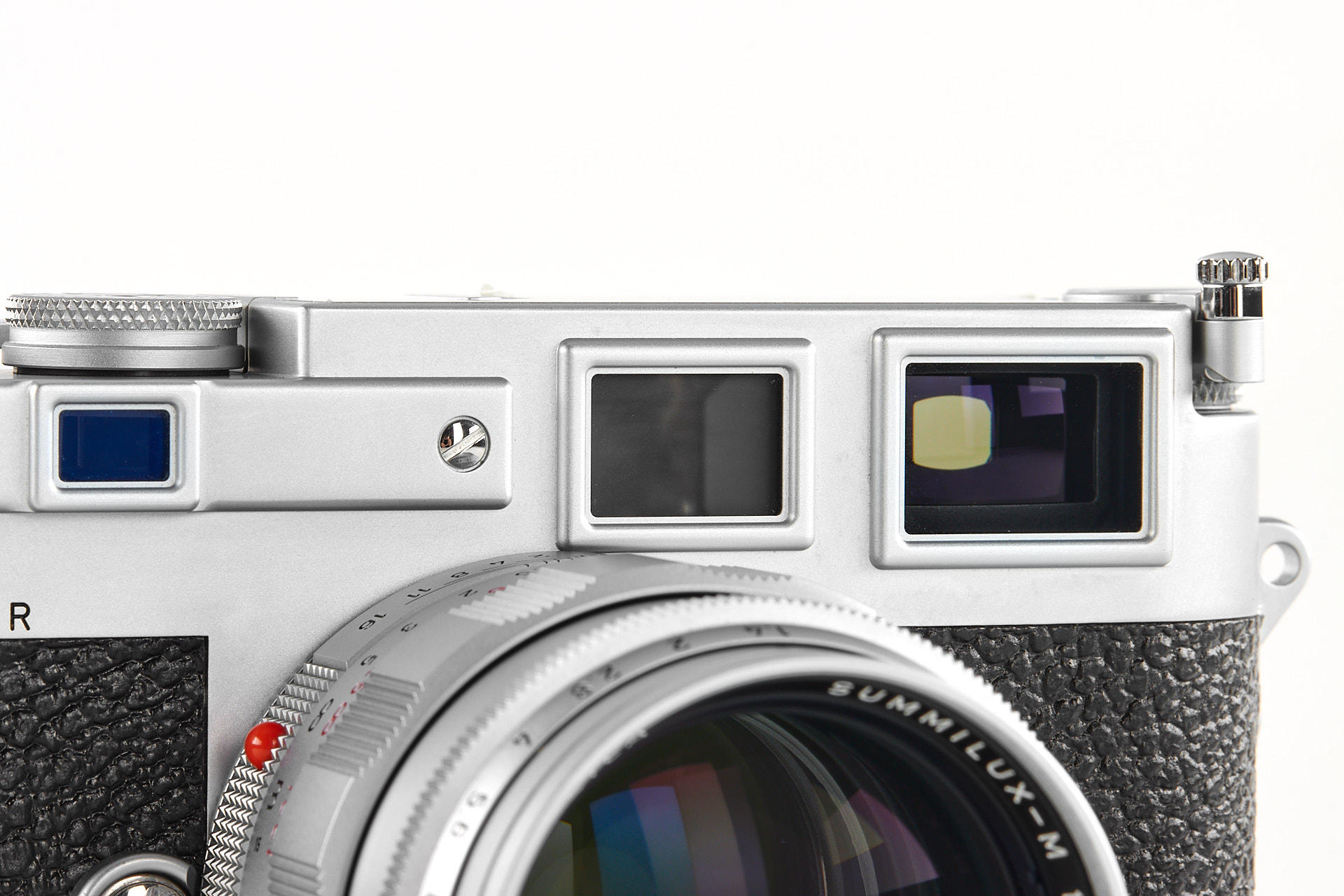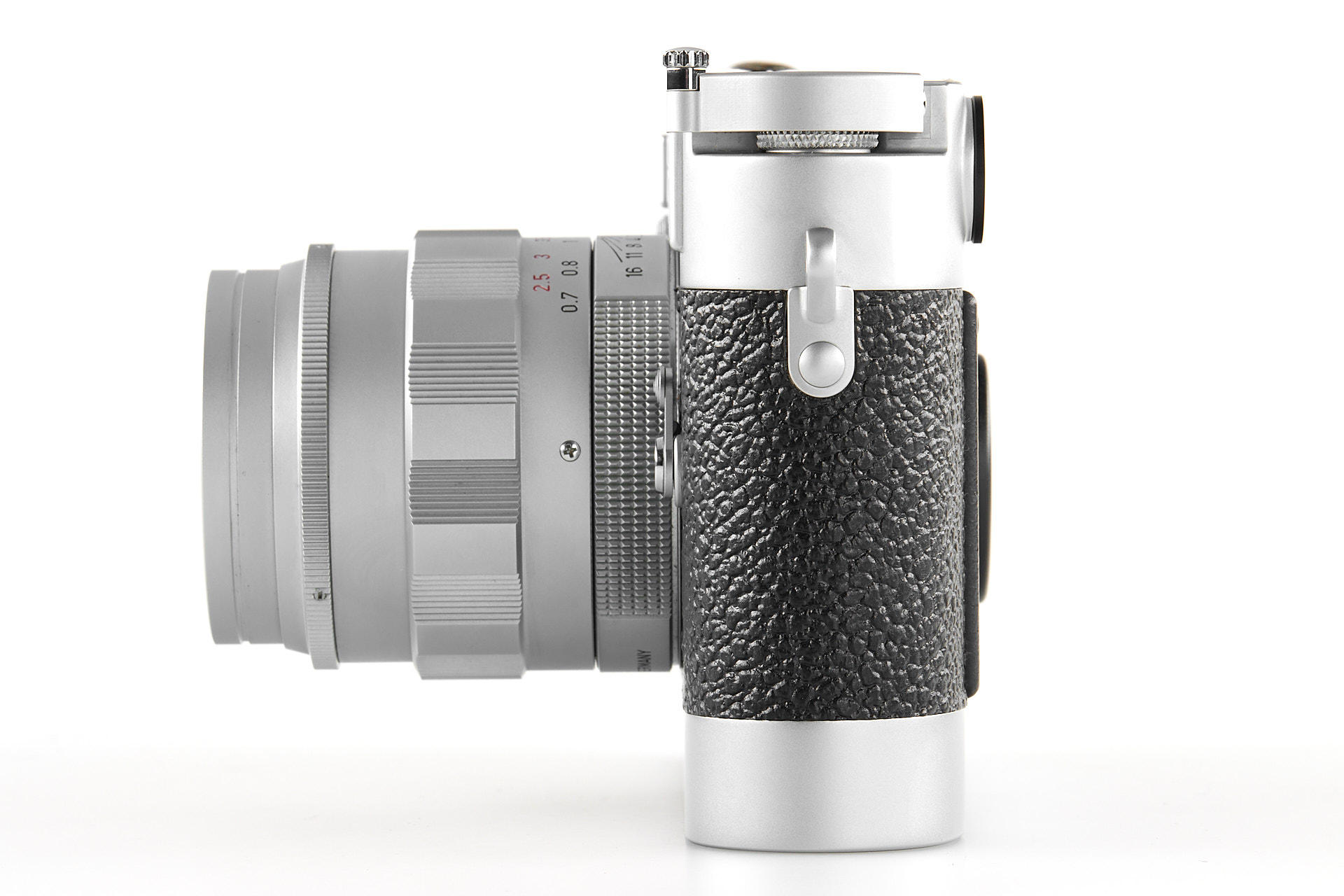 The Leica MP3 is a close reproduction of the original Leica MP from the 1950s and 1960s. Only the front battery cover and the back adjusting dial for film speed indicate that the MP3 body is based upon the M6. The MP3 has the raised viewfinder window frame, extended strap lugs, and an external frame counter. The offered example is in beautiful, unused condition, with body no.3026741, Leicavit MP no.00154, Summilux-M 1.4/50mm ASPH. no.3990330, hood, two caps, normal base plate, UV filter, special wooden presentation box