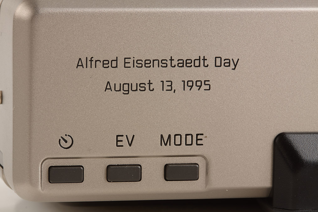 Minilux gifted by Leica to Alfred Eisenstaedt, engraved 'Alfred Eisenstaedt Day August 13, 1995', complete and near mint with strap, case, maker's boxes, papers - from the estate of Alfred Eisenstaedt, with a documentation relative to the transfer of the engraved Minilux to Eisenstaedt by Leica.