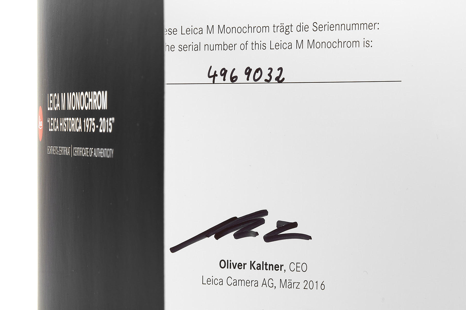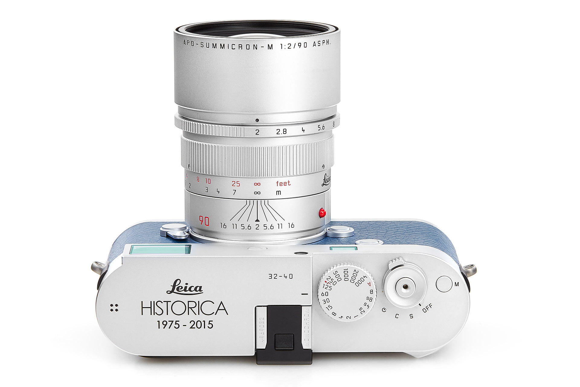 from a rare edition of 40 cameras, issued to commemorate 40 years of Leica Historica (1975-2015), in mint, unused condition, special number 32-40, with matching special edition Apo-Summicron-M ASPH 2/90mm 11694 no.4969032, everything in maker's boxes with all papers and accessories