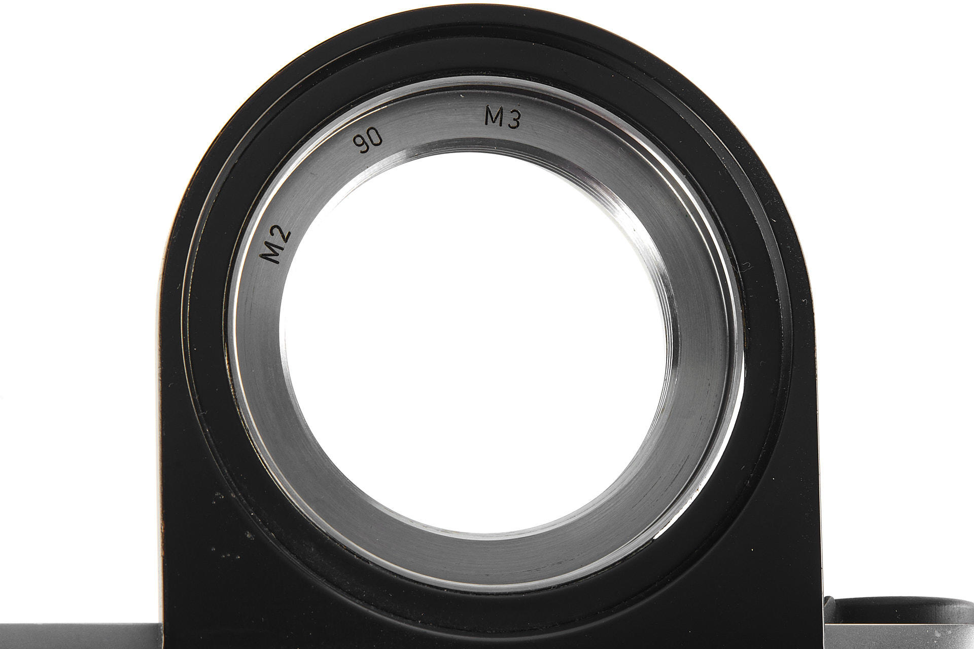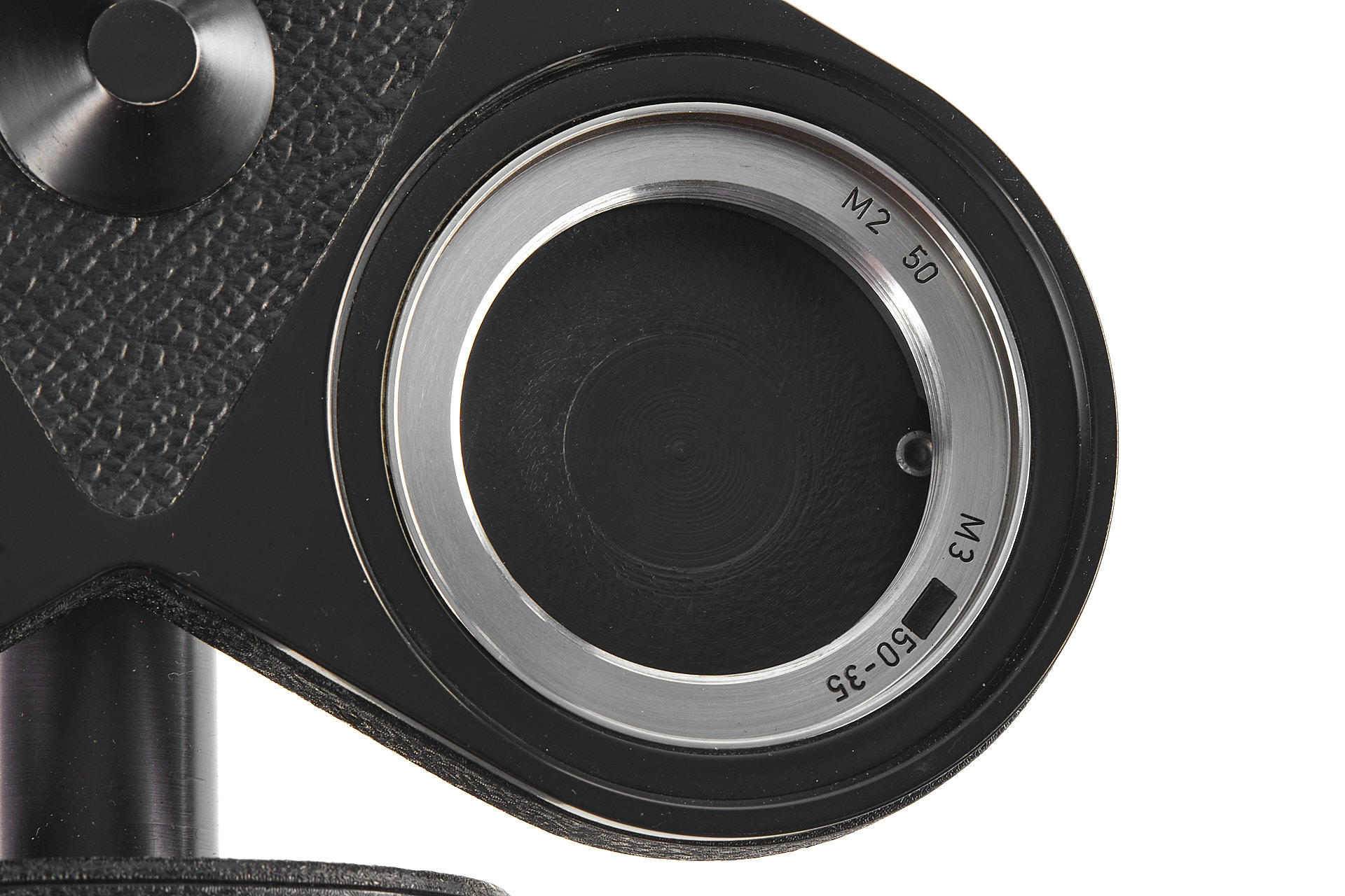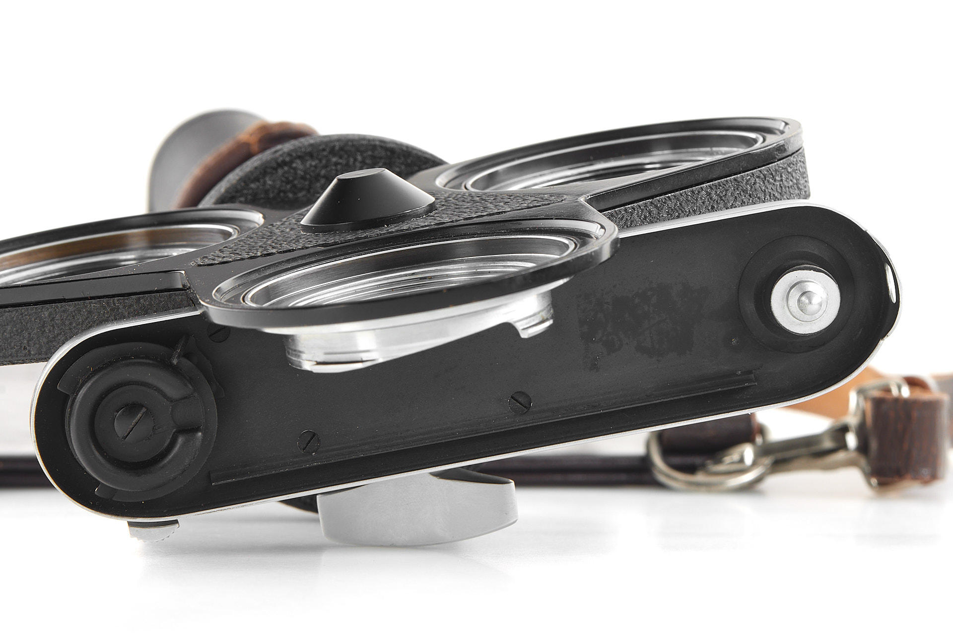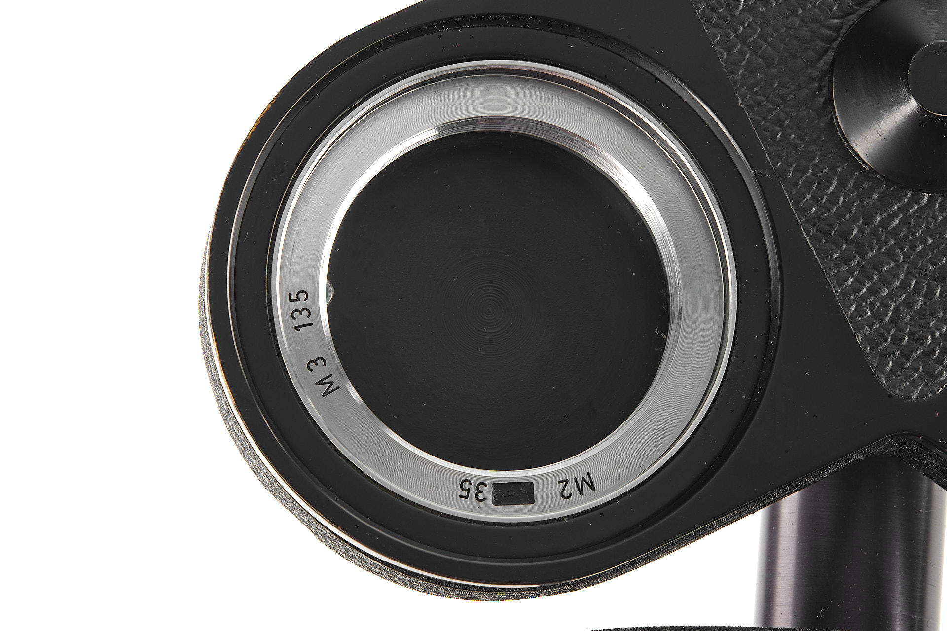 Rare lens turret OROLF for M2 with 3 lenses (total production only approx. 200 units) in near mint condition, with very rare chest tripod, extendable height, tilting rail, mounted on leather board with neck strap