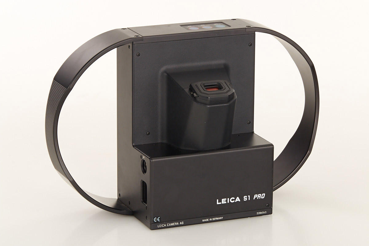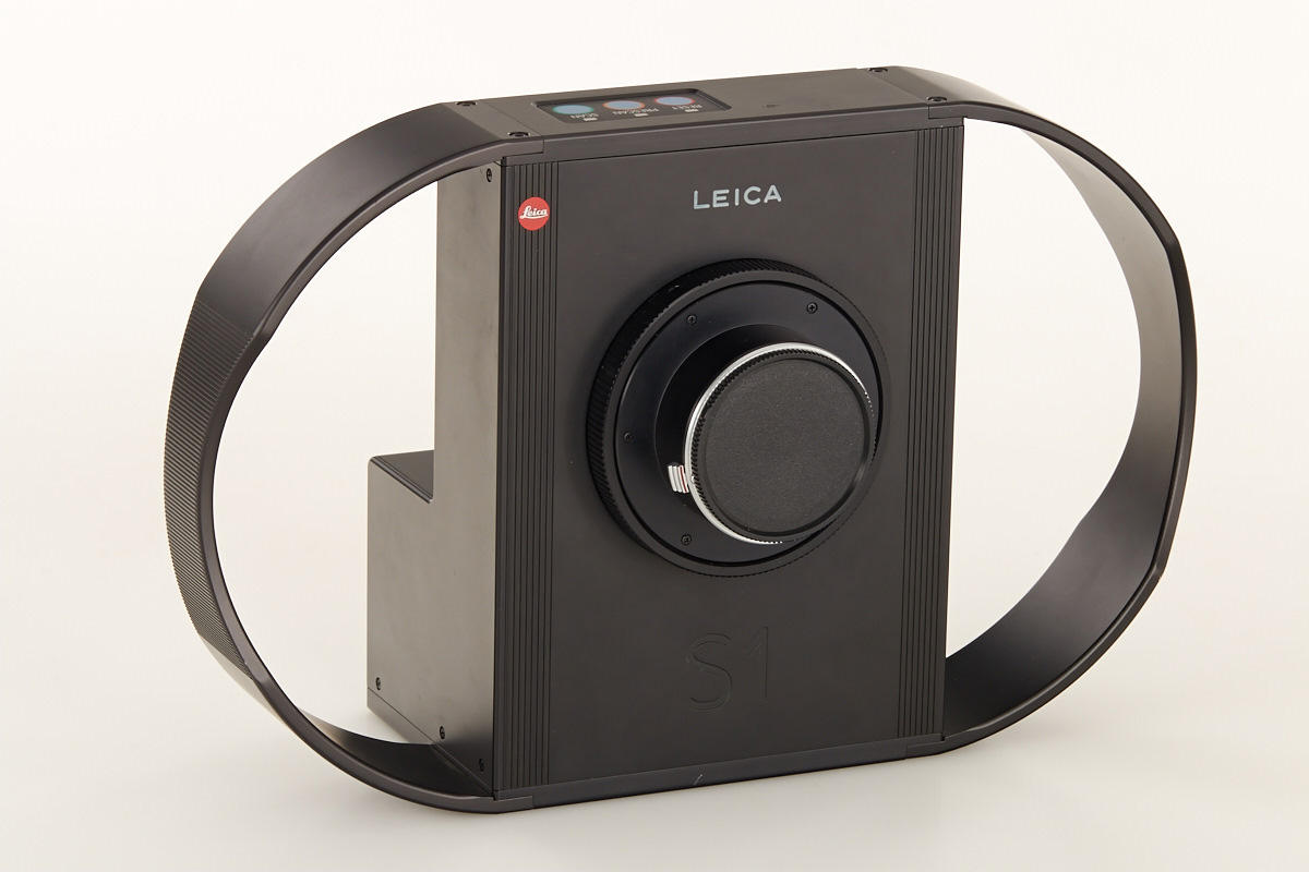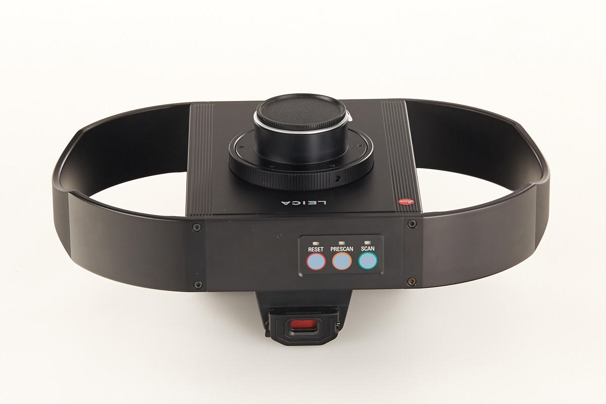 The first digital camera made by Leica. A high resolution scanner camera with CCD chip (resolution of 26 million, 5140 x 5140 pixels and 36 bit depth). Only about 150 camera were sold, the new price was approx. Euro 17000. The camera is in almost mint condition, complete with cap, software, instructions, two cables, power supply, R-Adapter in maker's box. The set includes a Power Mac G4 with installed connection card.