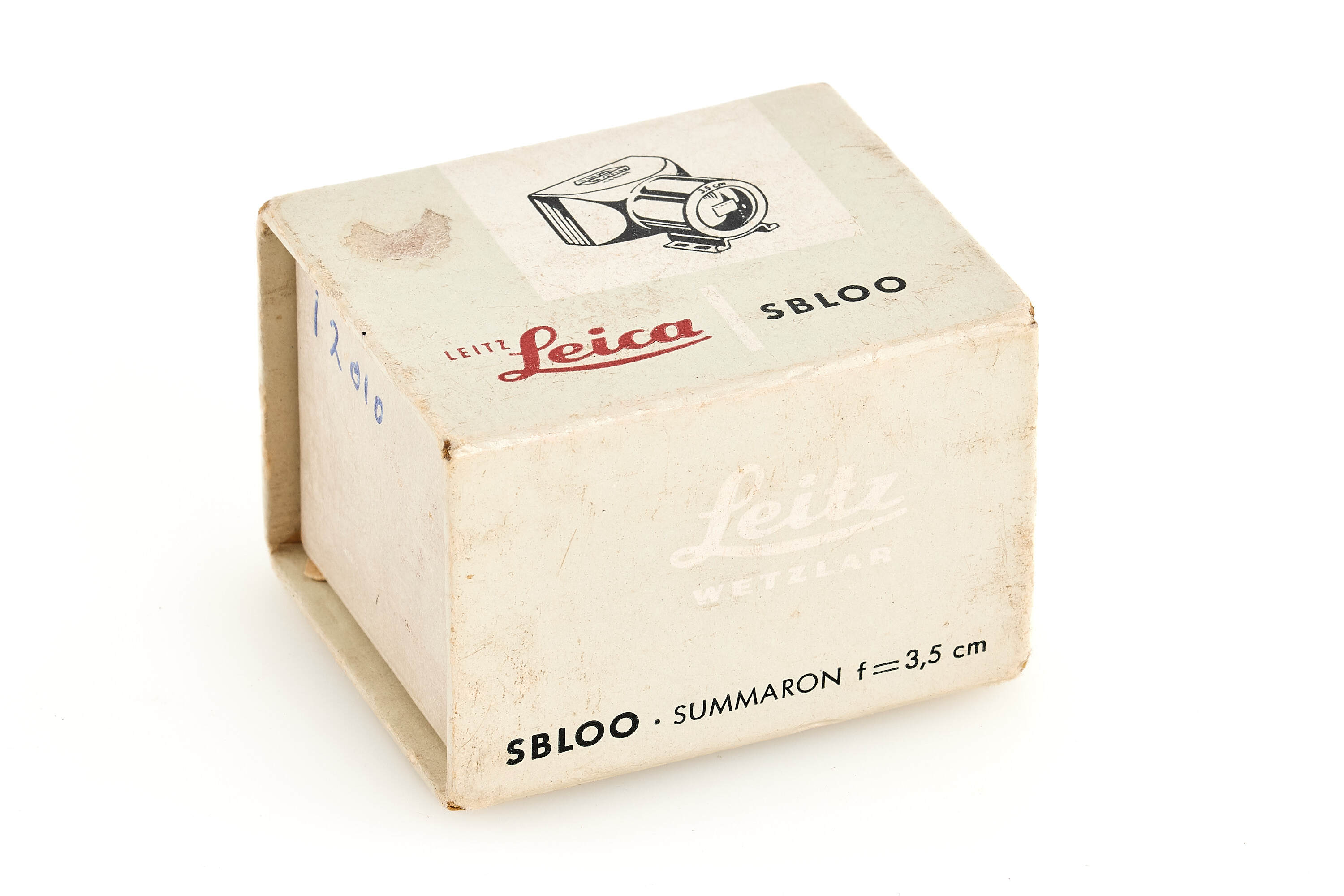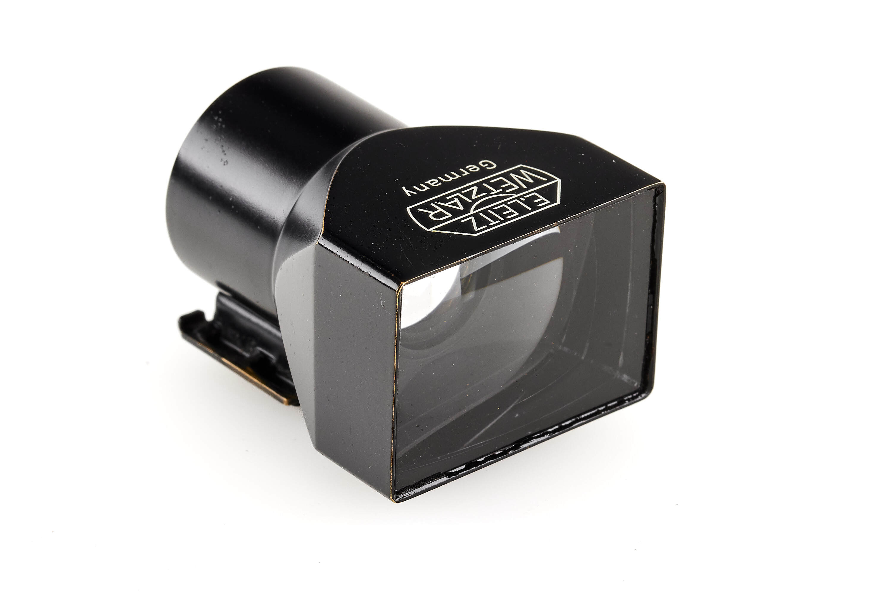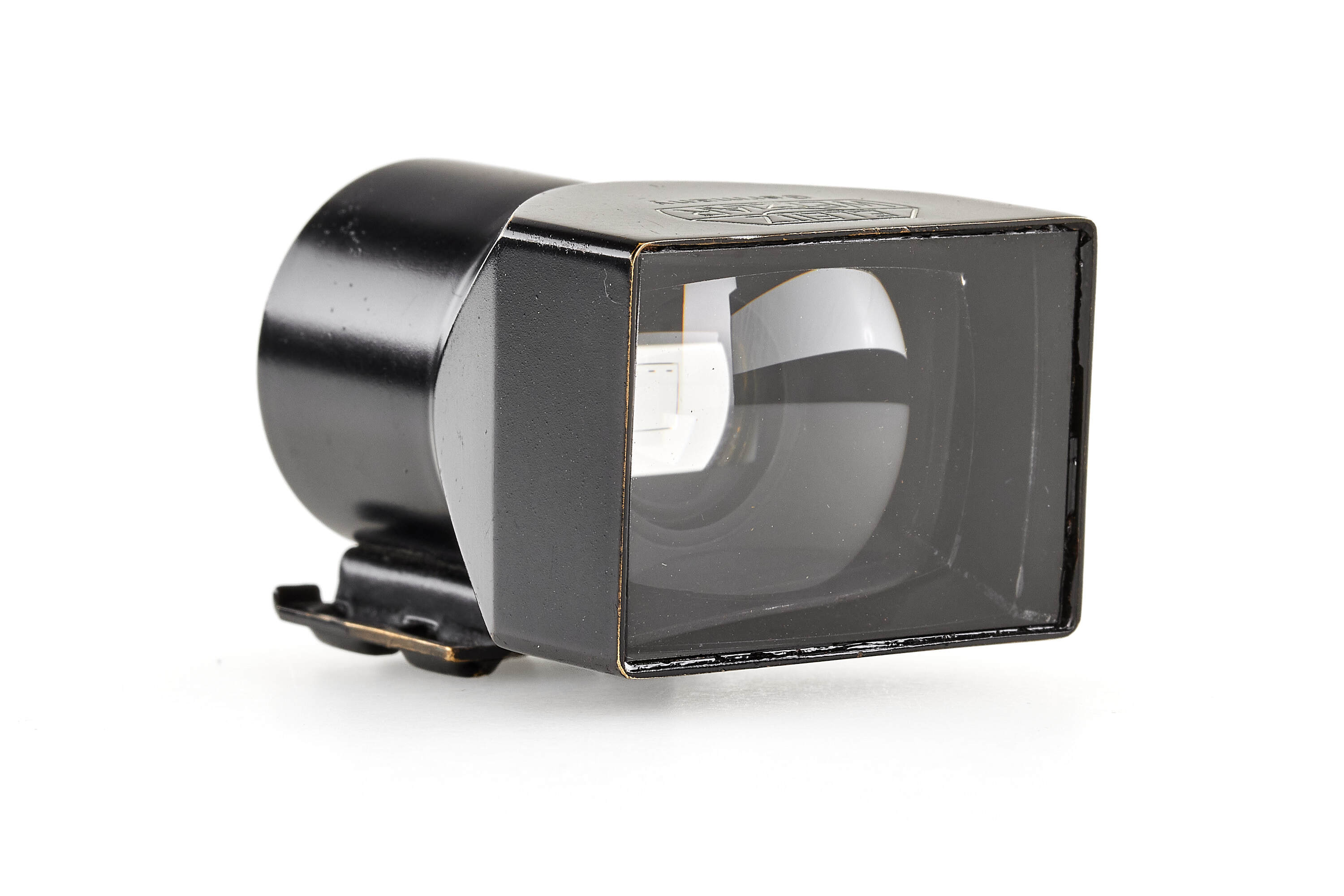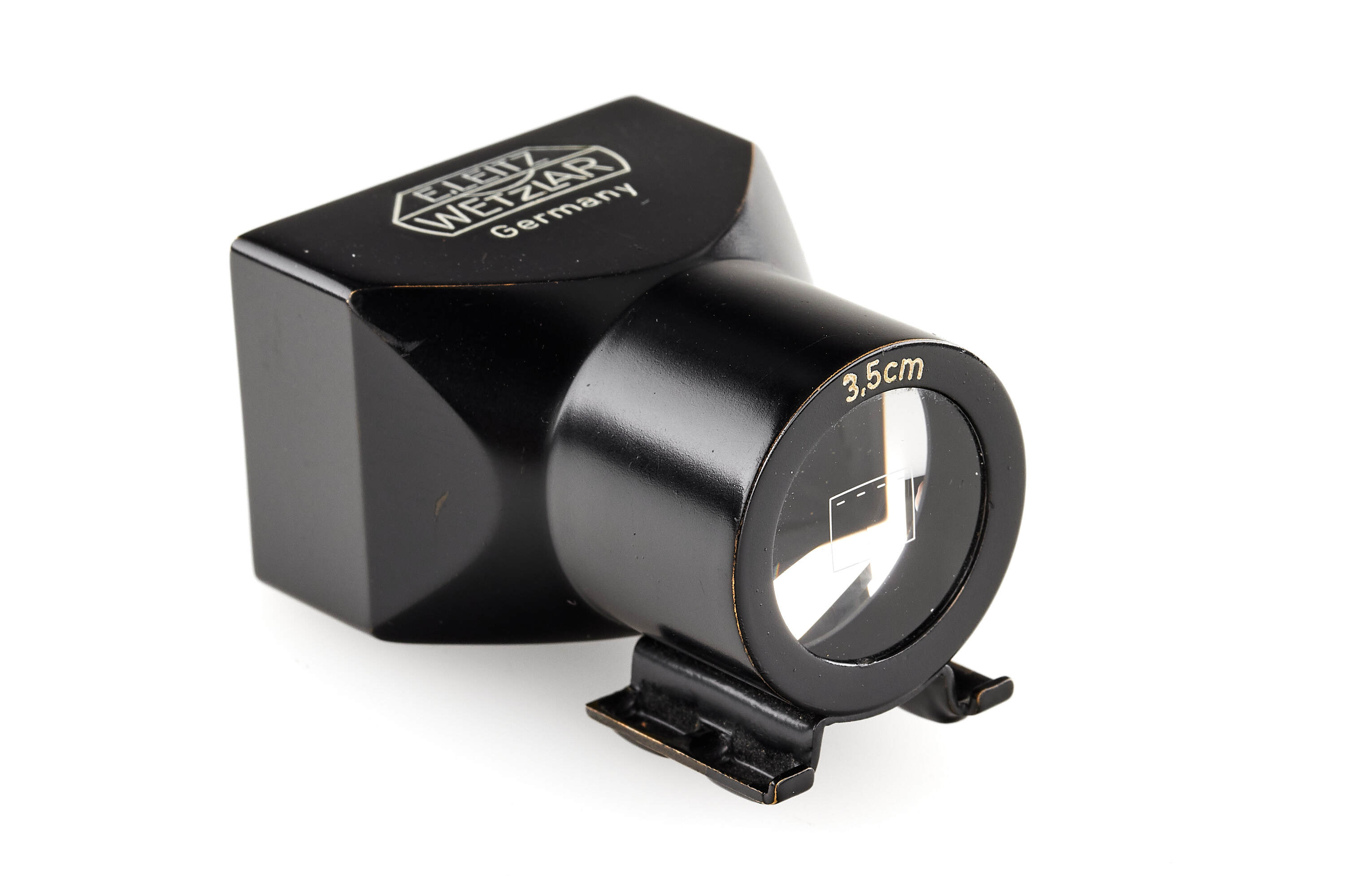 A beautiful and extremely rare original 3.5cm finder in black paint finish, in very good condition, with attractive light patina, clean and clear optics, a matching accessory for the early black paint Summicron 35mm lenses, with maker's box.