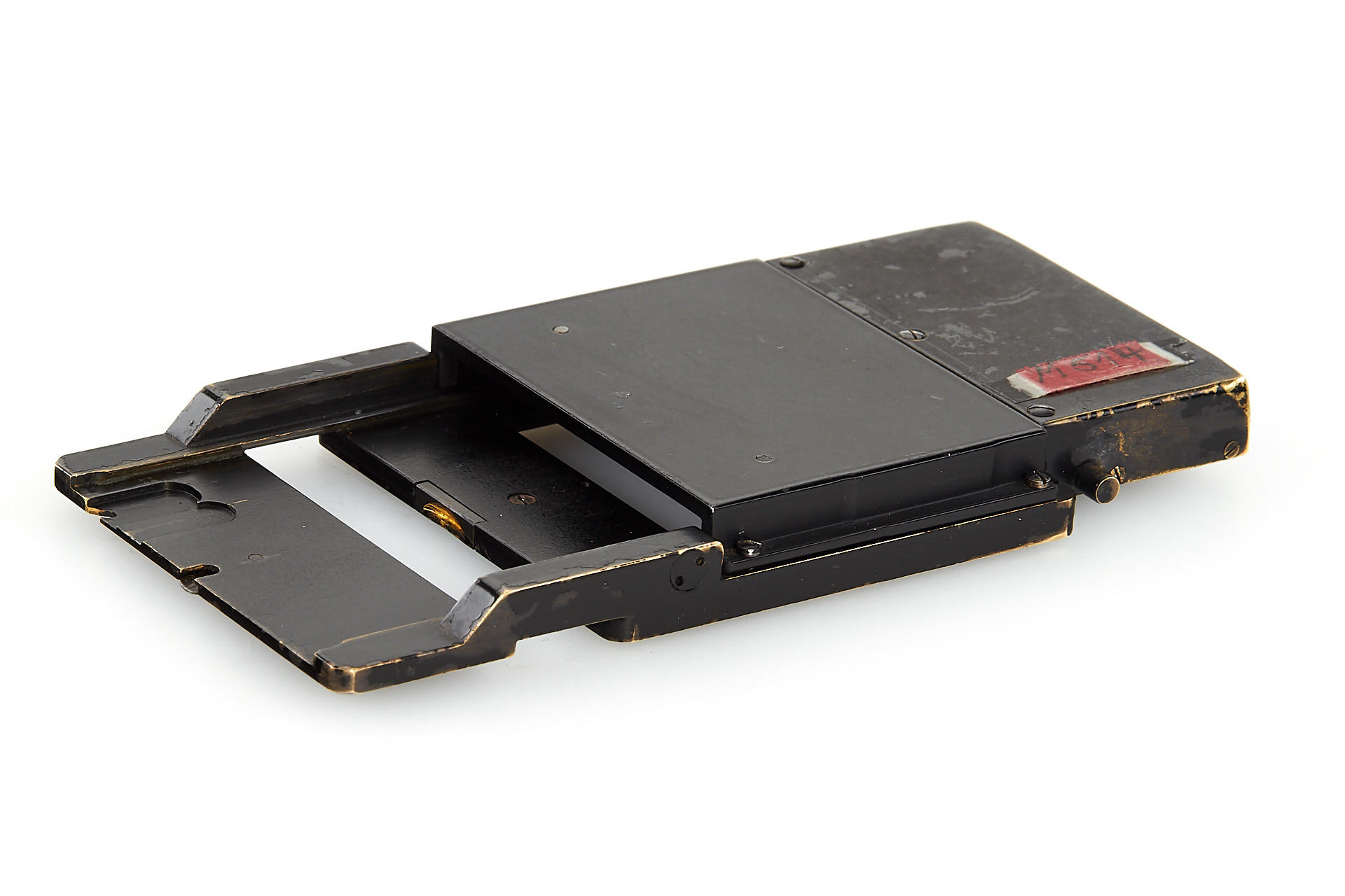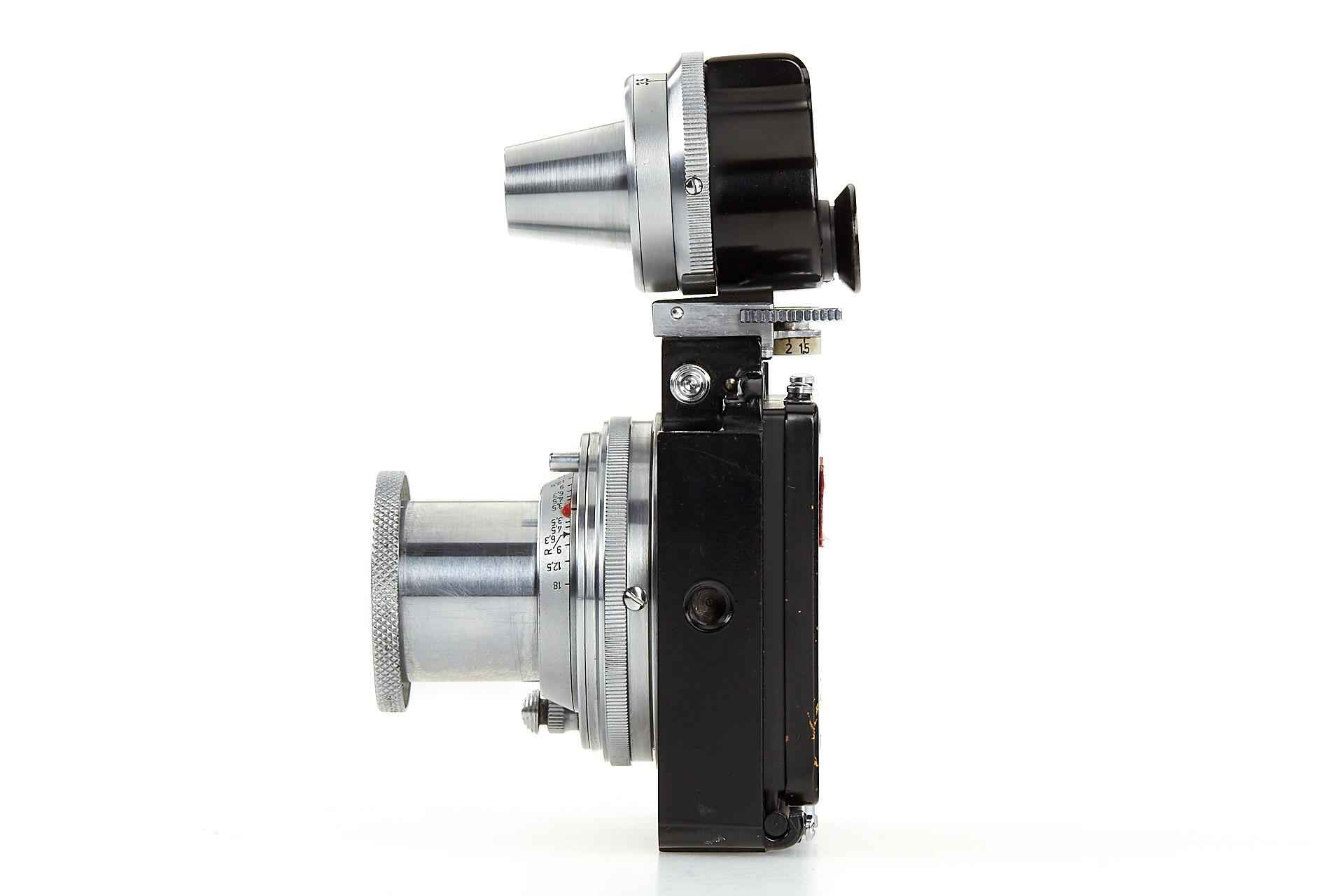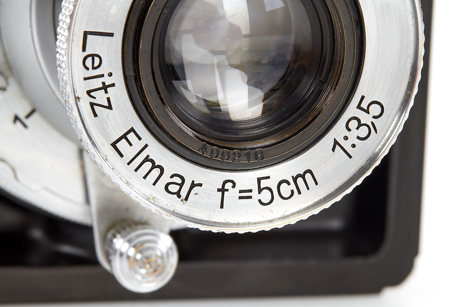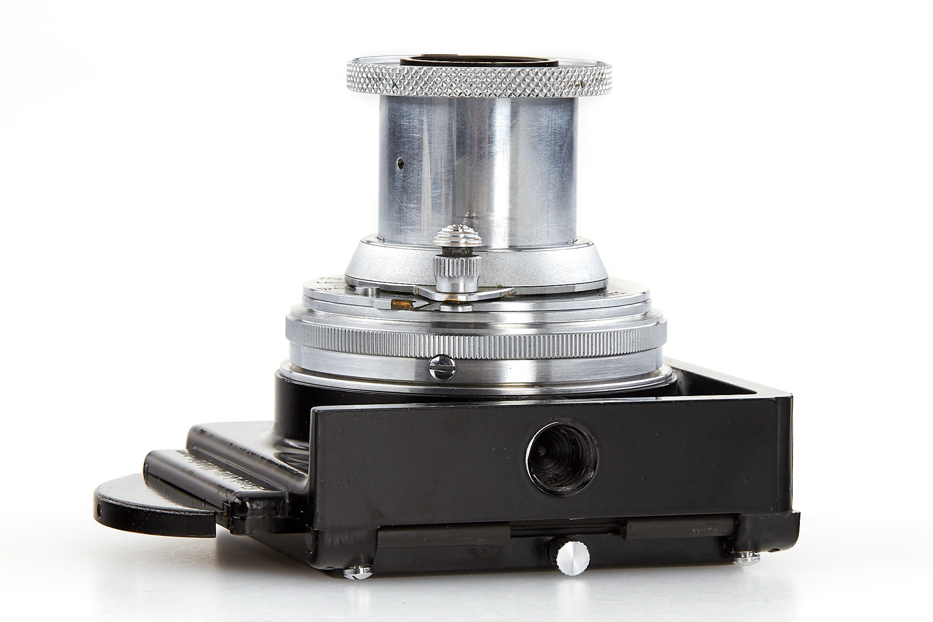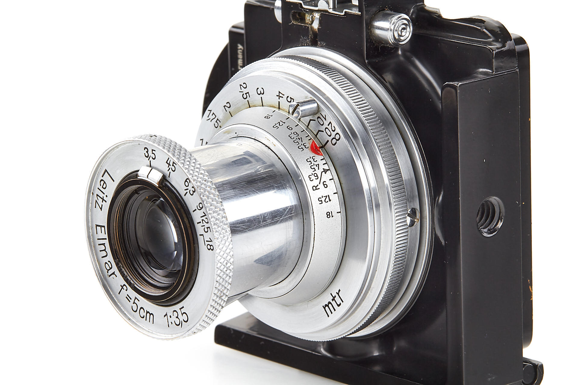 a unique square single exposure housing, for 5x5cm single exposures on film sheets, with removable back, dark slider, inclusive special cassette for two 24x36mm exposures on a single glass plate, both the camera housing as well as the cassette with original Leica Museum inventory stickers, with uncoated Elmar 3.5/5cm no.499218, VIOOH finder (unnumbered), and a TOOUG tripod, this camera is pictured in Wilhelm Albert 'Geburtstage der Leitz-Foto-Konstruktionen ab1927' on page 43+44