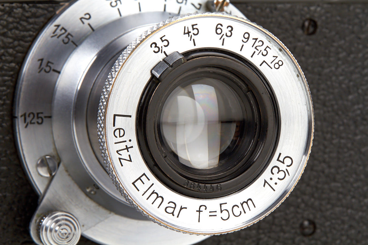 in beautiful, near mint condition, with chrome Elmar 3.5/5cm no.364446, matching chrome lens cap