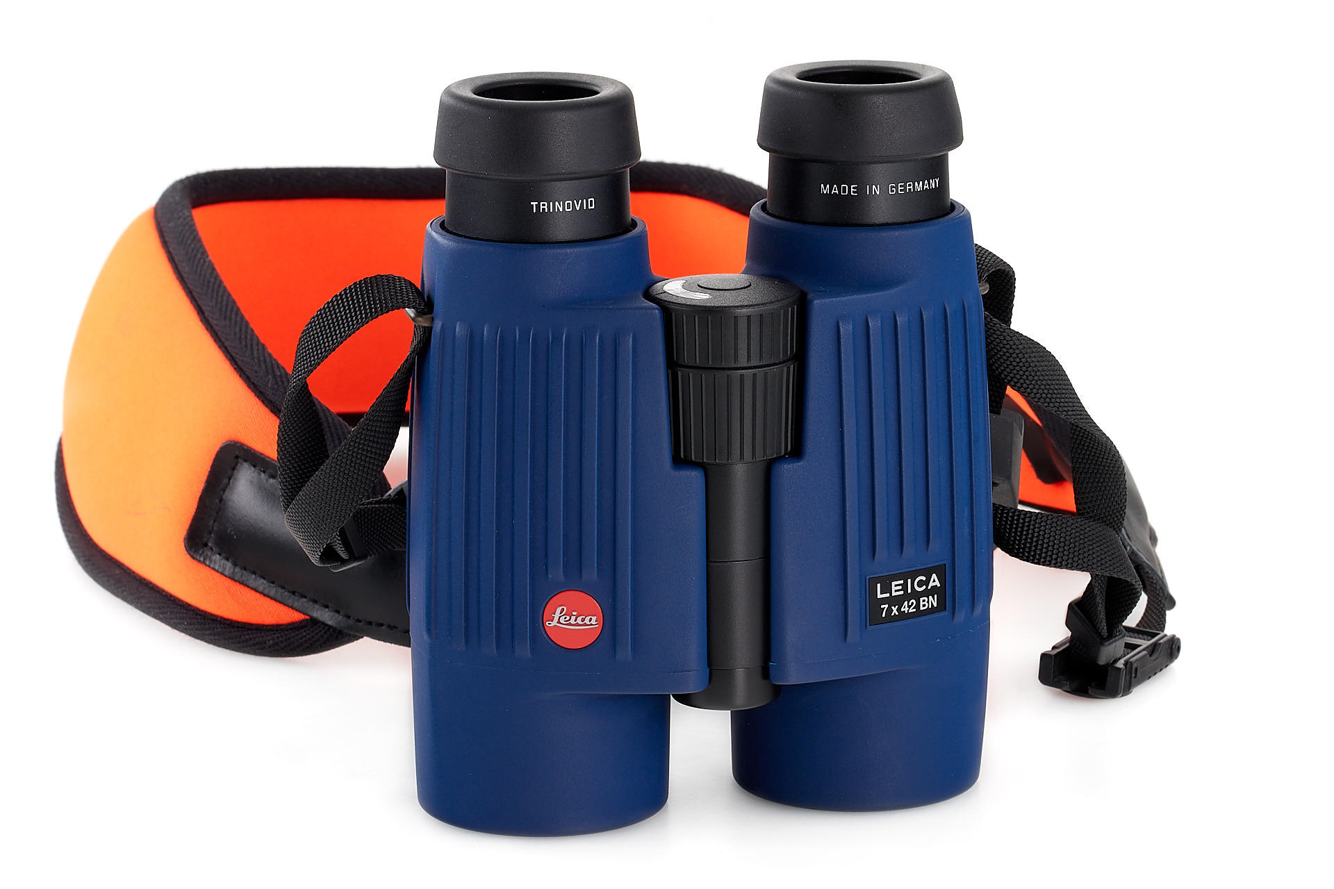 rare special edition Trinovid rubberized in blue, with special hi vis strap, cap, blue cordura case and instructions, in near-mint condition with perfectly clean optics