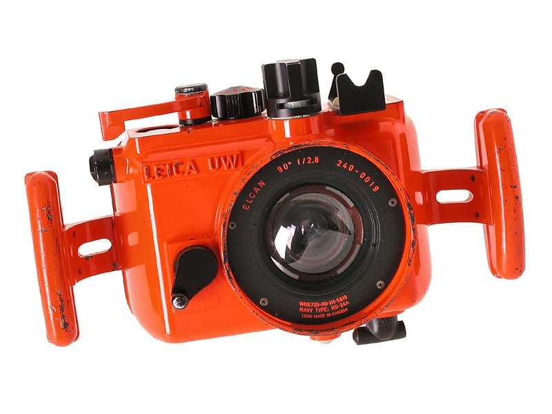 Extrem seltenes, rot lackiertes Unterwassergehäuse für die US Armee, Elcan 90°/2,8, dabei die original gelieferte MD-A in sehr gutem Zustand