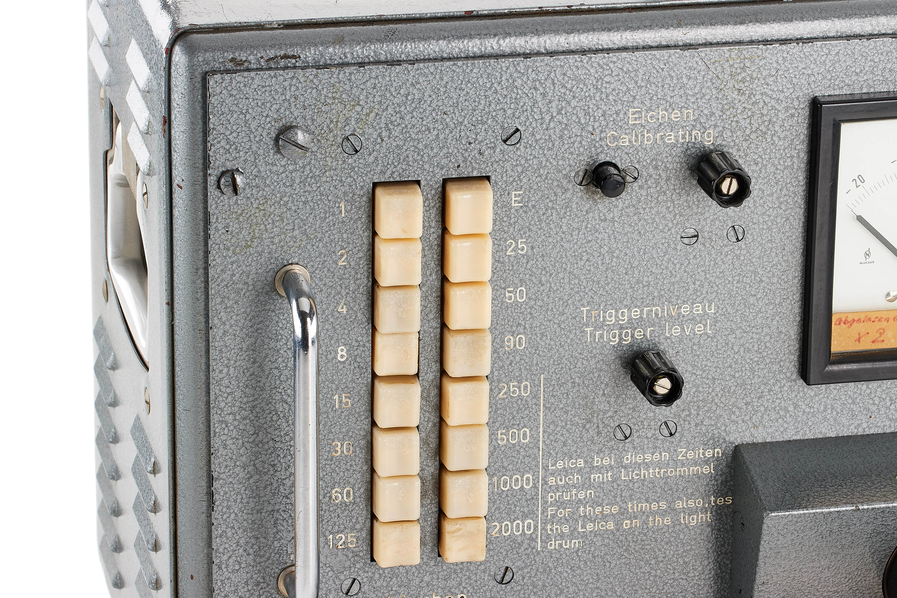 An original vintage shutter tester for screw-mount cameras, used by Leica during final inspection at the factory as well as in authorised repair workshops. A very decorative piece, preserved in excellent condition.
