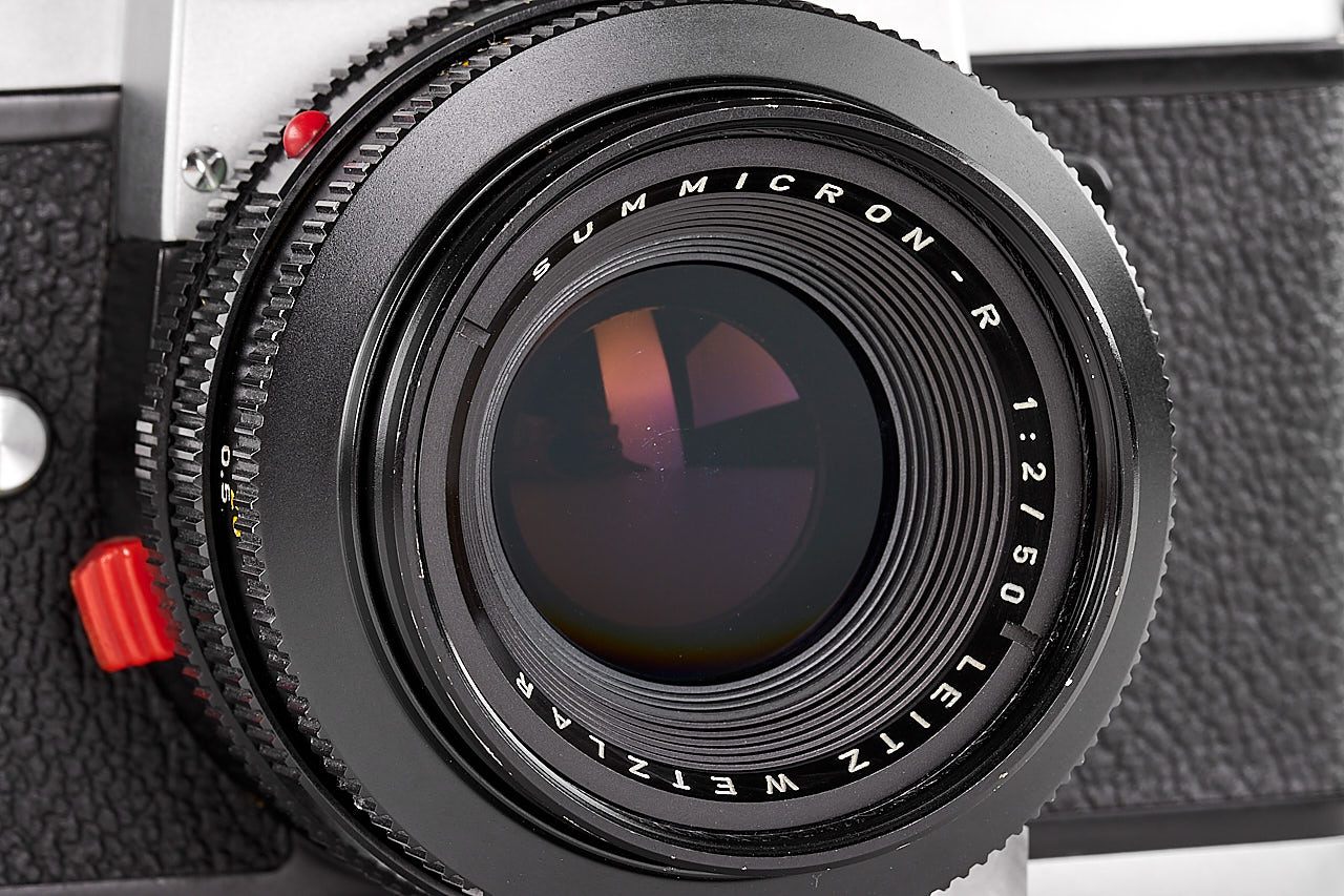 Original dummy camera made for demonstration purposes, in near-mint condition, with matching dummy Summicron-R 2/50mm 2-cam, both camera and lens without serial number.