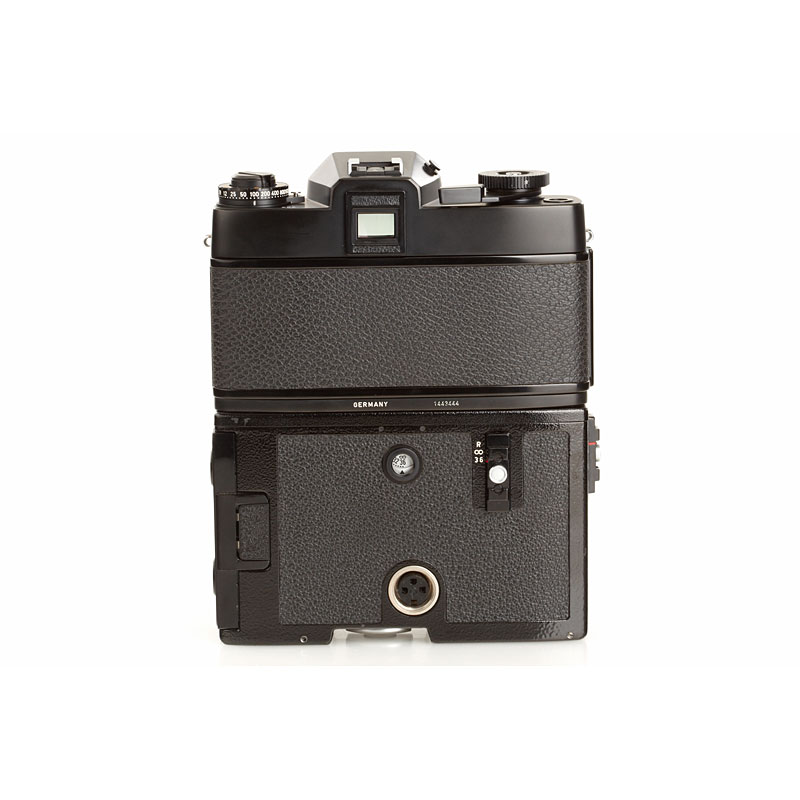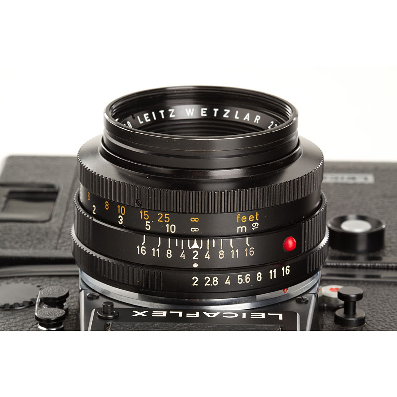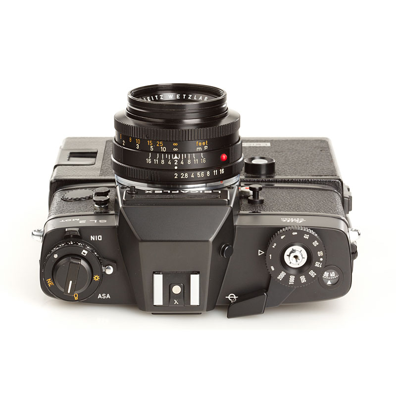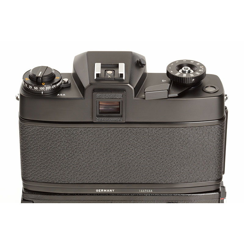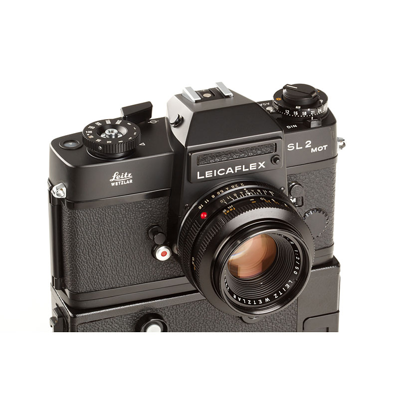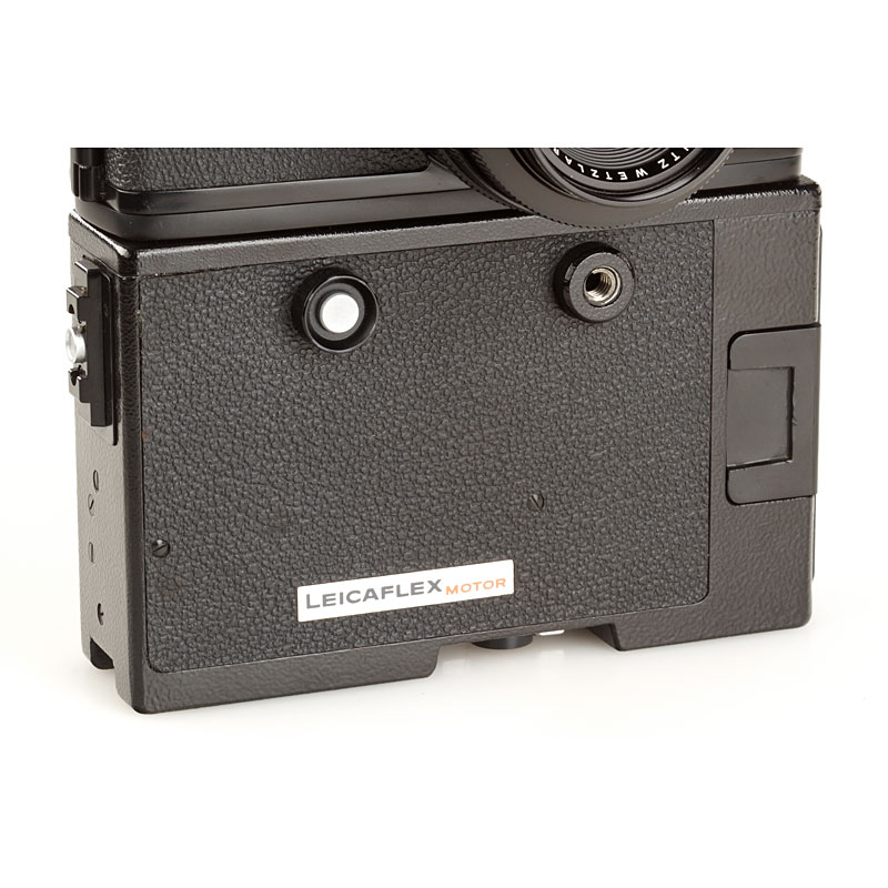 very late camera from the last batch in 1976, in almost mint condition with matching Leicaflex motor-drive no.1828 and mint 2-cam Summicron 2/50mm no.2352727 (cap, hood, filter)