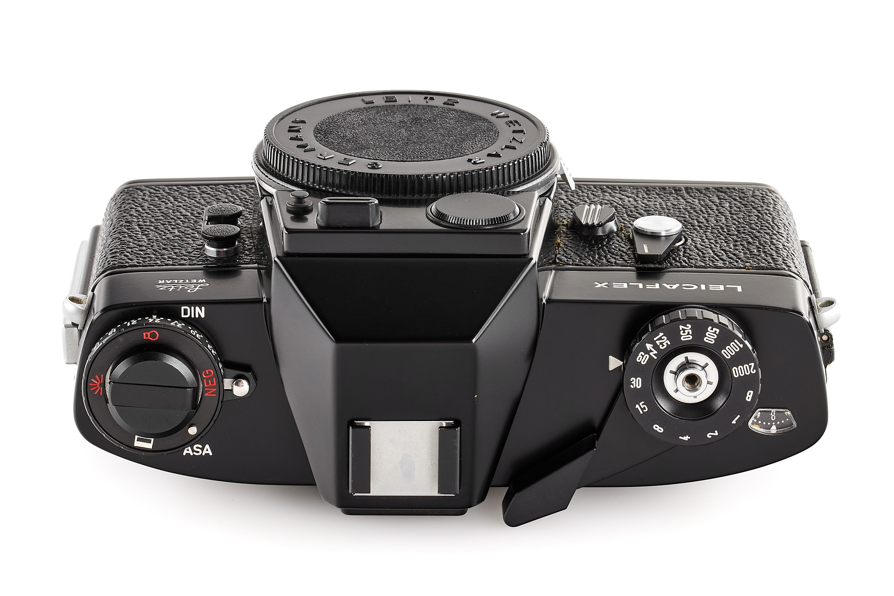 Very nice and uncommon black paint, early first version with a 'pie' shaped frame counter, in almost mint condition and working order, clean and clear prism, with body cap, delivered on 10.10.1965 to Swiss Leica dealer Petraglio.