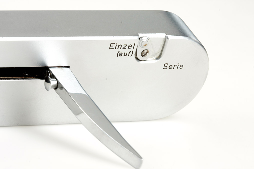 pre-production rapid winder for IIIf, IIIg with switch engraved: 'Einzel (auf), Serie'