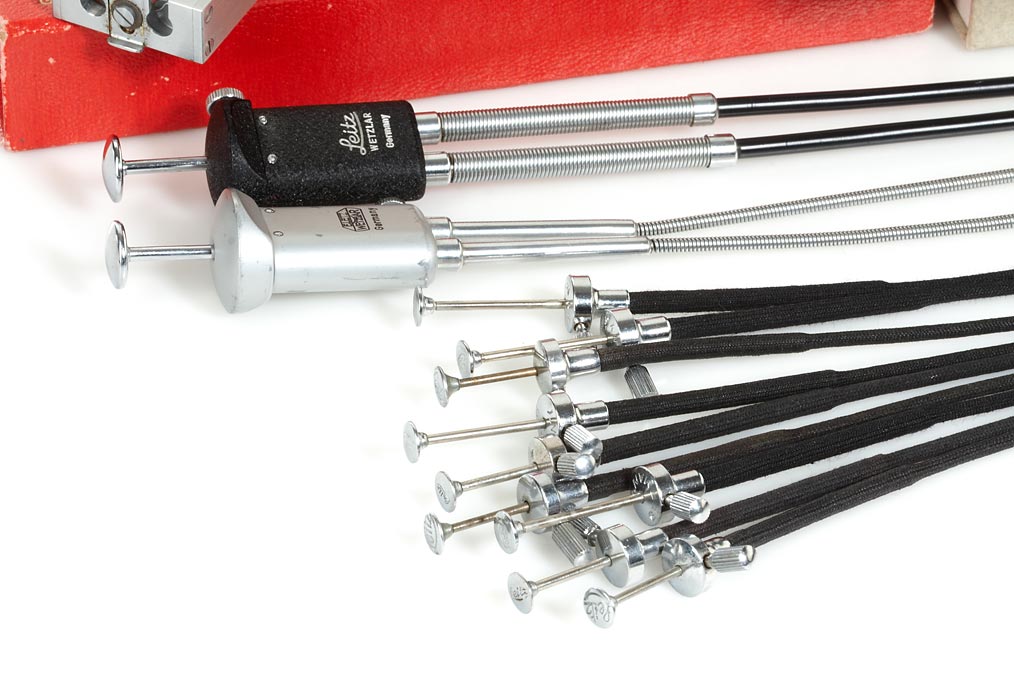 9x FINOT 10" cable release (some with maker's boxes), 2x OPKOM 20" cable release, early OZWTO double cable release in maker's box, later OZWTO, 16494 double cable release in maker's box, double cable release adapter - some rare and with different engravings (15)