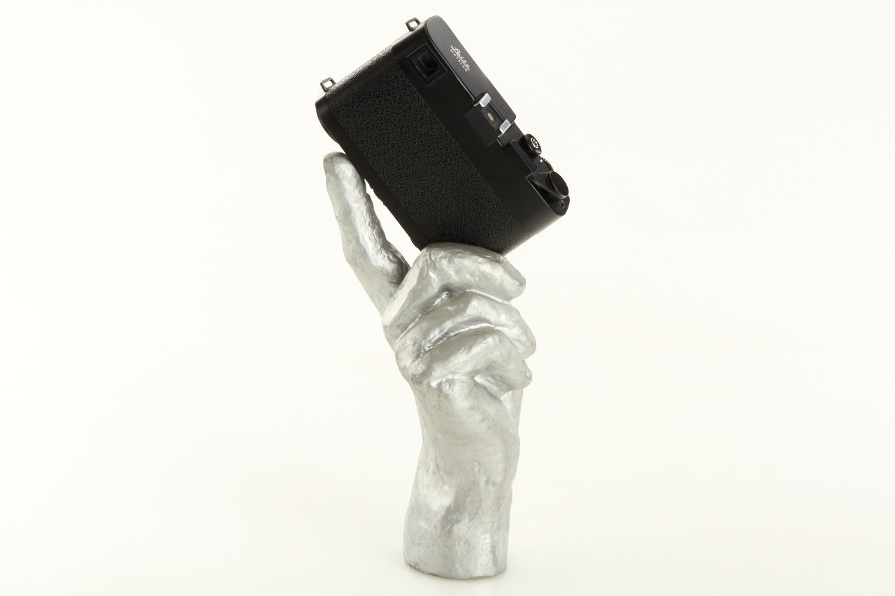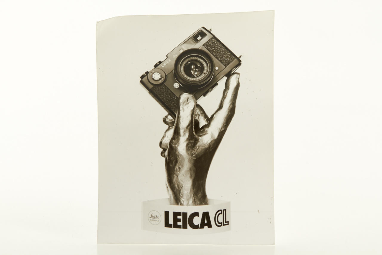 original advertising silver display hand (inscription: Leitz WETZLAR and EIGENTUM DER ERNST LEITZ GMBH WETZLAR MADE W GERMANY) in beautiful condition, with dummy CL body no.1333363