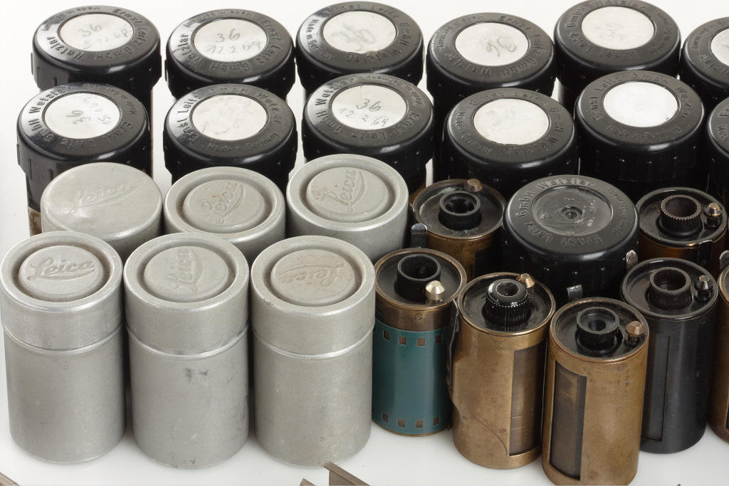 33 spools (21 in containers, some rare) for screw mount cameras, black/nickel ASPUL film winder, black/chrome AFLOO film winder, five different types of ABLON film trimming templates, two different ABCOO film cutting blades, AGRIF hand film winder, SPULM spool, KOOBF Leica 250 spool, FHKOO single film holder, FCKOO single film holder, two different NATRA negative viewers in maker's boxes, NAMAS opal glass - very interesting lot (50)