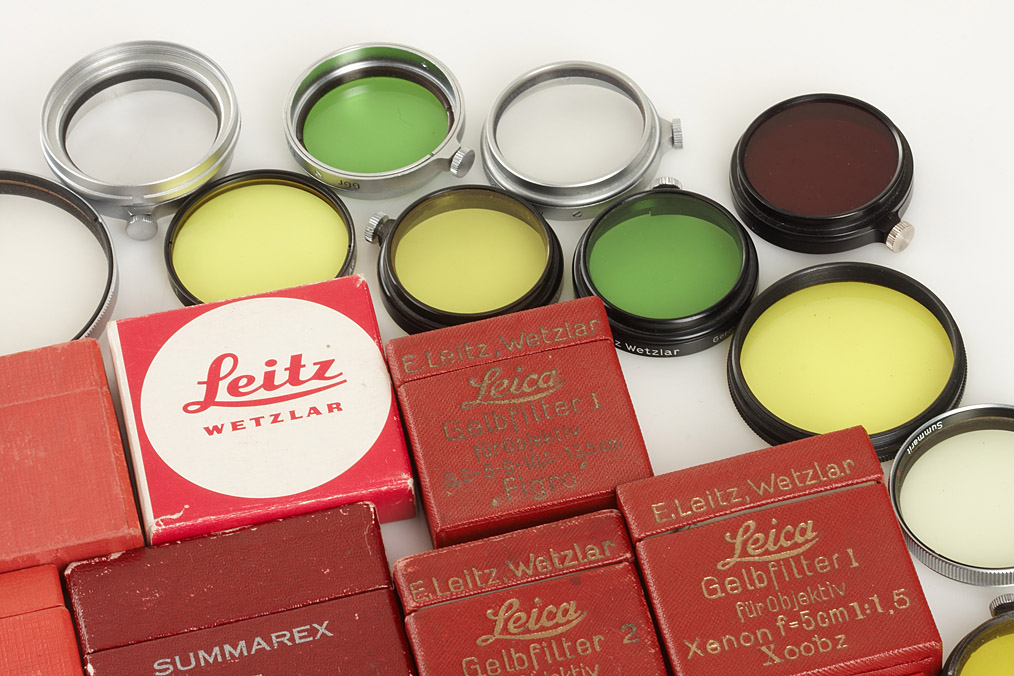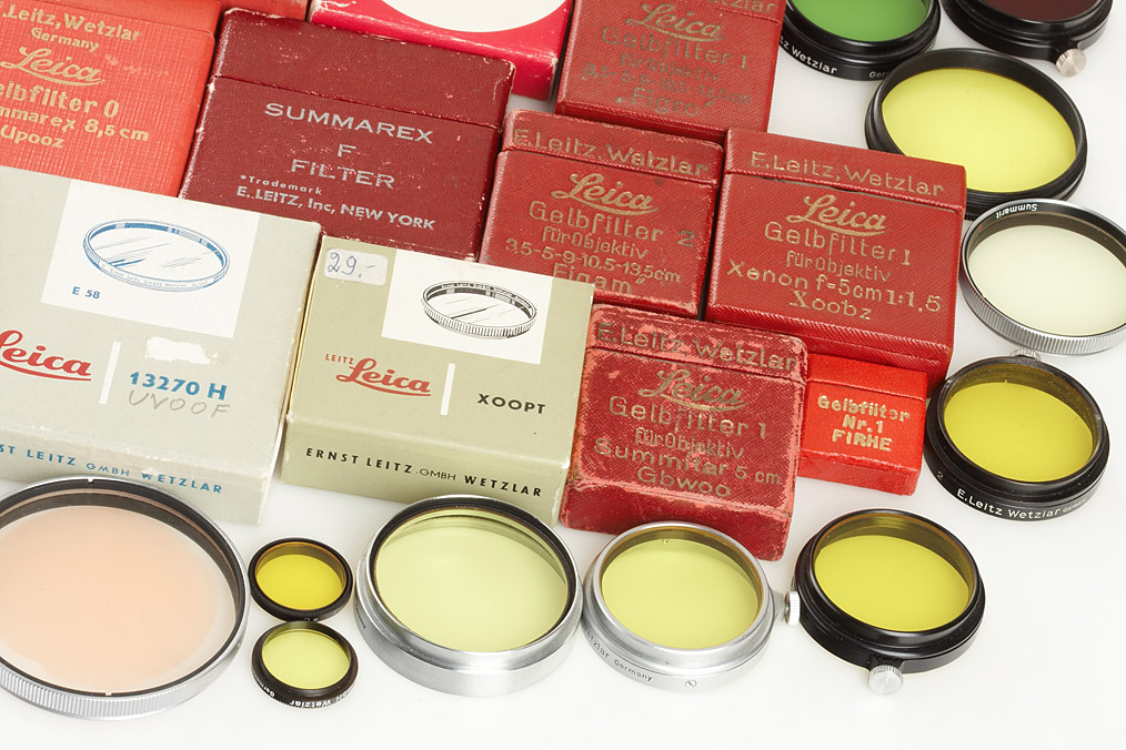 34 filters in different sizes (A36, E39, Summarex filter, etc.), 2x VOOLA aperture ring, some in maker's boxes (34)