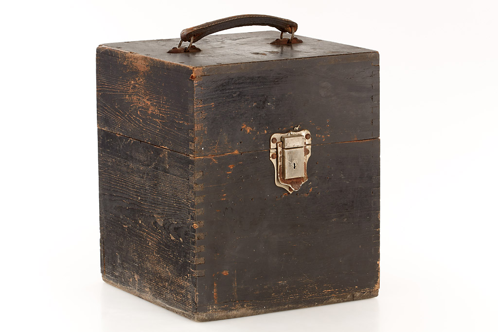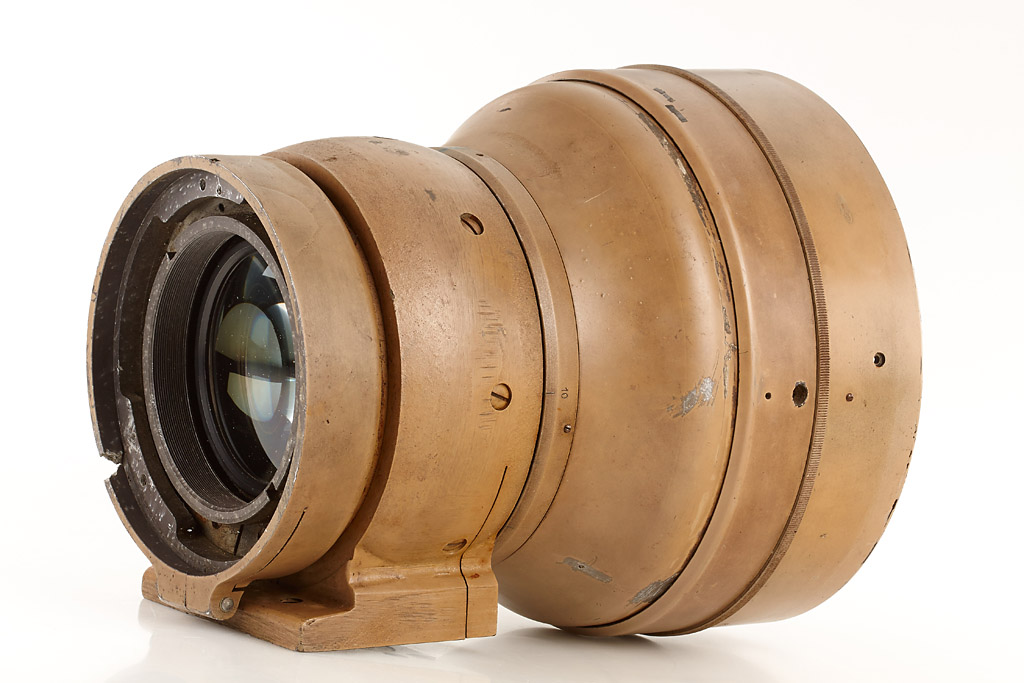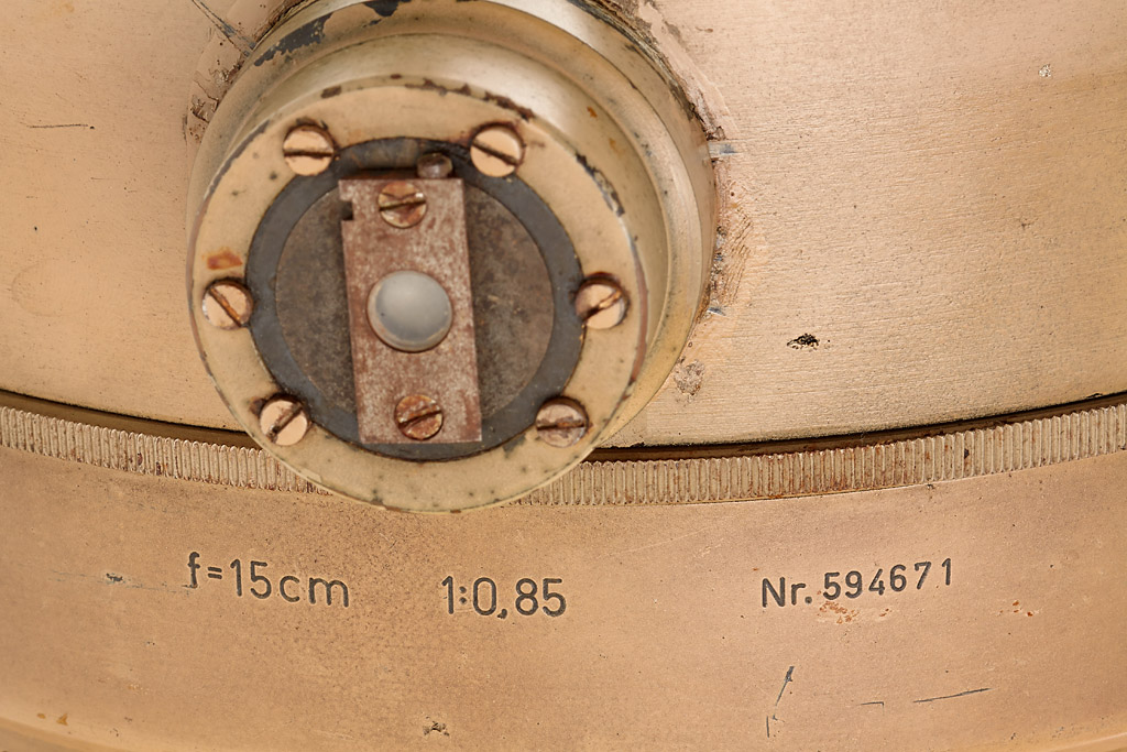 ultra-fast beige painted lens for military use in WWII, original front cap and wooden storage box