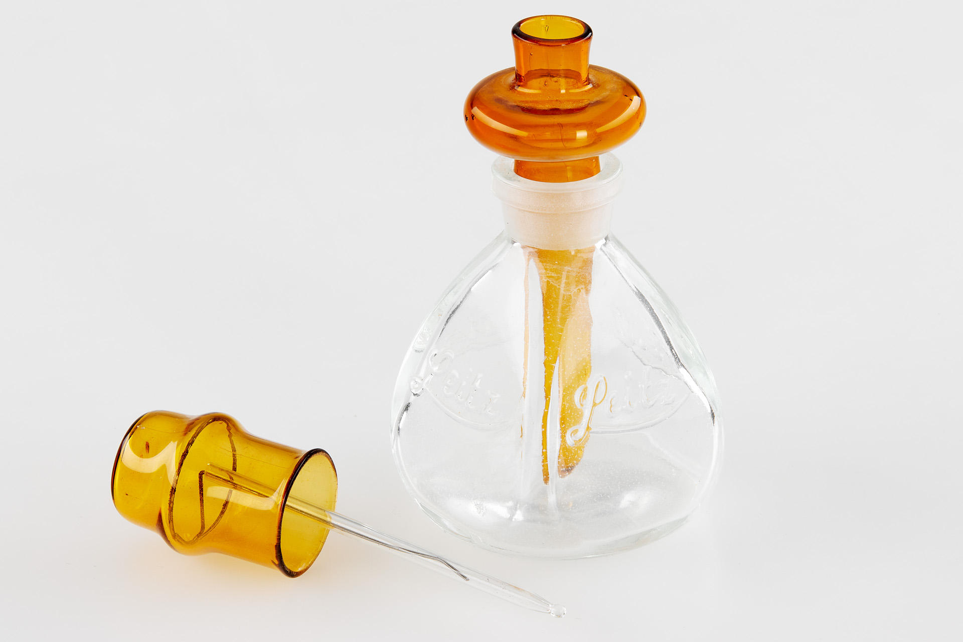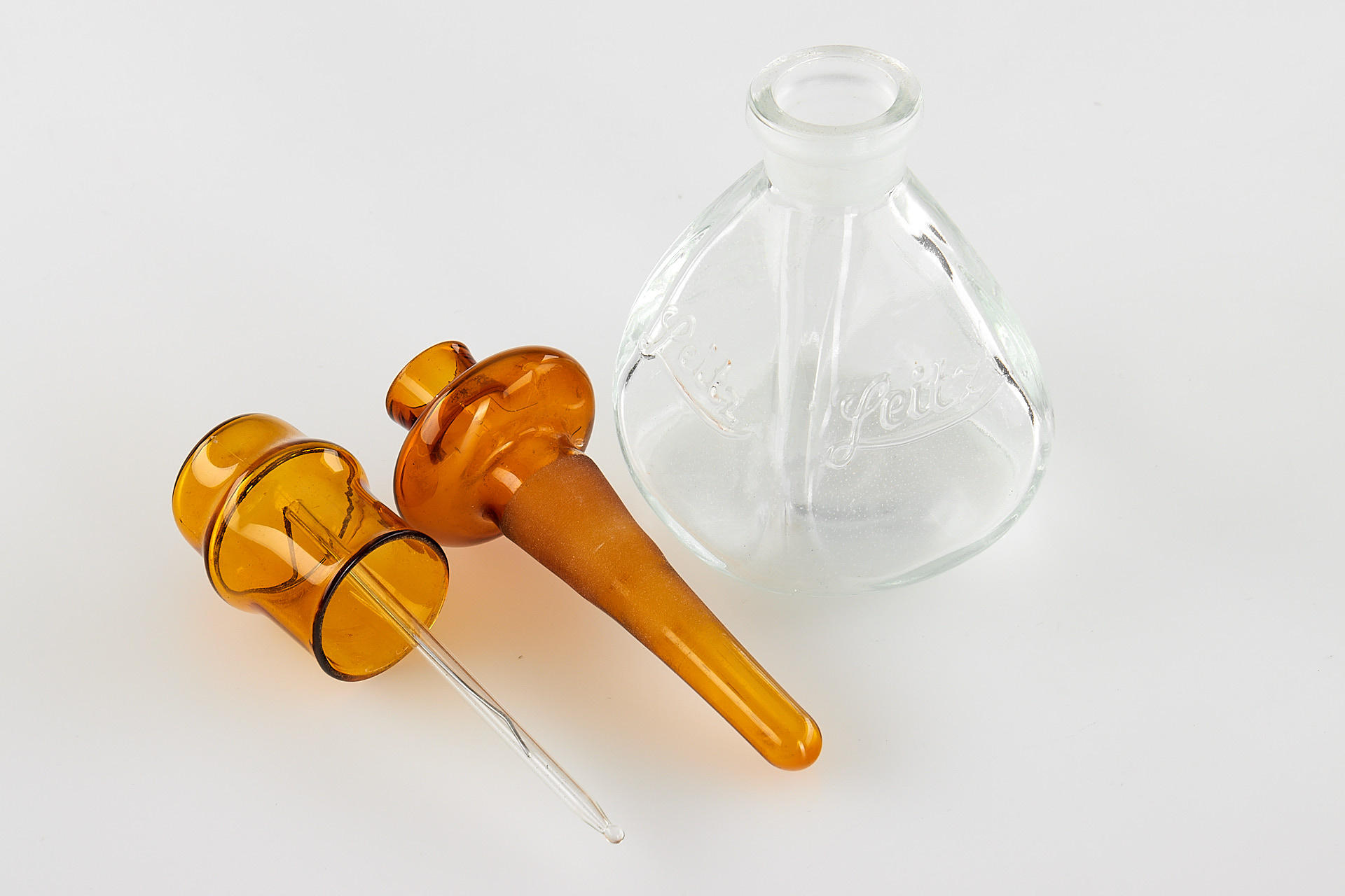 Beautiful and original Leitz laboratory flask with pipette in mint condition, no visible flaws, height c.11cm