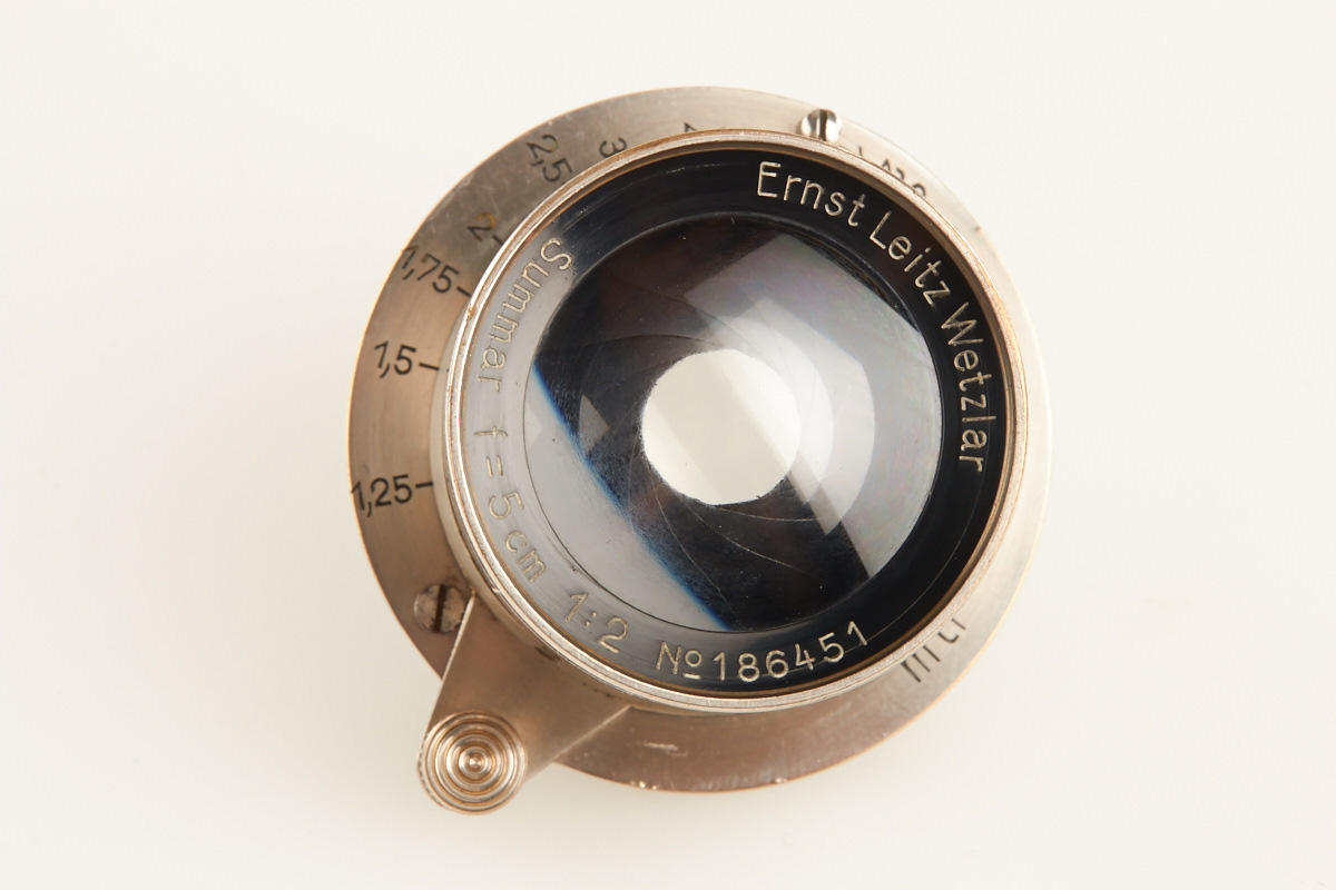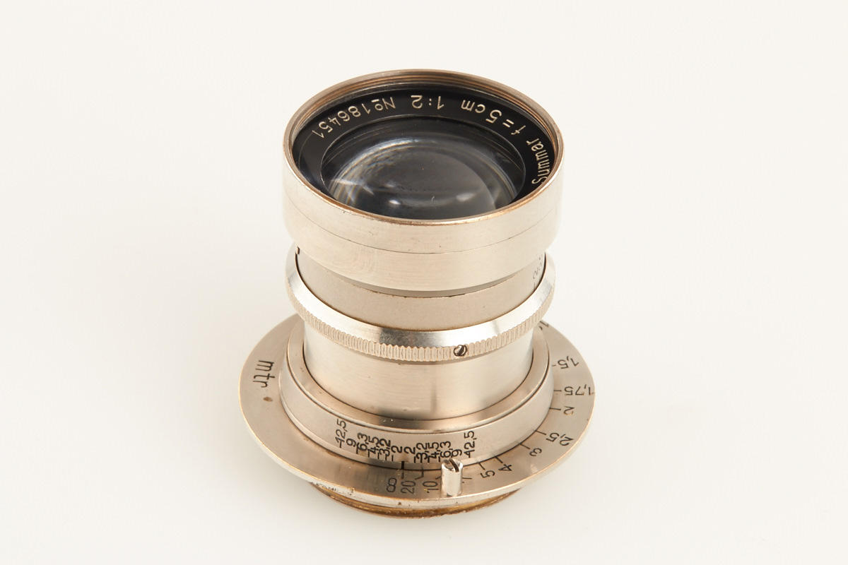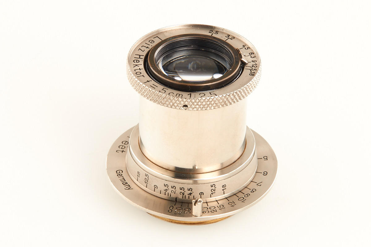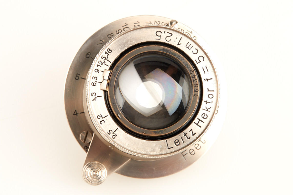 (1) near mint nickel Elmar 3.5/3.5cm no.149858 with both caps in red 'Ekurz' maker's box, black FOOKH hood, (2) coated nickel Elmar 3.5/50mm no.183121, good lenses (both caps), (3) nickel Hektor 2.5/5cm no.168342, very good lenses (rare domed cap, keeper), (4) rare rigid Summar 2/5cm no.186451 in very fine cosmetically condition (cleaning marks on front element), both original caps and red 'Sumus' maker's box (4)