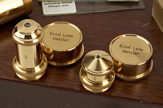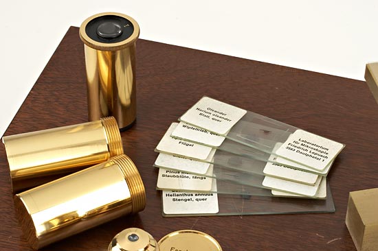 EMO replica of the famous Mikroskop IV from1899, complete set with 3 objectives and slides in wooden box