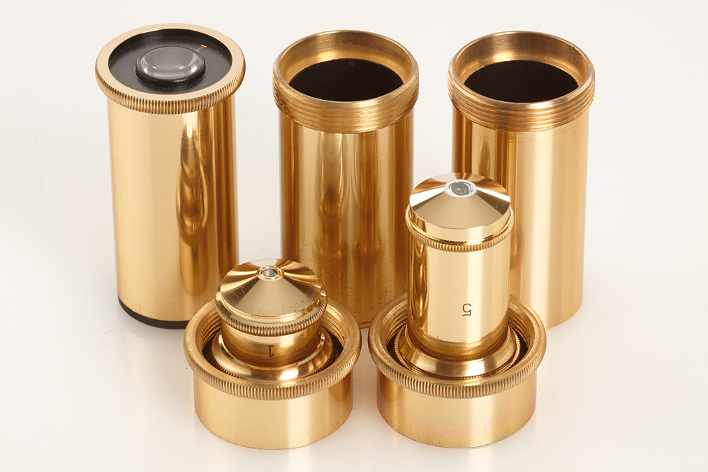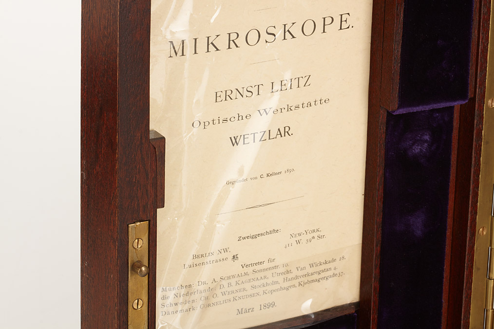 EMO replica of the famous Microscope IV from 1899, complete set with 3 objectives and slides in wooden box