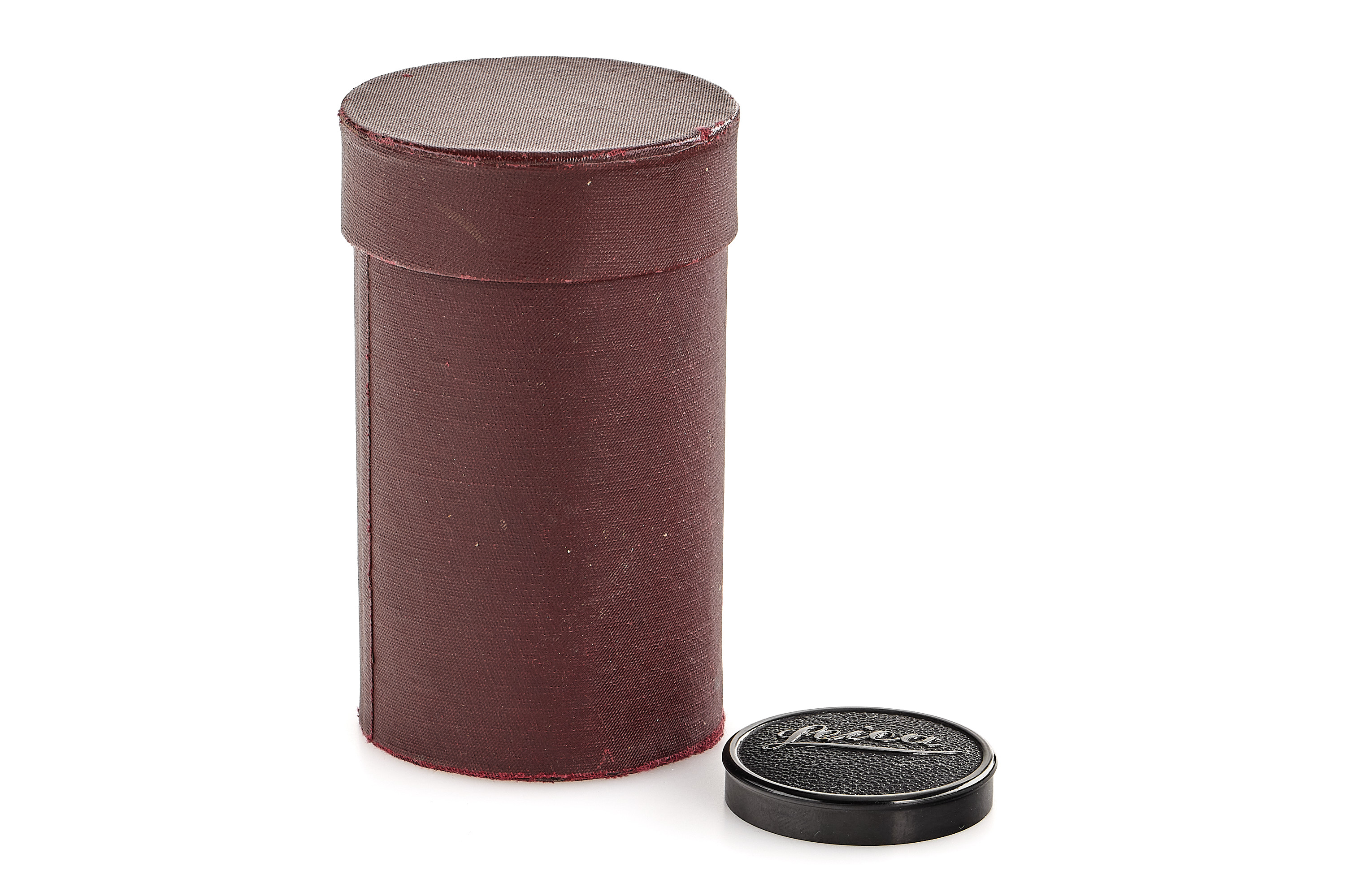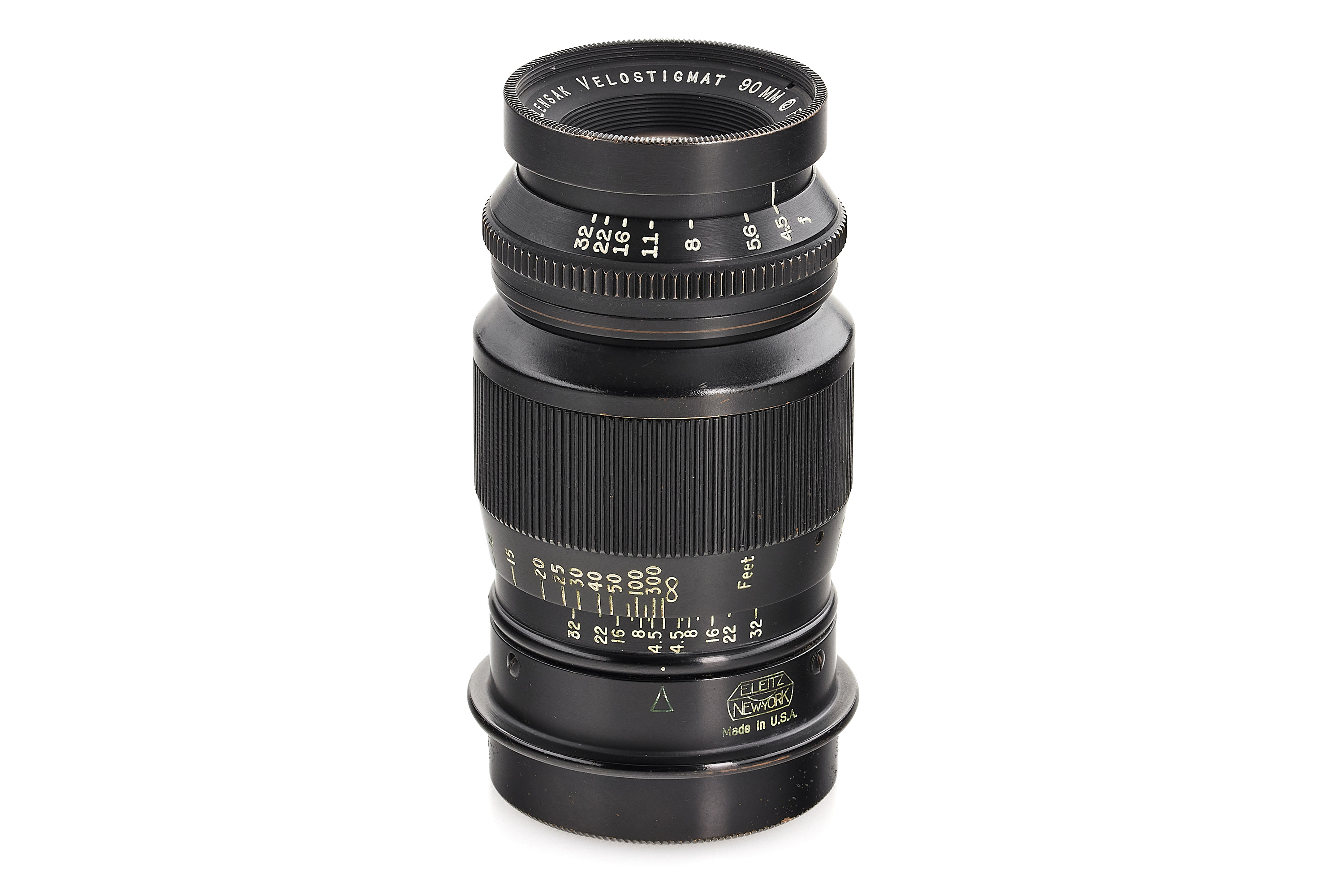 Very rare, virtually unknown all-black version of the Velostigmat 90mm. Engraved with Leitz NY logo, in beautiful condition with very good optics, including both caps and red box.
