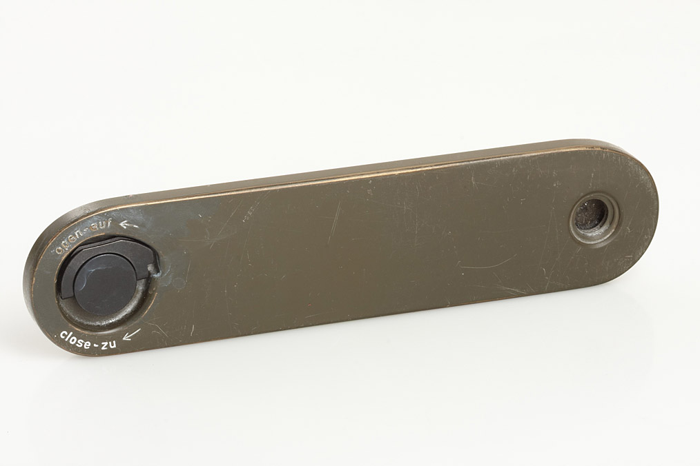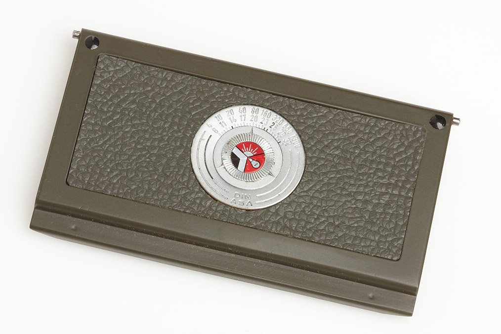 spare parts for olive green German military M cameras: (1) roll of olive green vulcanite, (2) green back door with ASA to 1300 (cond. B/A), (3) olive green base plate for M1, M3 (cond. B-)