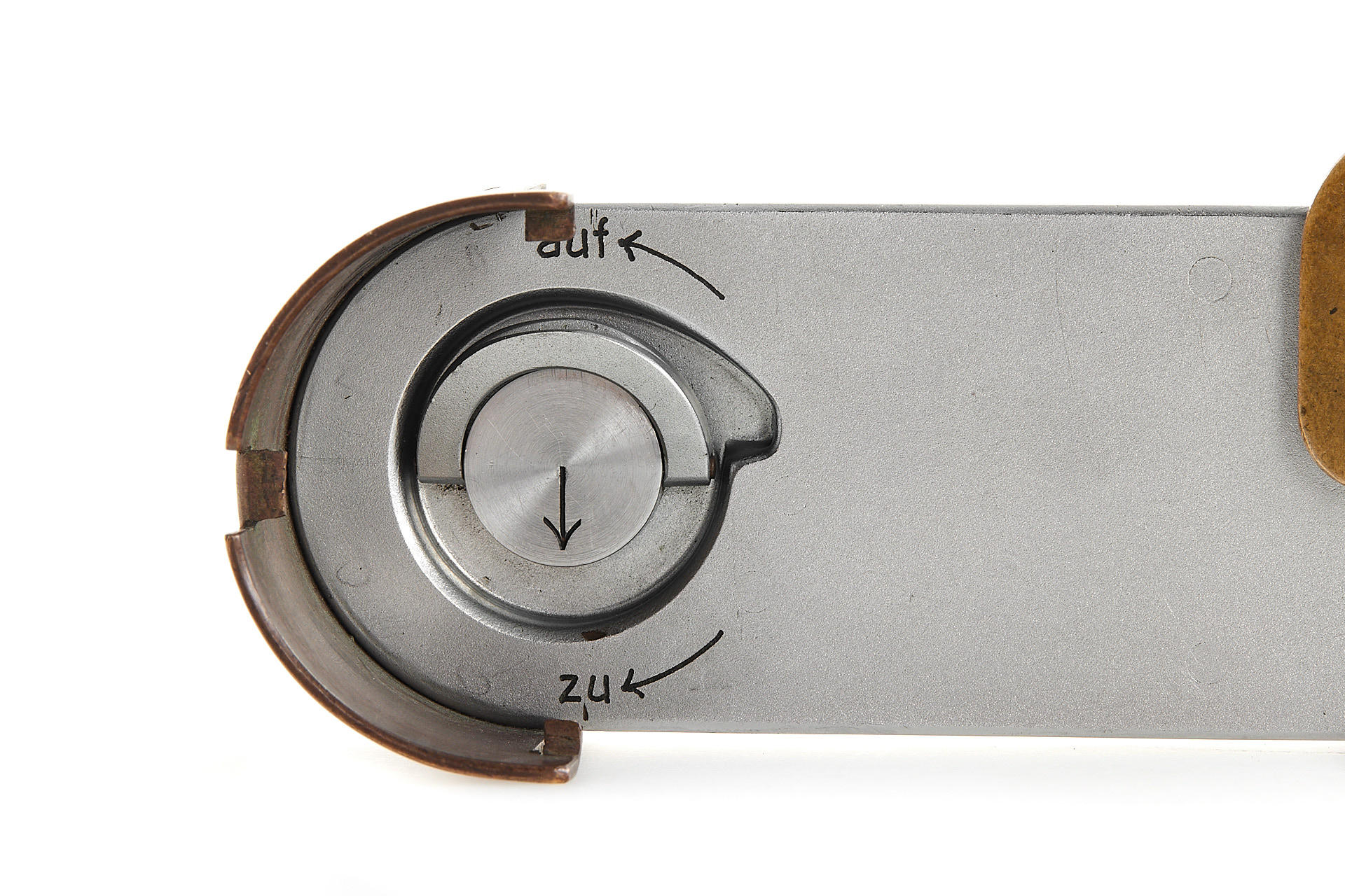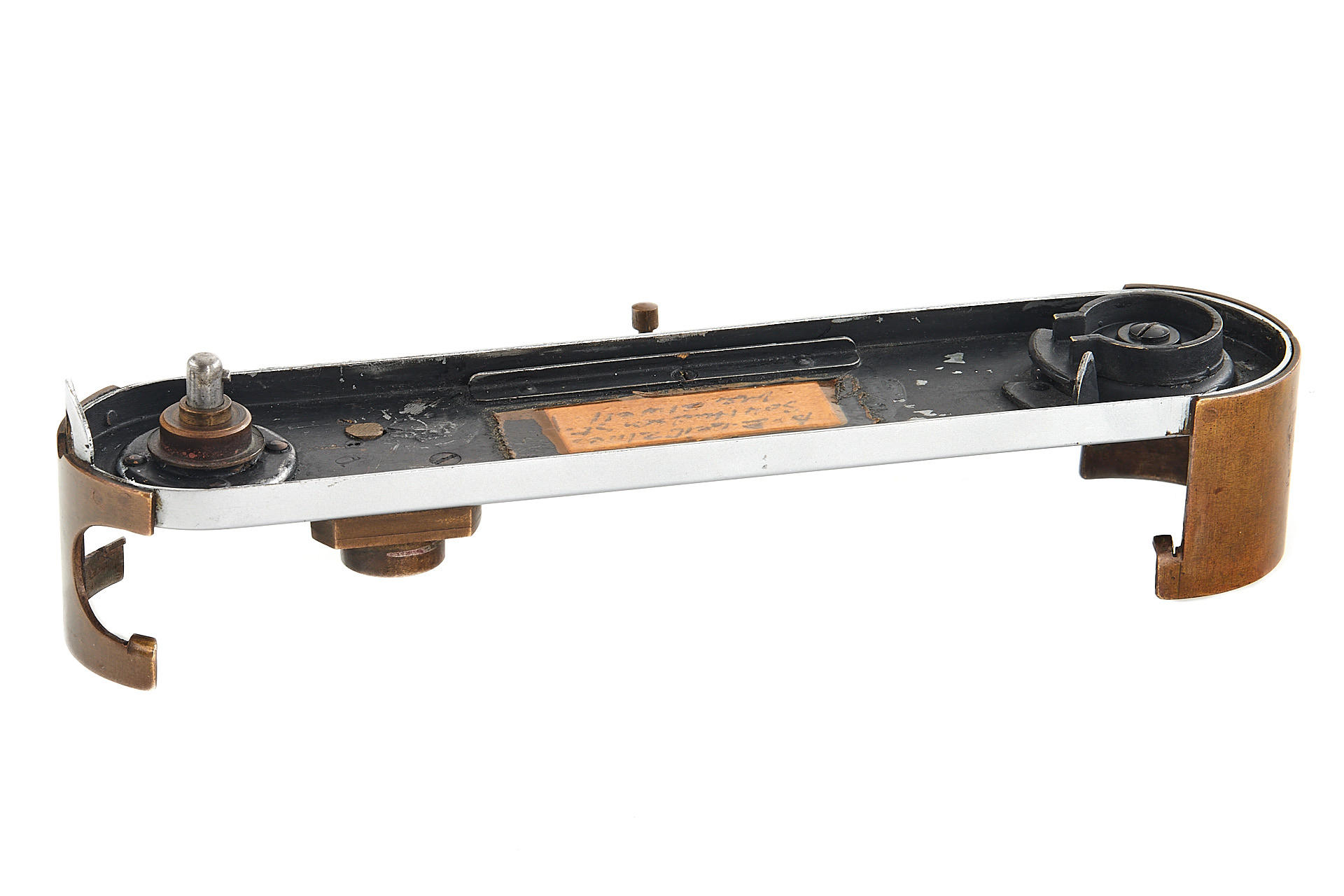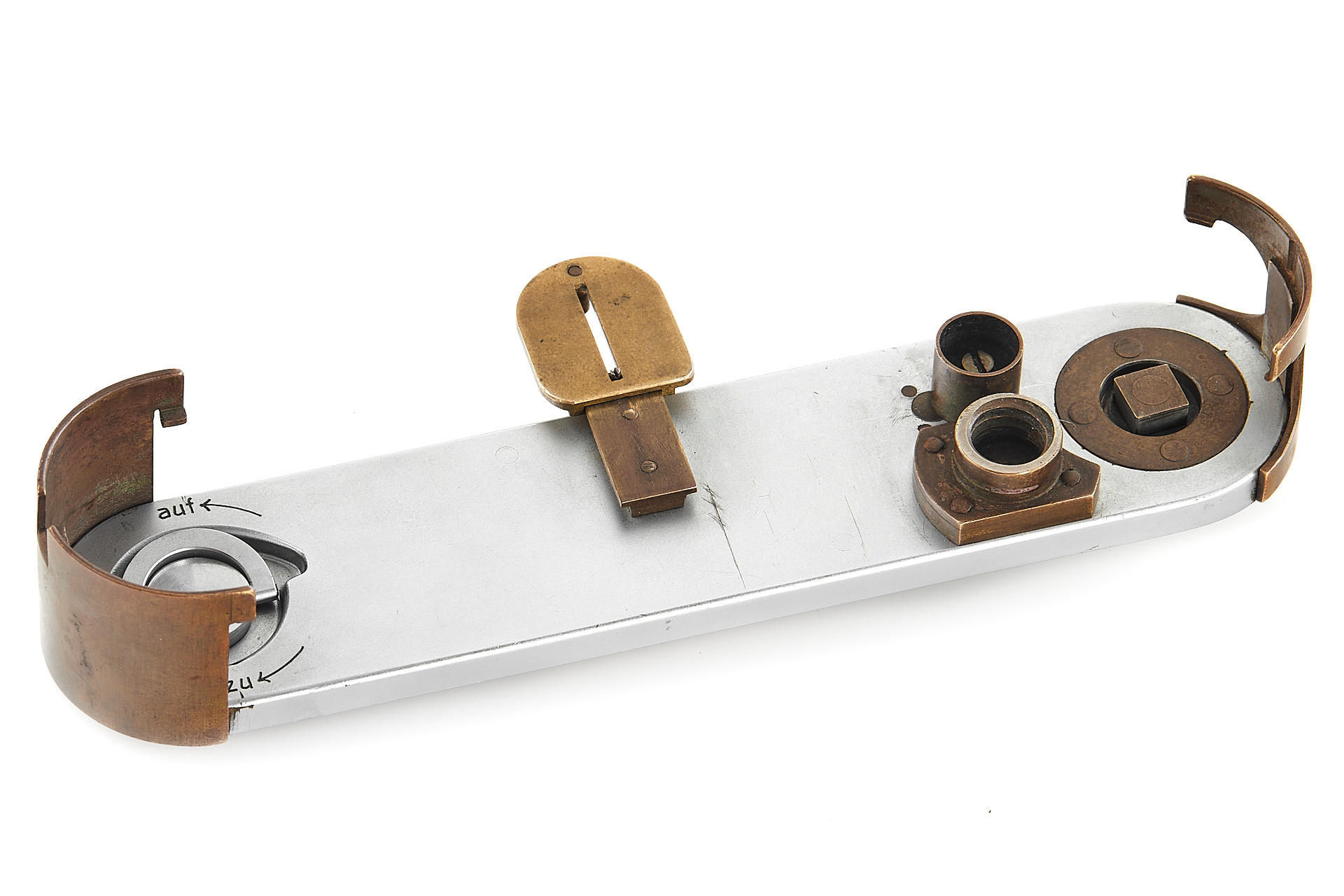 the Leica tandem TOWIN was invented in the 1940s by W. Berssenbrugge - an expert in colour and stereo photography - it was originally made for stereo exposures, in 1949 however Leitz advertised it as a device for simultaneous exposures in b&w and colour. The offered example is an original prototype of this rare accessory, designed to work with Leica IIIc, it is shown in Lager III Accessories on page 348