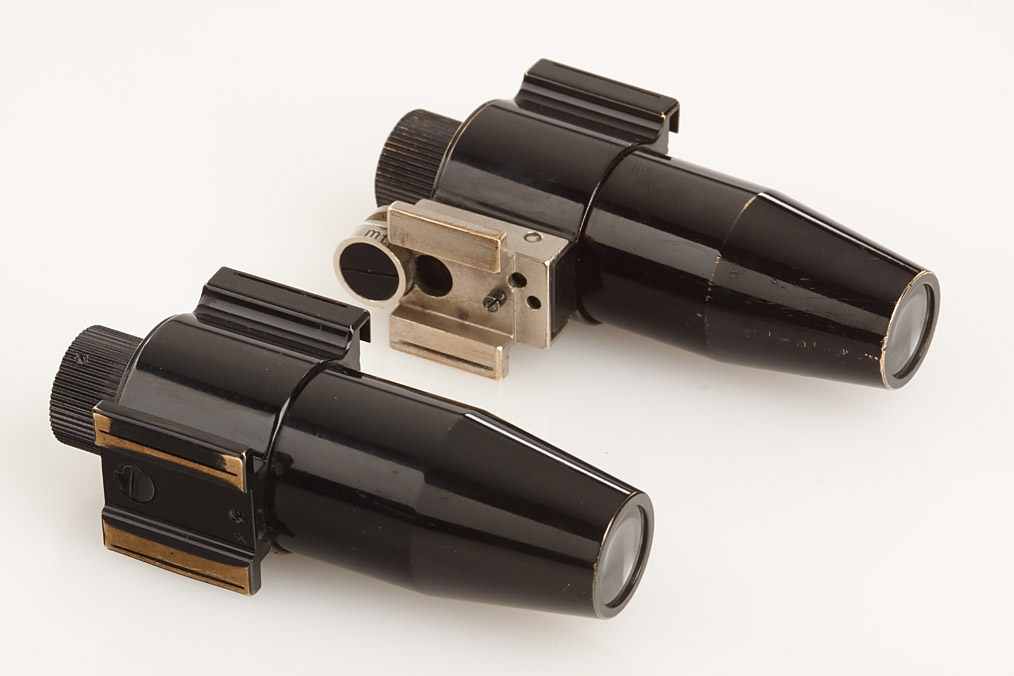 (1) very rare black VISET torpedo finder with parallax correction in near mint condition (3.5, 5, 9 and 13.5cm frames), (2) black VIDEO torpedo finder in near mint condition (3.5, 5, 7.3 and 10.5cm frames) (2)