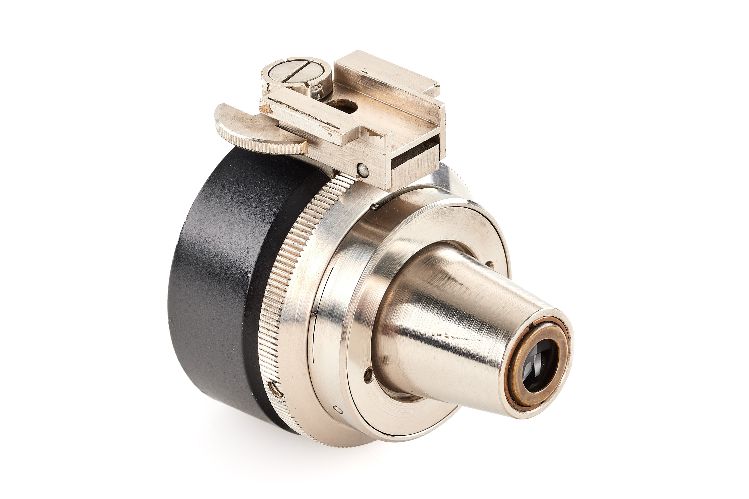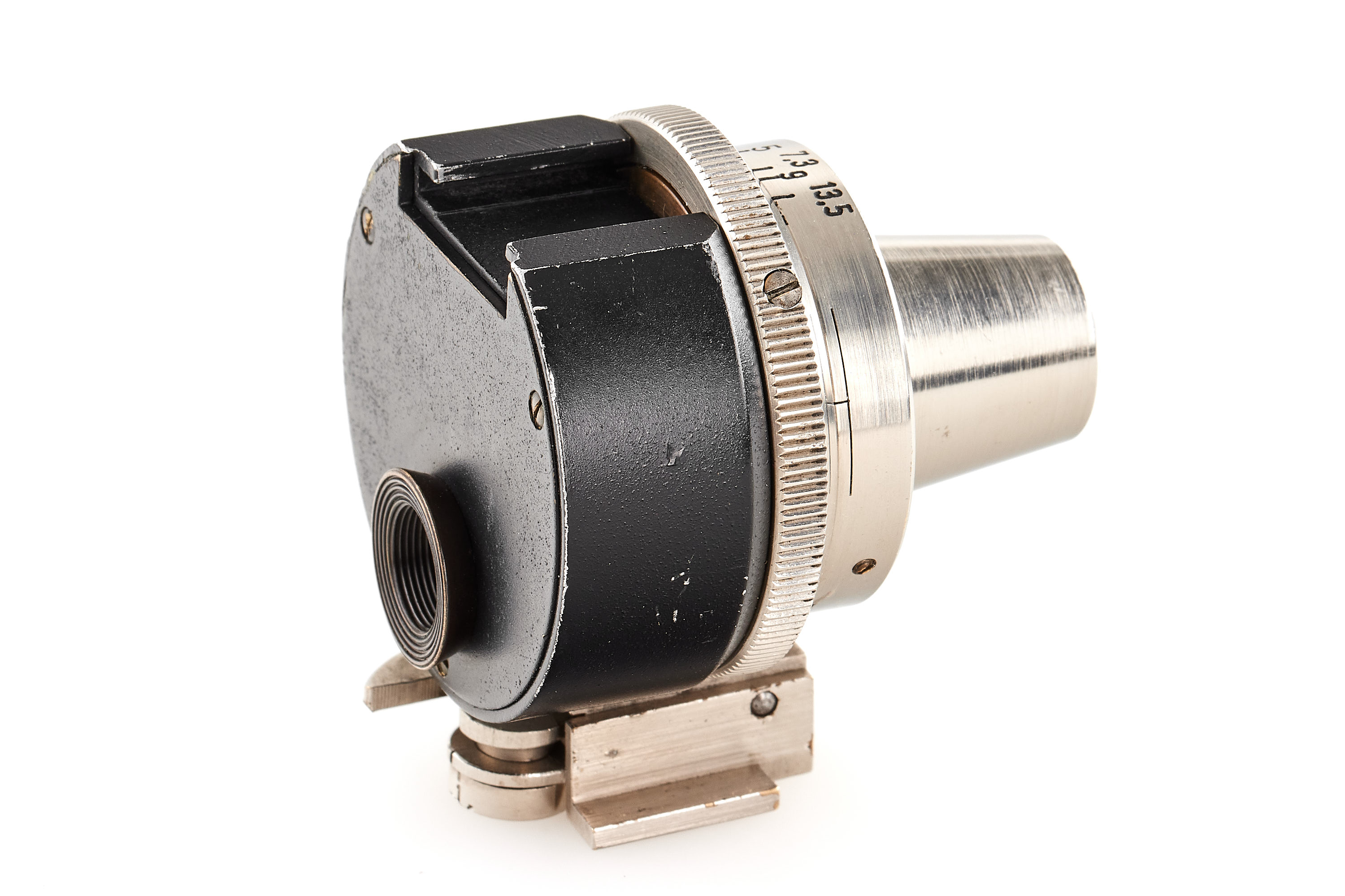 An extremely rare prototype of the VIOOH universal finder, round body without markings, black paint and nickel finish, in very good condition, good view.