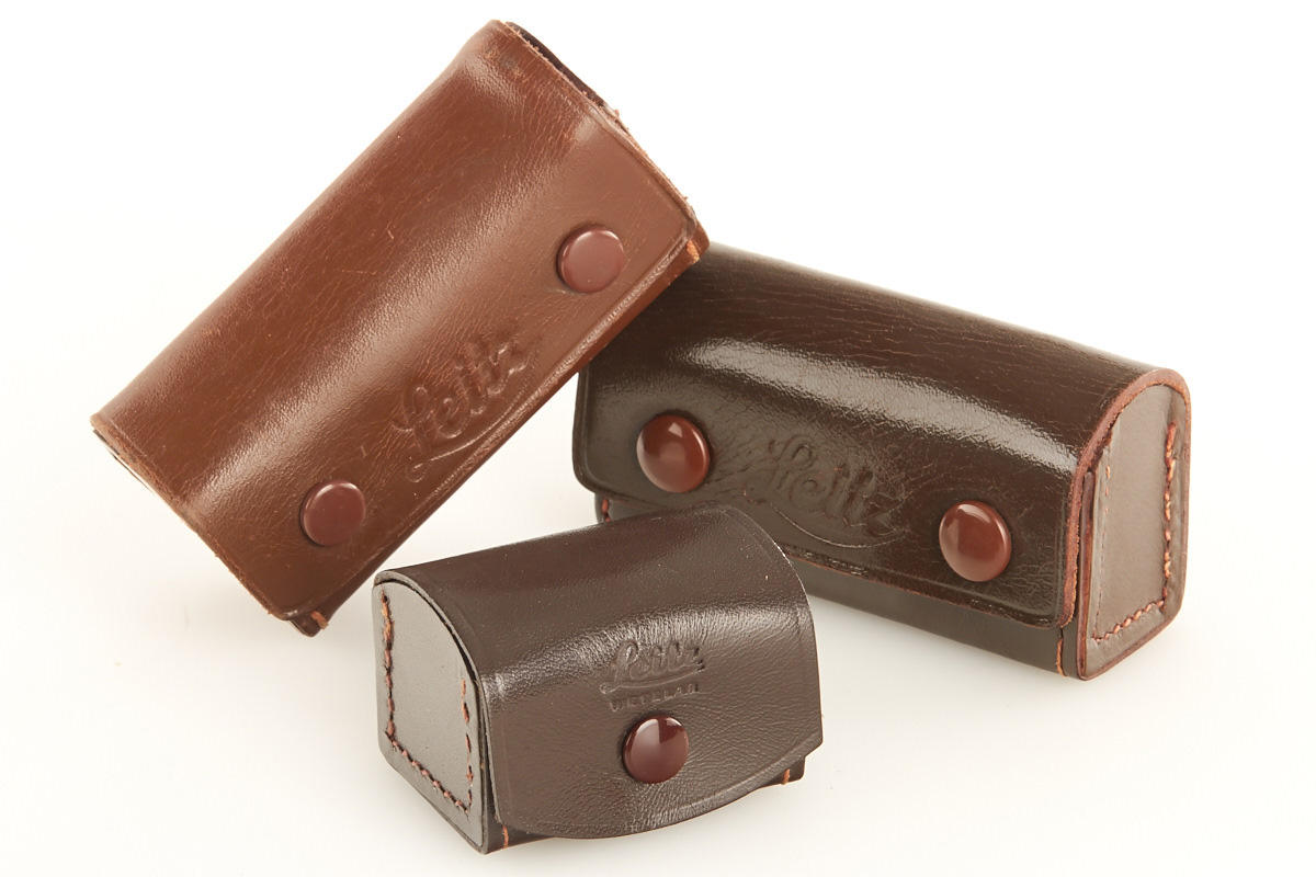(1) chrome 2.8cm SLOOZ BL finder (cond. B+, case), (2) very rare, late type chrome WEISU with clean optics, engraved 'Germany, E.Leitz Wetzlar', red maker's box (cond. A/B), (3) 50mm SBOOI BL finder (cond. B/A), (4) 9cm SOOUT cradle type finder, meter scale (cond. B+), (5) black WINKO right angle finder (cond. B+, case), (6) chrome WINTU right angle finder (cond. B, case) (6)